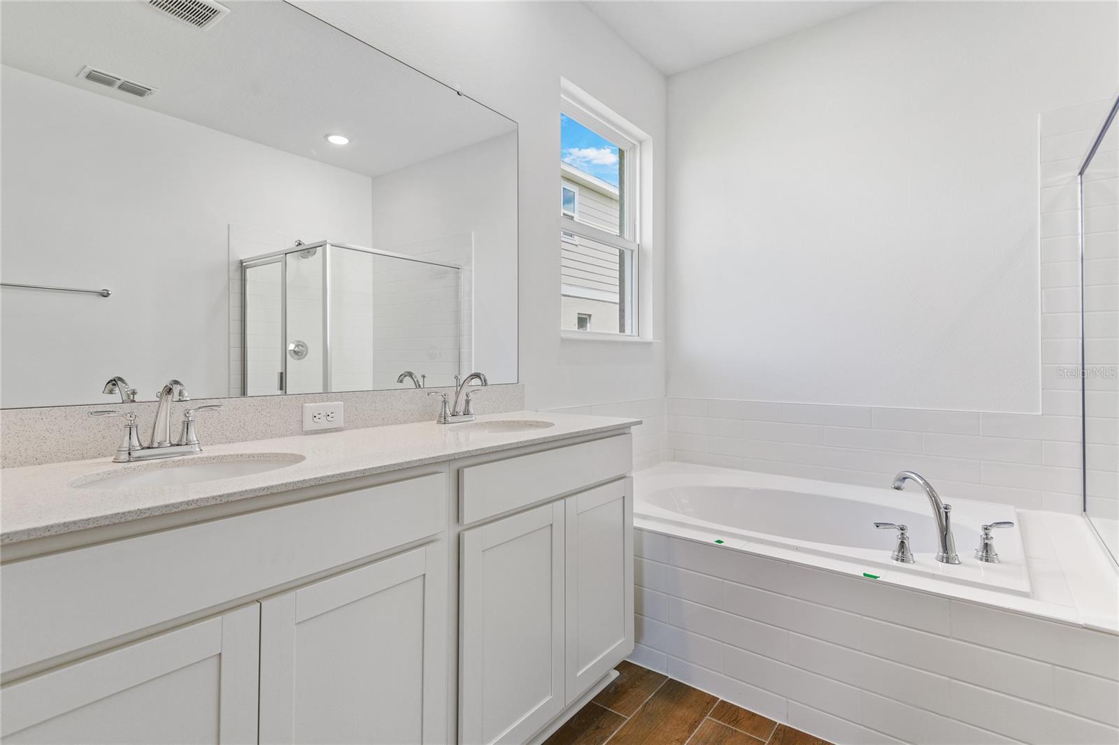 **Take advantage of special financing + Flex Funds on quick move-in homes** This thoughtfully designed Slate floor plan opens with two bedrooms flanking a full hall bath. A laundry room and a fourth bedroom with its own private bath complete the entry of this home.. Beyond the entry, you'll find an open layout with a dining nook, a great room with access to an inviting covered patio, and a kitchen with a quartz center island, walk-in pantry, and abundant 42-inch cabinetry. The primary suite is nearby, offering a generous walk-in closet and a private bath with a shower and a separate soaking tub. You'll love the professionally curated finishes! 1x capital contribution fee of $350. **Options may vary by community, so see your sales associate for details. These offers are available for select homes on a first-come, first-served basis.