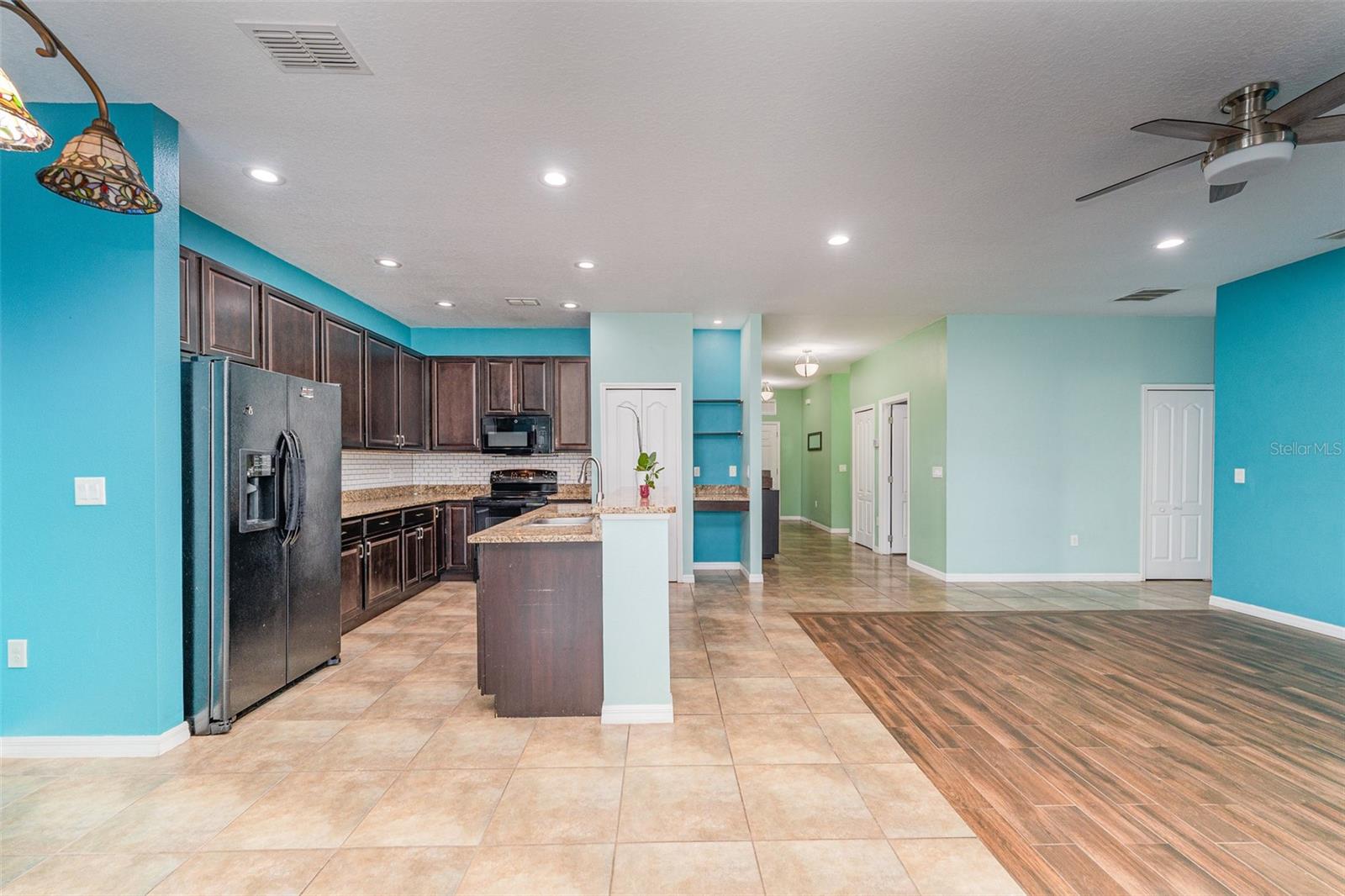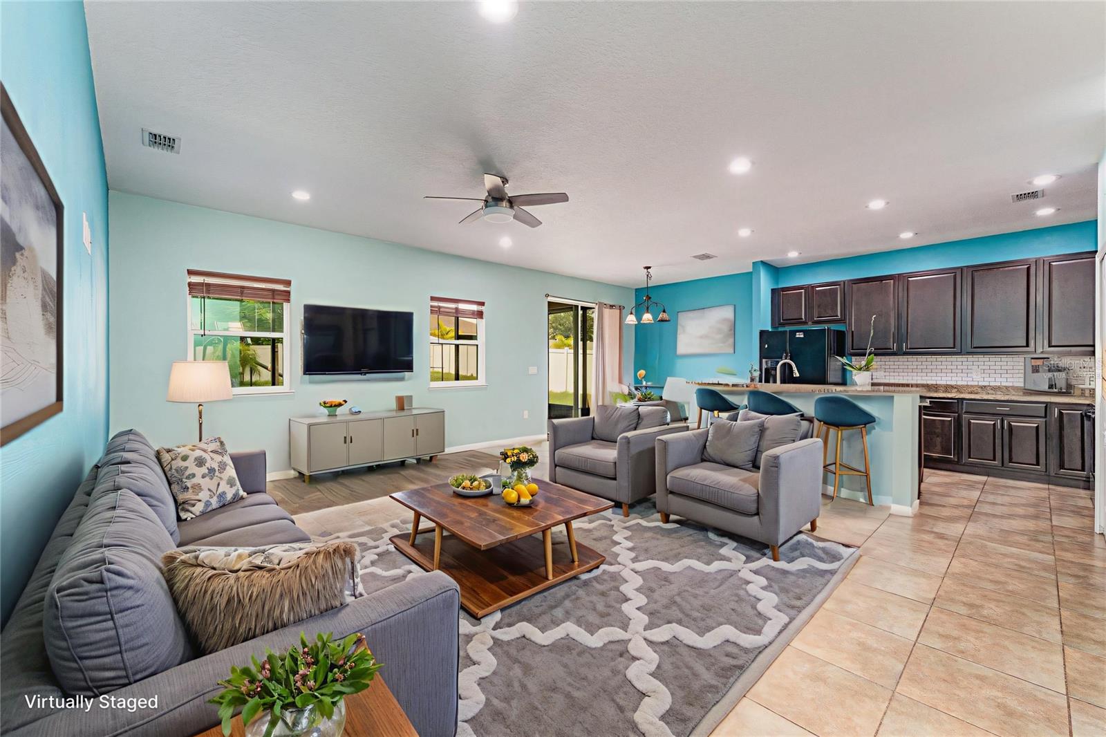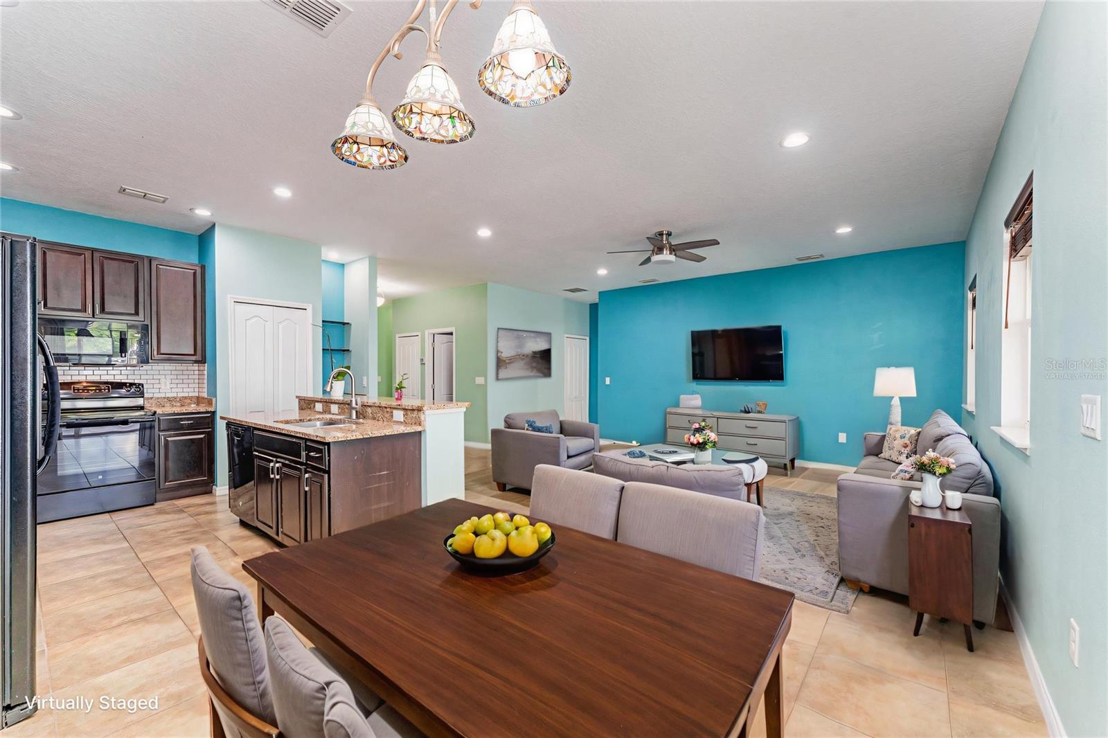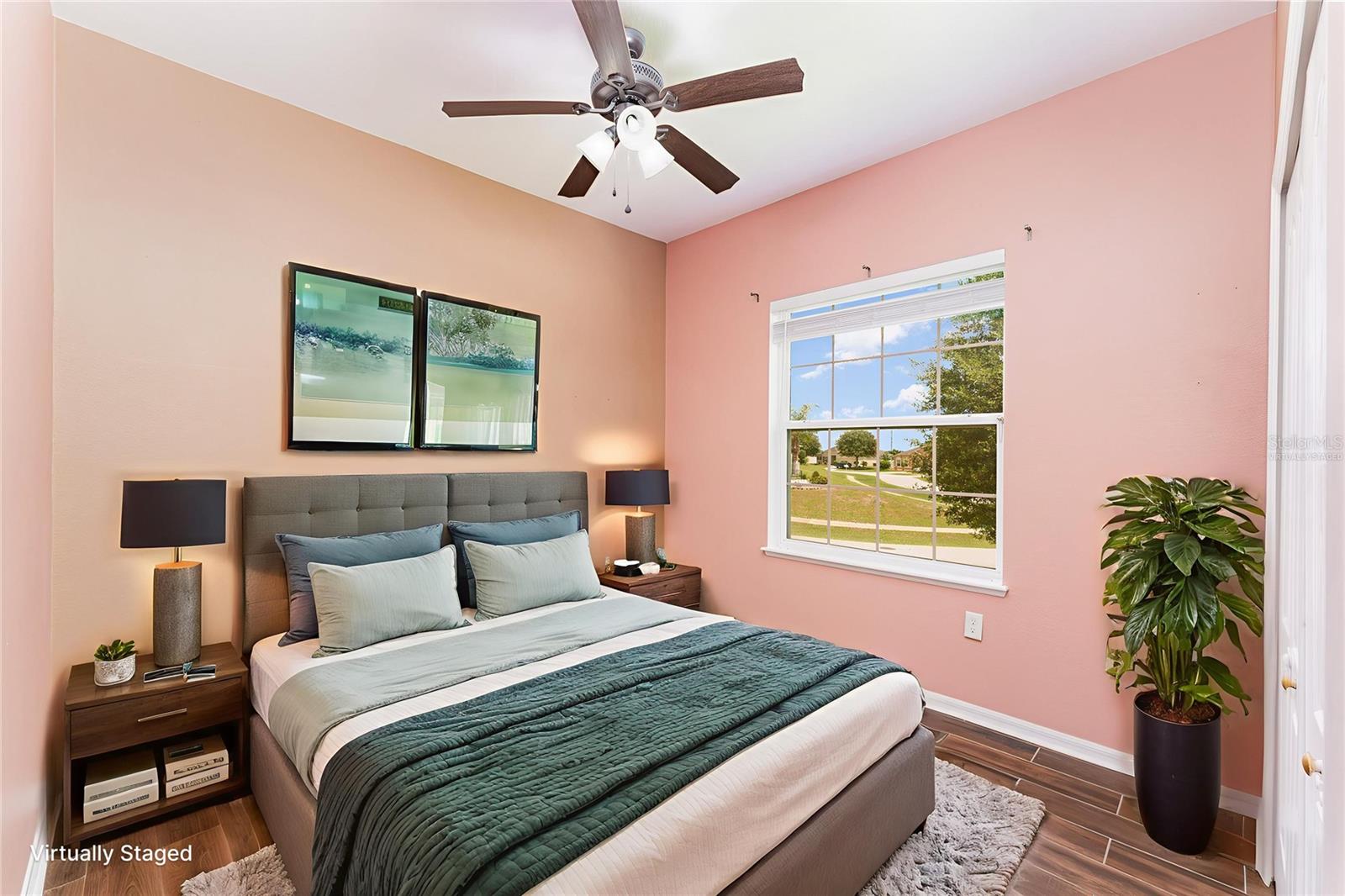 One or more photo(s) has been virtually staged. Welcome to Your Stunning 3-Bedroom, 2-Bathroom Home with a 2-Car Garage on a Spacious Corner Lot! With over 1,750 square feet of heated living space, this home offers an open, flowing floor plan. Step into the expansive living room, seamlessly connected to the dining area and kitchen, perfect for both relaxation and entertainment. The large kitchen features a welcoming breakfast bar. Throughout the common areas, you'll find tastefully updated ceiling fans for a modern touch. The master suite offers a luxurious retreat with its own en-suite bathroom, complete with a separate shower and tub for ultimate relaxation. Bedrooms closets comes with built-ins for organization and ample storage space. From the convenience of your own home, step into your expansive screen-enclosed lanai, perfect for year-round outdoor living and for hosting guests in comfort and style. Situated on a desirable corner lot, this home offers both privacy and convenience. There are solar panels that are currently being leased and transferable which will convey with the property. Has a new AC installed May 2025.