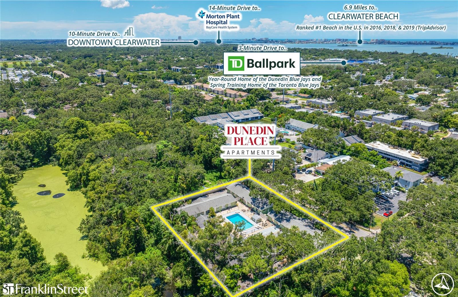 This 10-unit multifamily property is ideally situated just minutes from the heart of Downtown Dunedin, offering an attractive unit mix with spacious one- and two-bedroom layouts averaging 870 square feet. All two-bedroom units feature a versatile den, perfect for a home office or guest space, while every unit is equipped with its own Washer/Dryer and a ONE-CAR GARAGE. The property presents a value-add opportunity with more than $105/unit in monthly rental upside, supported by recent capital improvements including select upgrades to HVAC systems, water heaters, plumbing, and other enhancements. Located in a quiet residential neighborhood just 0.9 miles from Downtown Dunedin’s vibrant shops, restaurants, and waterfront charm, the property also provides convenient access to major employers like BayCare Health System/Mease Dunedin Hospital (0.7 miles) and TD Ballpark, home of the Toronto Blue Jays Spring Training (0.7 miles). Outdoor recreation is close by with the Pinellas Trail just 2.2 miles away, offering 45 miles of paved paths connecting St. Petersburg to Tarpon Springs. Residents also enjoy easy access to world-class beaches, including Clearwater Beach (6.9 miles), Honeymoon Island State Park (7.5 miles), and Caladesi Island via a short ferry ride (8.8 miles).