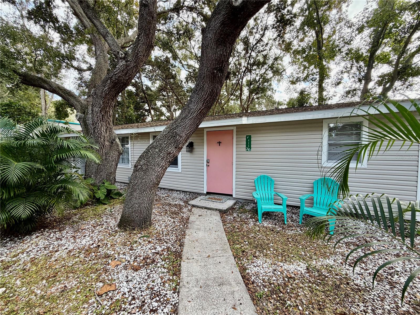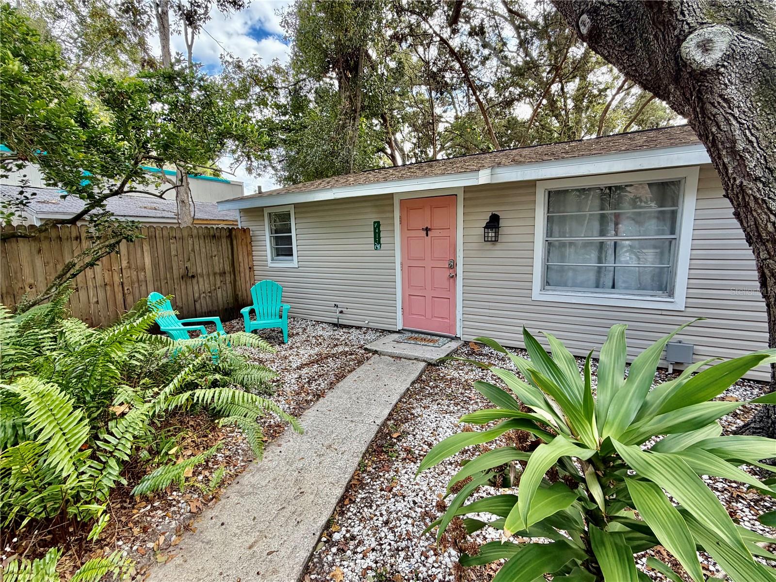 One or more photo(s) has been virtually staged. Great income producing opportunity in the middle of Dunedin. This charming duplex features 2 bedroom units with one bath, the back unit features a glass door leading from the kitchen directly onto a patio in the small fenced-in-yard in the back unit and a patio outside the front unit. A circular driveway is shared by tenants with an assigned spot. Glass double doors lead to one of 2 bedrooms make the space bright and airy. Units are currently vacant but have been rented consistently through November of this year. Live in one unit and rent out the other or rent out both properties. Location is great, with access to local shopping, bowling, restaurants, downtown Dunedin, with its farmer's market on the weekends, the Pinellas Trail and exciting restaurants and breweries make every day delightful. TD Park is just a walk or bike ride away to see the Blue Jays for Spring Training, or to see our Dunedin Blue Jays play a game during the regular season. Dunedin Country Club (recently restored Donald Ross Course), Honeymoon Island and Caledesi are just a few miles away as well. New Roof 2022, new HVAC in 2021 one unit/ other unit 2022. Not many duplexes for sale in Dunedin, come see this while it last!!