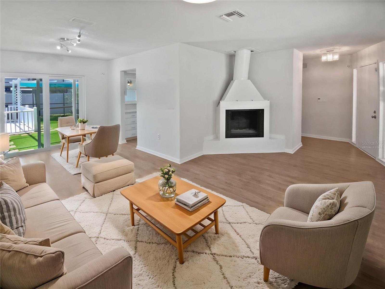 One or more photo(s) has been virtually staged. 100-Day Home Warranty coverage available at closing Fantastic home in sought after location! This home has Fresh Interior Paint, Partial flooring replacement in some areas. A fireplace and a soft neutral color palette create a solid blank canvas for the living area. Step into the kitchen, complete with an eye catching stylish backsplash. Relax in your primary suite with a walk in closet included. The primary bathroom features plenty of under sink storage waiting for your home organization needs. Step outside to the pristinely maintained fenced in backyard with pool, great for entertaining. If the shade is more your style, hang out under the covered sitting area. Don't miss this incredible opportunity.