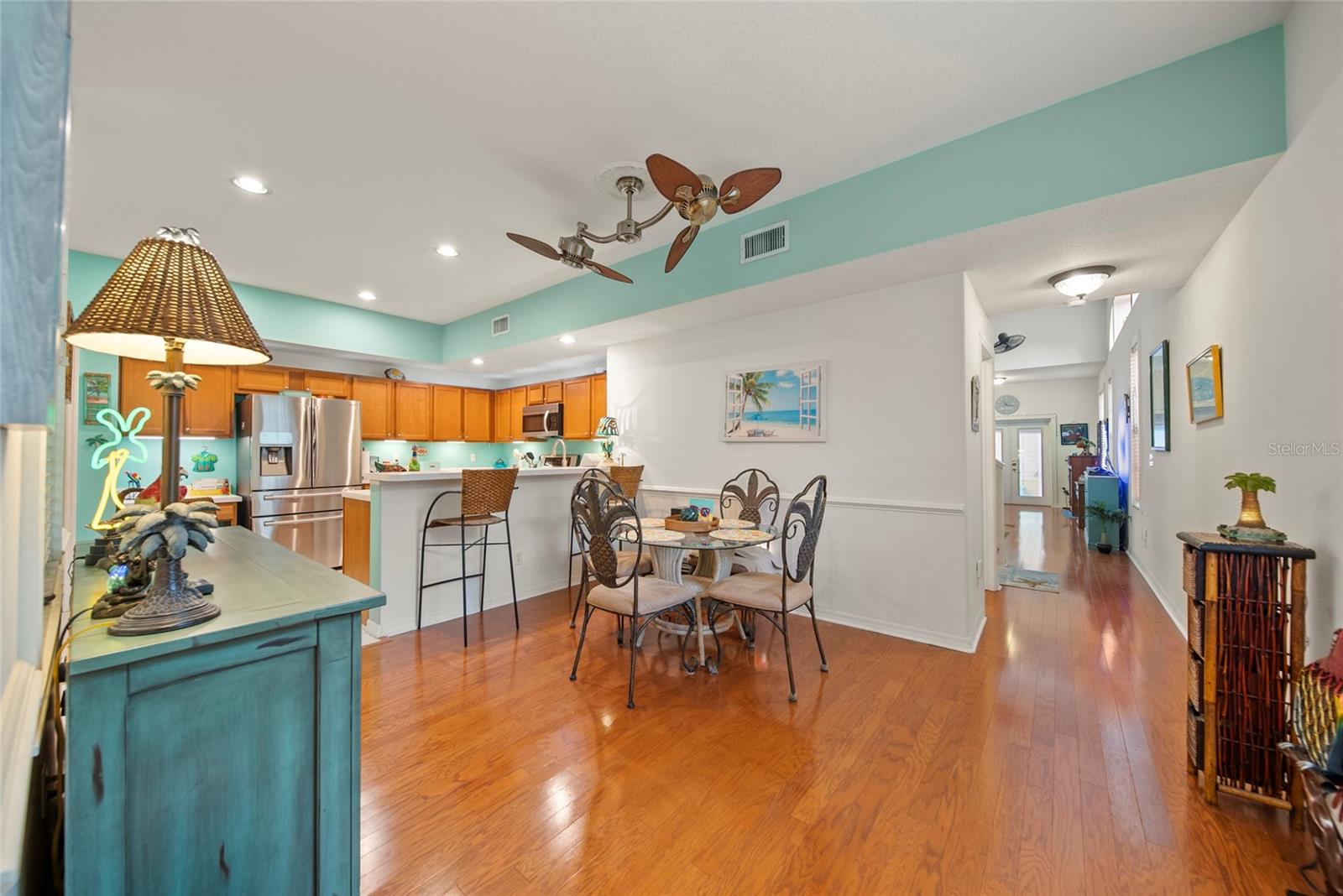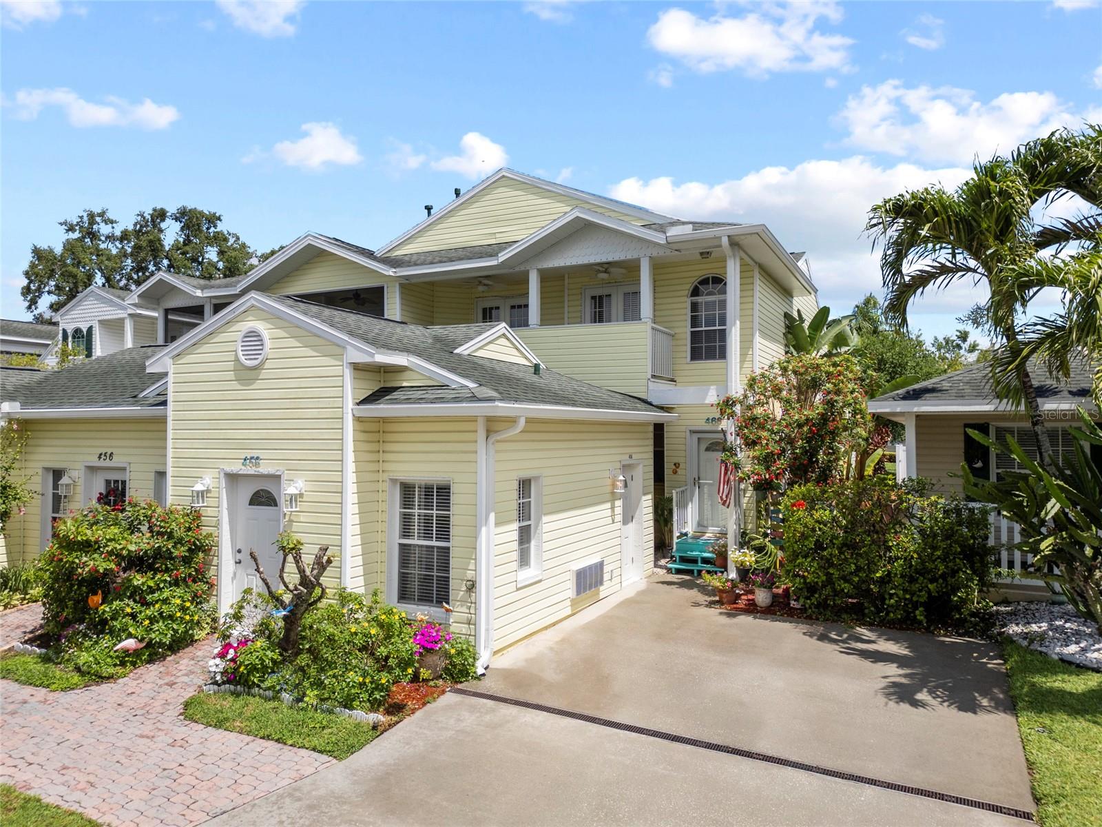 This is your lucky day! Best priced listing in the Downtown Core area! Townhomes in this location RARELY come on the market!!! This is your opportunity to own and live in this spacious, low maintenance townhome in one of Dunedin's finest downtown locations. You can literally fall out of bed and be in the middle of one of the most charming, quaint, walkable coastal town's in the U.S. You are steps from a myriad of a selection of diverse restaurants, art galleries, retail shops, bars and breweries, not to mention the city parks and fun events that Dunedin is famous for. It is also a golf cart friendly town. The Pinellas trail is at your doorstep where you can bike and walk for miles, and you are only a 10 minute drive to Honeymoon Island State Park with its miles of pristine beaches. It truly lives up to it name "Delightful Dunedin". Inside is a spacious, over 2100 sq ft mol townhome that has been faithfully maintained. There is also a 400 sq ft. separate bonus room with private entrances and its own 1/2 bath that lends itself to the possibility of an in-law suite, ideal home based office, a game and/or media room or a studio apartment for extra income$$. It is also zoned downtown core so it lends itself to be used for a small retail of professional business. Where else can you find this? The main residence has gas water heater and dryer, and it also has gas connections for kitchen stove and fireplace. It comes complete with newer appliances, French doors, wood floors, 2024 exterior paint, decorator interior paint, private paver bricked screen patio, custom wood trim around windows, 3 year old A/C unit in bonus room. As an added convenience there is a detached 2 car garage in back and extra parking in front for guests. HOA is $300 monthly and covers Escrow Reserves, Grounds Maintenance, Roof Repair & Replacement, Exterior Painting, Basic Cable & Internet, Exterior Quarterly Pest Spraying, Sentricon Termite System, Liability Insurance for Common Areas & HOA board members. This is a unique property with a location that will provide you with a small town coastal vibe along with access to some of the best beaches and recreational areas. . Don't let this one pass you by!!!