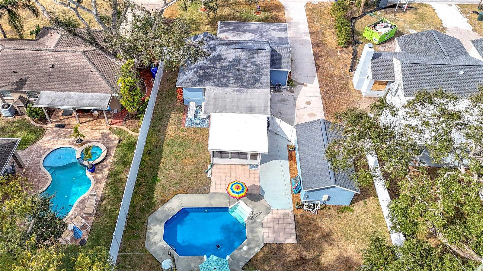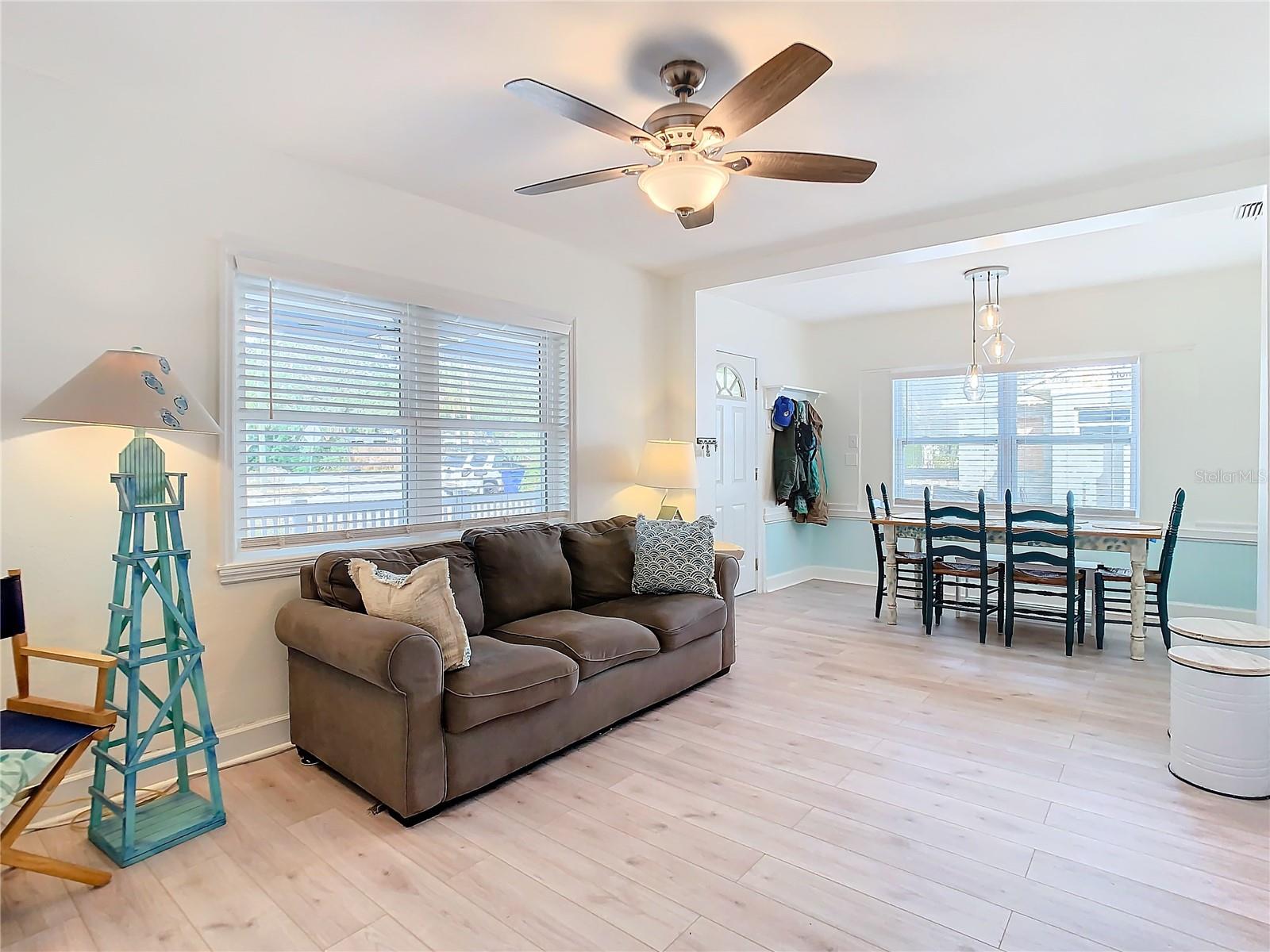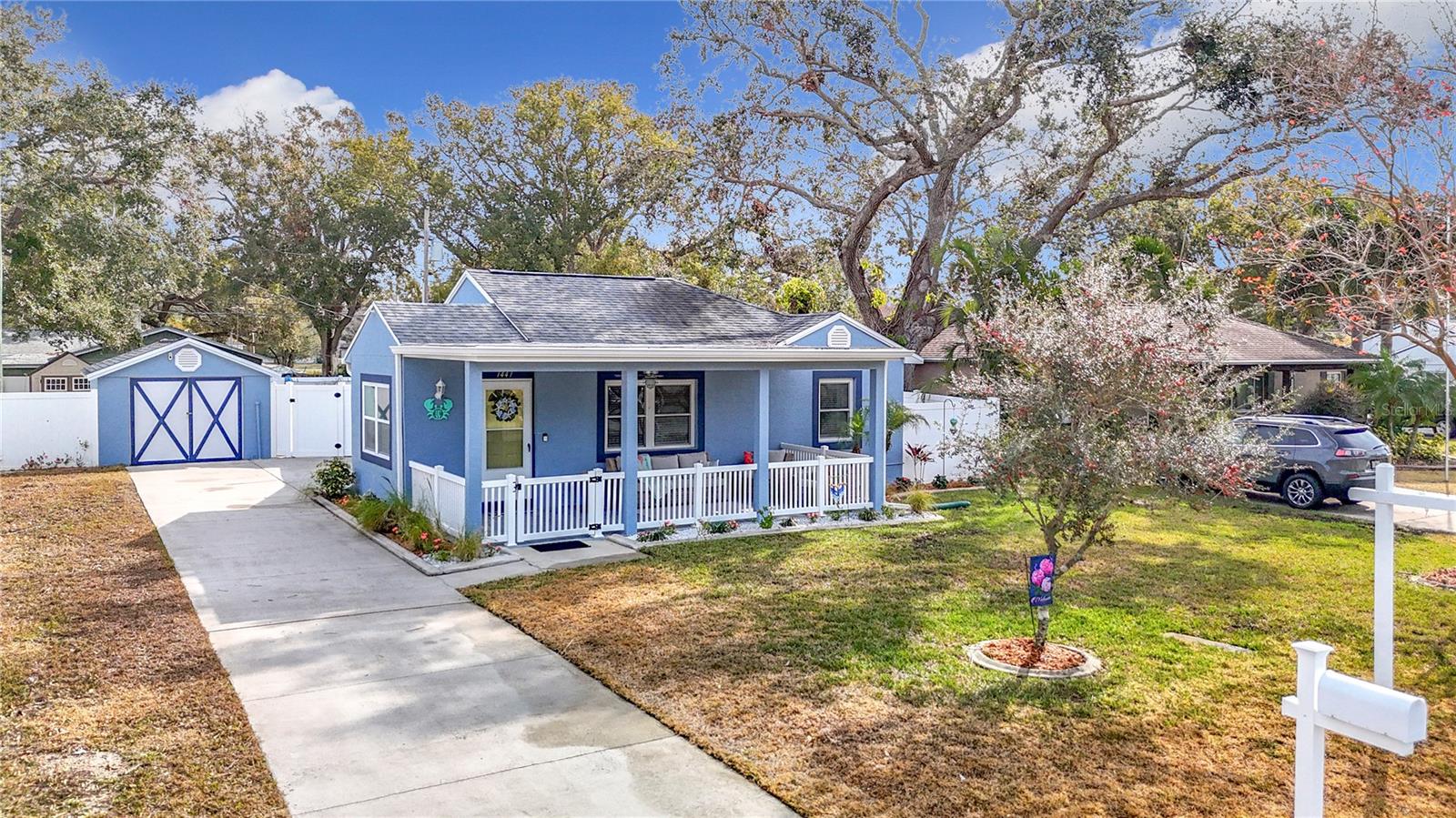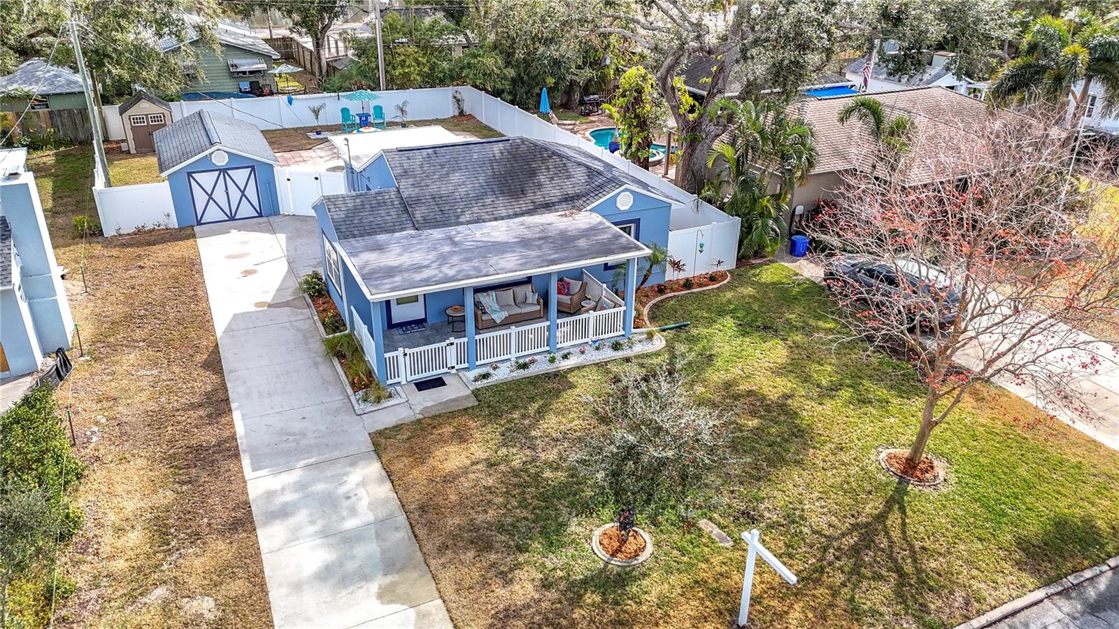 SELLER SAYS SELL! Presenting ALL offers! Charming Block Home with Pool – Prime Dunedin Location! High and Dry! Did not flood and in flood zone X. This meticulously maintained, move-in-ready 1948 home is a rare find! Lovingly maintained with the blend of stylish upgrades and historic charm. Luxury Vinyl Plank Floors throughout in 2024. Featuring a beautifully updated kitchen with granite countertops, wood cabinets, and recessed lighting, this 2-bedroom (plus convertible family room) home blends vintage charm with modern upgrades. The large front porch welcomes you, while a weatherized screened-in patio leads to a spacious backyard with a pool and jacuzzi seat (added in 2009, new liner in 2021 with a 20-year warranty). Washer and dryer, all mounted TV's, as well as front porch furniture included! Key Updates: Roof (2012), HVAC (2019) with a maintenance warranty through July 2025, Electrical (2009), Plumbing (2019), Insulation (2020), Windows (2010), Kitchen (2013), Bathroom (2024), Tile Flooring (2013/2014), Vinyl Privacy Fence (2018), Freshly painted interior (2024), Levolor Blinds throughout (2024), Pest Control warranty through 2026, plus more! Detached garage with electric, water, and sewer offers easy conversion to a separate living space. Located just minutes from Downtown Dunedin, the Pinellas Trail, VFW Post #275, Honeymoon Island, and within the golf cart district. Easy access to the Jolley Trolley for a fun, convenient ride to local attractions. This is a must-see home—don’t miss out!