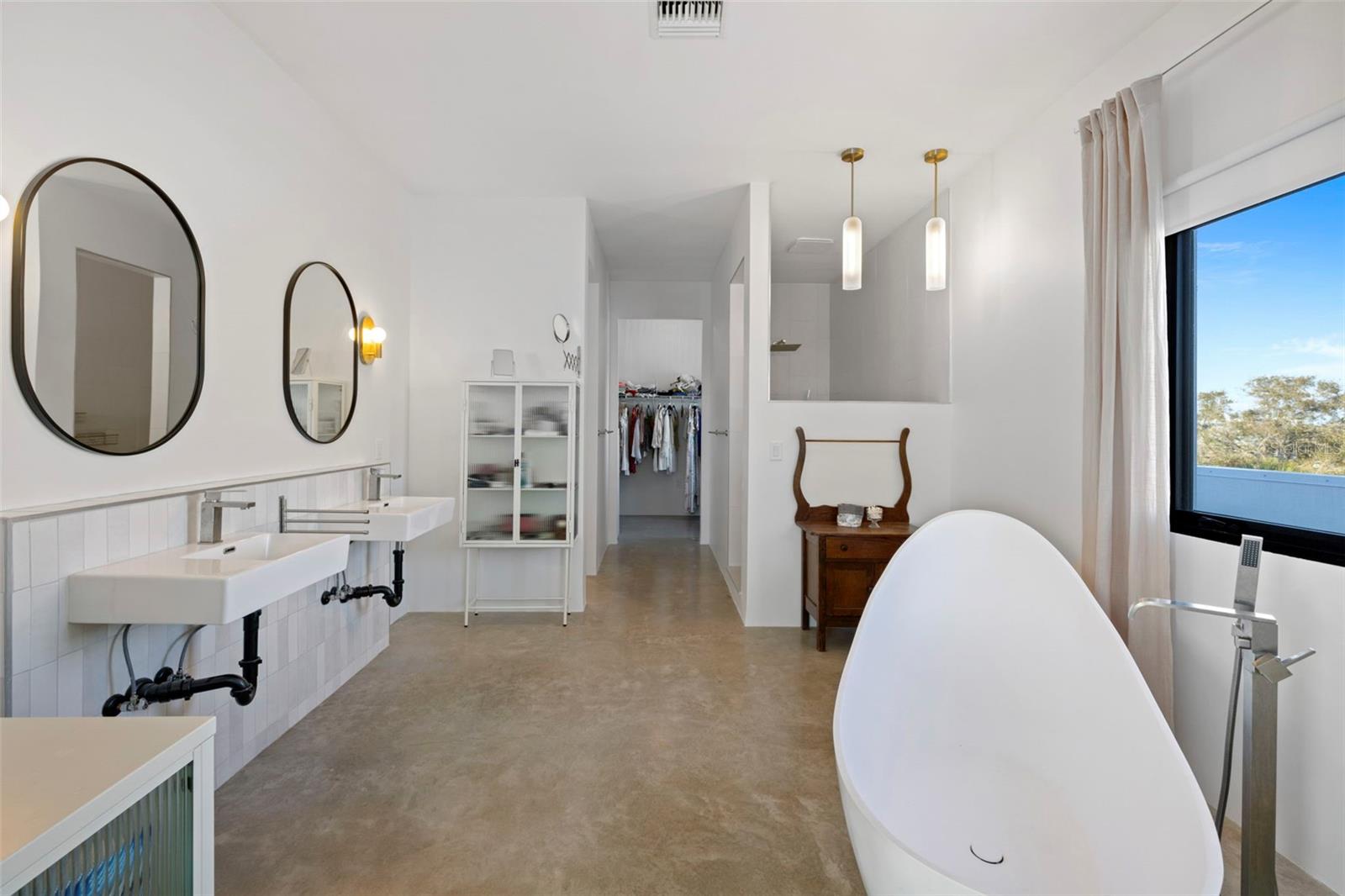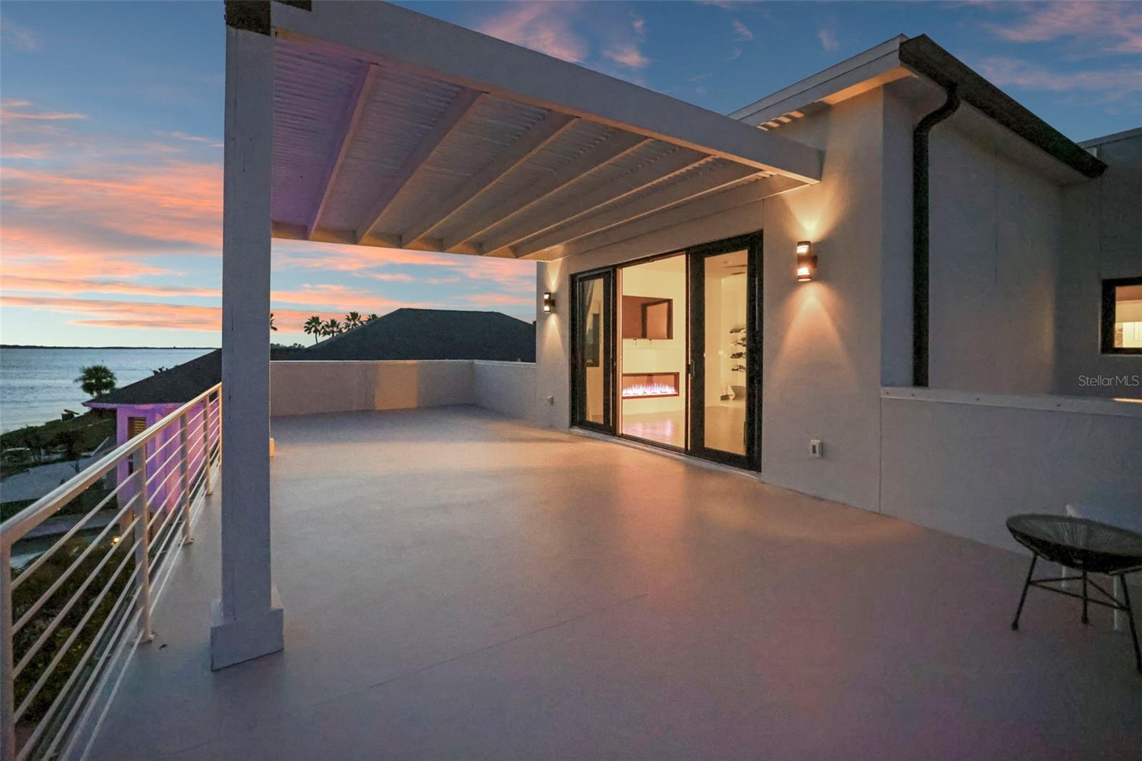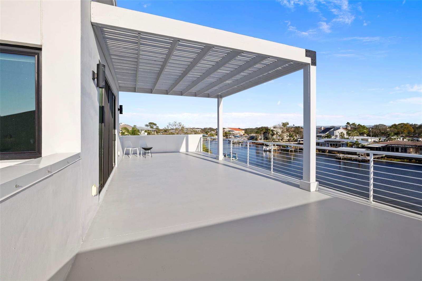 Step into a world where architectural brilliance meets coastal resilience. This 2022 Art Deco-inspired waterfront estate is a masterpiece of modern design, blending luxury, innovation, and durability against the backdrop of Florida’s Gulf. Designed for grandeur and resilience in mind, this three-story home features five bedrooms and five bathrooms, each maximizing breathtaking water views. Built to withstand Category 5 hurricane winds, it boasts reinforced concrete floors, hurricane-rated PGT black vinyl windows and doors, superior flood protection, a commercial-grade TPO roof, two Trane A/C units, and spray foam insulation for energy efficiency. Inside, the sophisticated modern aesthetic includes flawless level 5 wall finishes, sealed concrete floors that are hypoallergenic and low-maintenance, and sleek European-style toilets with hidden tanks. A private elevator connects all three floors for seamless convenience. Three of the five bedrooms have ensuite bathrooms, ensuring ultimate privacy and comfort. Expansive second- and third-floor balconies provide stunning Gulf views, while 1,300+ sq. ft. of elevated outdoor deck space allows for entertaining or relaxation. The resort-style saltwater pool, framed by imported shell stone pavers that stay cool underfoot, offers Bluetooth-controlled LED lighting for customizable ambiance. Impact glass rear vertical doors on the lower level frame picturesque waterfront views, seamlessly merging indoor and outdoor living. Thoughtfully placed dusk-to-dawn exterior lighting enhances architectural features, and an oversized spiral staircase connects the pool deck to the main outdoor space. An automotive enthusiast’s dream, the oversized garage accommodates up to nine vehicles and can be transformed into a gym, entertainment lounge, or workshop. Hurricane-impact glass garage doors open to the pool area for an unmatched indoor-outdoor experience. The state-of-the-art kitchen features Bosch stainless appliances, a KitchenAid convection oven, sleek cabinetry, and high-end finishes. Modern technology enhances the home with two Smart LED WiFi fireplaces, a 400-amp electrical system prepped for a boat lift, a 220V electric car charging station, and pre-wired outlets for additional ceiling fans, recessed lighting, or even a custom-installed disco ball. An extra-large capacity tankless water heater and gas service provide energy-efficient solutions, while xeriscape landscaping ensures effortless, low-maintenance beauty. Located in one of Dunedin’s most coveted waterfront neighborhoods, this home offers easy access to the Pinellas Trail and Dunedin Causeway for kayaking, paddle boarding, and scenic bike rides. Downtown Dunedin, just 15 minutes away by bike, boasts boutique shops, gourmet dining, craft breweries, and a vibrant arts scene. For added privacy, the empty lot to the east belongs to the neighboring property, ensuring unobstructed views. With unparalleled Gulf views, world-class design, and hurricane-proof engineering, this exceptional home is a rare find in Dunedin’s luxury market—Perfect for those seeking a private retreat, an entertainer’s dream, a haven for car collectors, or a boater’s paradise. Experience unparalleled waterfront luxury—schedule your private tour today!