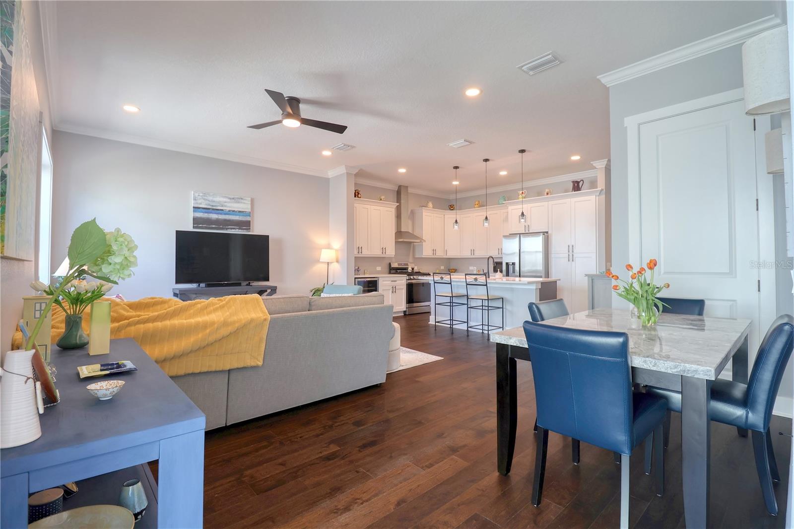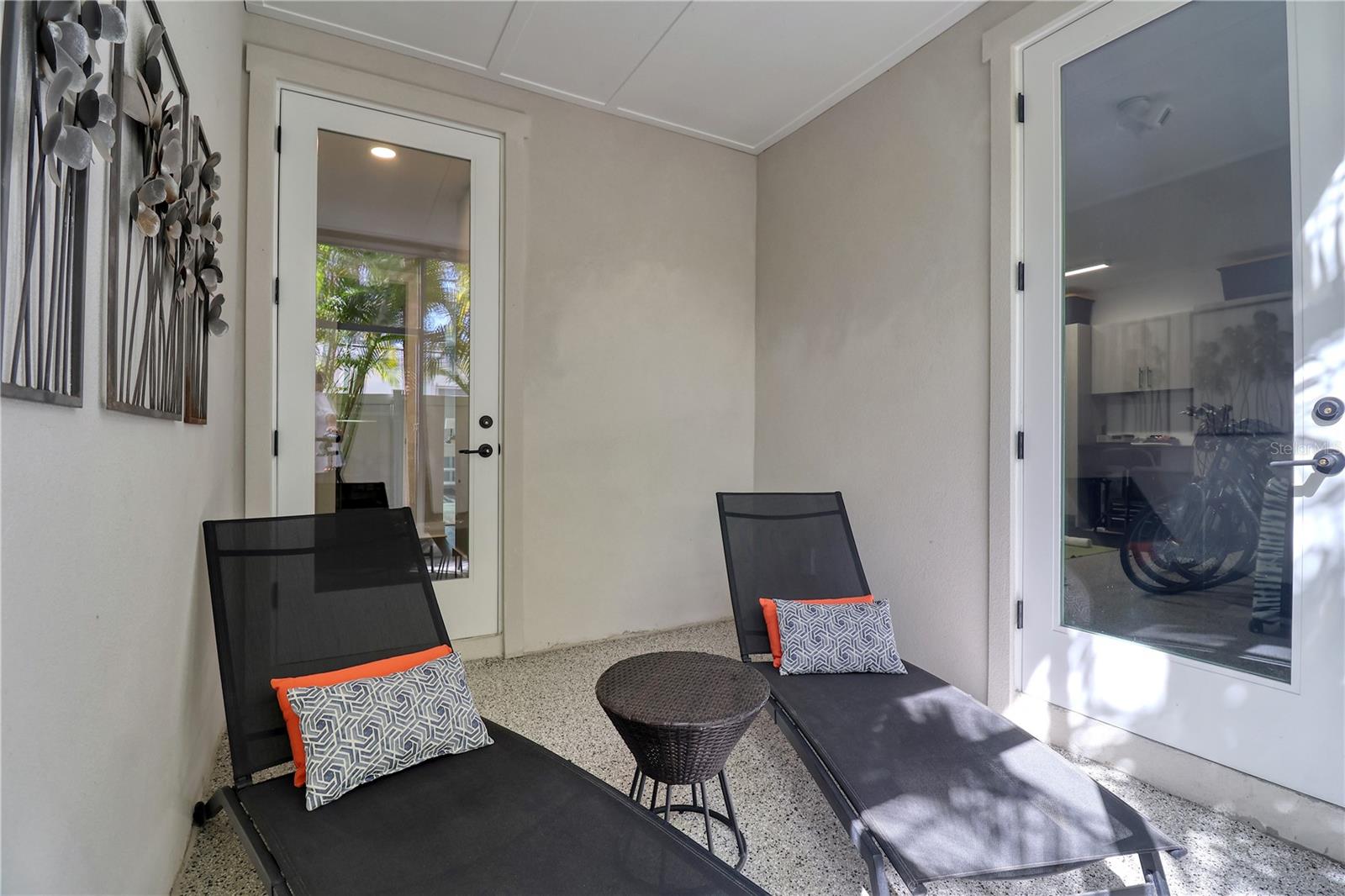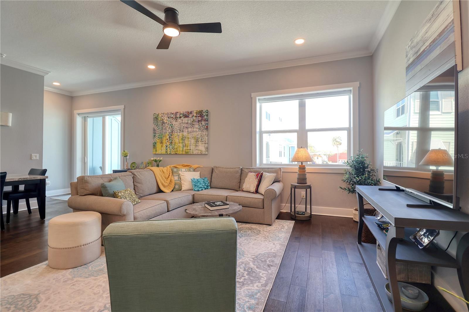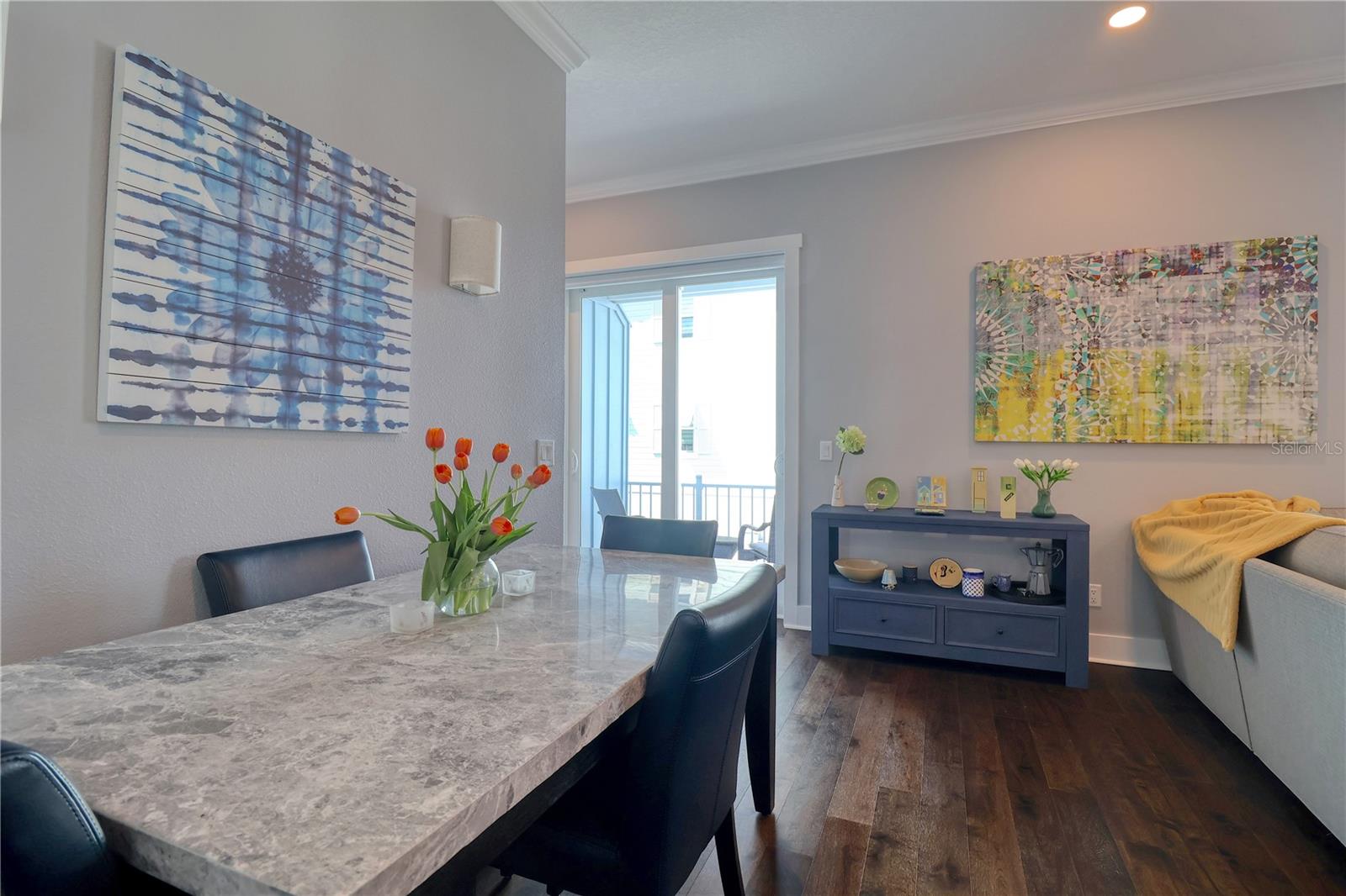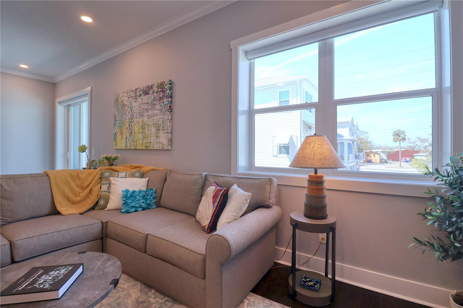 Welcome to the best of Downtown Dunedin living in this stunning 2319 sq ft townhome with superior ICF (Insulated Concrete Forms) construction, cement siding and a metal roof built in 2023. This intimate complex of townhomes, will be the only newer construction Downtown neighborhood with a SWIMMING POOL and bath house!!! Bright and beautifully chic aptly describes this pristine 3 bedroom, 3 bath townhome in the highly sought after vibrant Downtown Dunedin golf cart area, tucked deep into the neighborhood for peace and quiet and privacy. This elegant home features plenty of natural light and room to grow in this well laid out floorplan with an ELEVATOR seamlessly connecting the 3 levels. This delightful home features 3 generous bedrooms, a dining area, a spacious living room, and a culinary enthusiast's dream kitchen. The kitchen showcases pristine white quartz countertops complemented by a spacious island, sleek white 42" cabinetry, and high-end stainless steel appliances including a gas range and a wine fridge. The tranquil primary suite is located at the rear of the home for privacy; with its airy dimensions and a sumptuous ensuite bath that boasts dual vanities set in quartz, alongside a frameless glass shower. The home's second bathroom mirrors this modern aesthetic with its streamlined fixtures and quartz surfaces. Privacy and entertainment seamlessly merge in the home's outdoor living spaces, featuring a screened private patio, and 2 balconies, including a private balcony off the 2nd floor bedroom. This home boasts superior architectural touches such as; luxury laminate flooring, 6-inch baseboards, towering 10-foot ceilings, LED lighting, modern light fixtures, open floor plan, neutral color tones, remote control blinds, crown molding, 8" trimmed windows casings, solid core 8 ft interior doors, tankless gas hot water heater, a water softener system and CA Closets. The 4 car garage is an exceptional space that can house, your golf cart, kayaks, jet skis, workshop or a fun "Man Cave" with access to the screened back patio. This home does not compromise on comfort or elegance. This delightful home also has energy-efficient hurricane impact windows and offers ample storage solutions. This chic home's location is unparalleled—a leisurely walk or easy golf cart ride to downtown dining, Pinellas Trail, parks, shopping and festivities. This home's low maintenance "lock and leave" ability makes it the perfect home for buyers who like to travel or just want worry free living and more time to spend at the beach or downtown. This home is the quintessential Florida lifestyle home: offering highly rated schools, pristine beaches, and everything delightful Dunedin has to offer. To better feel the flow of the stunning townhome; watch the video:https://capture-images.aryeo.com/listings/01956370-02c0-7094-9717-787e193e0545/download-center#videos