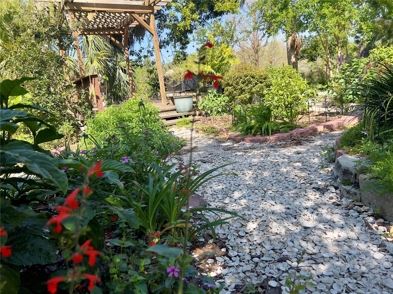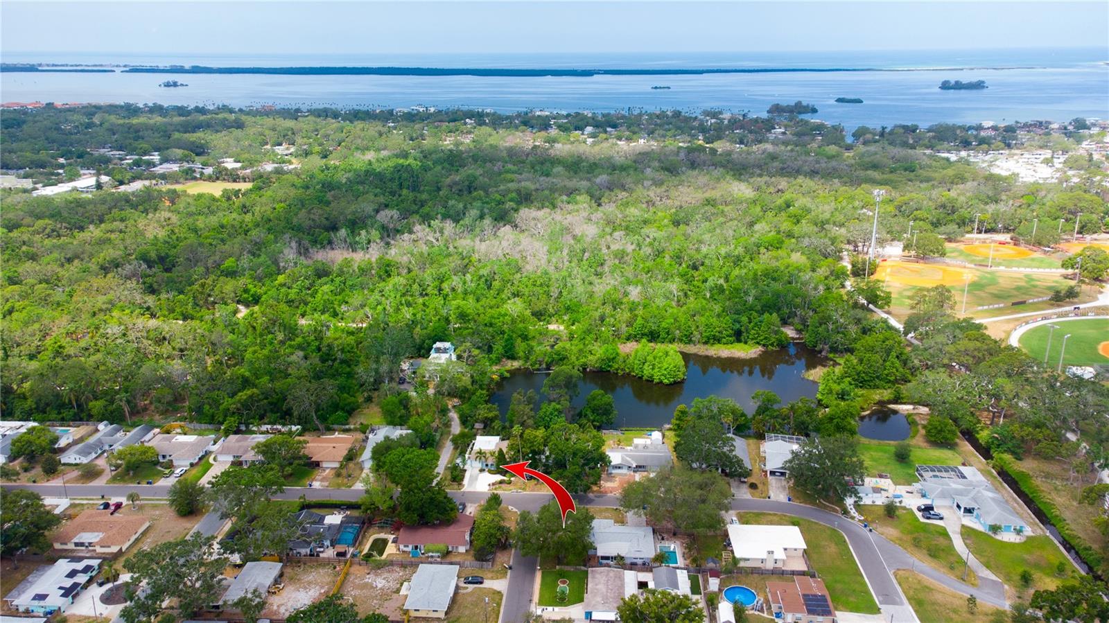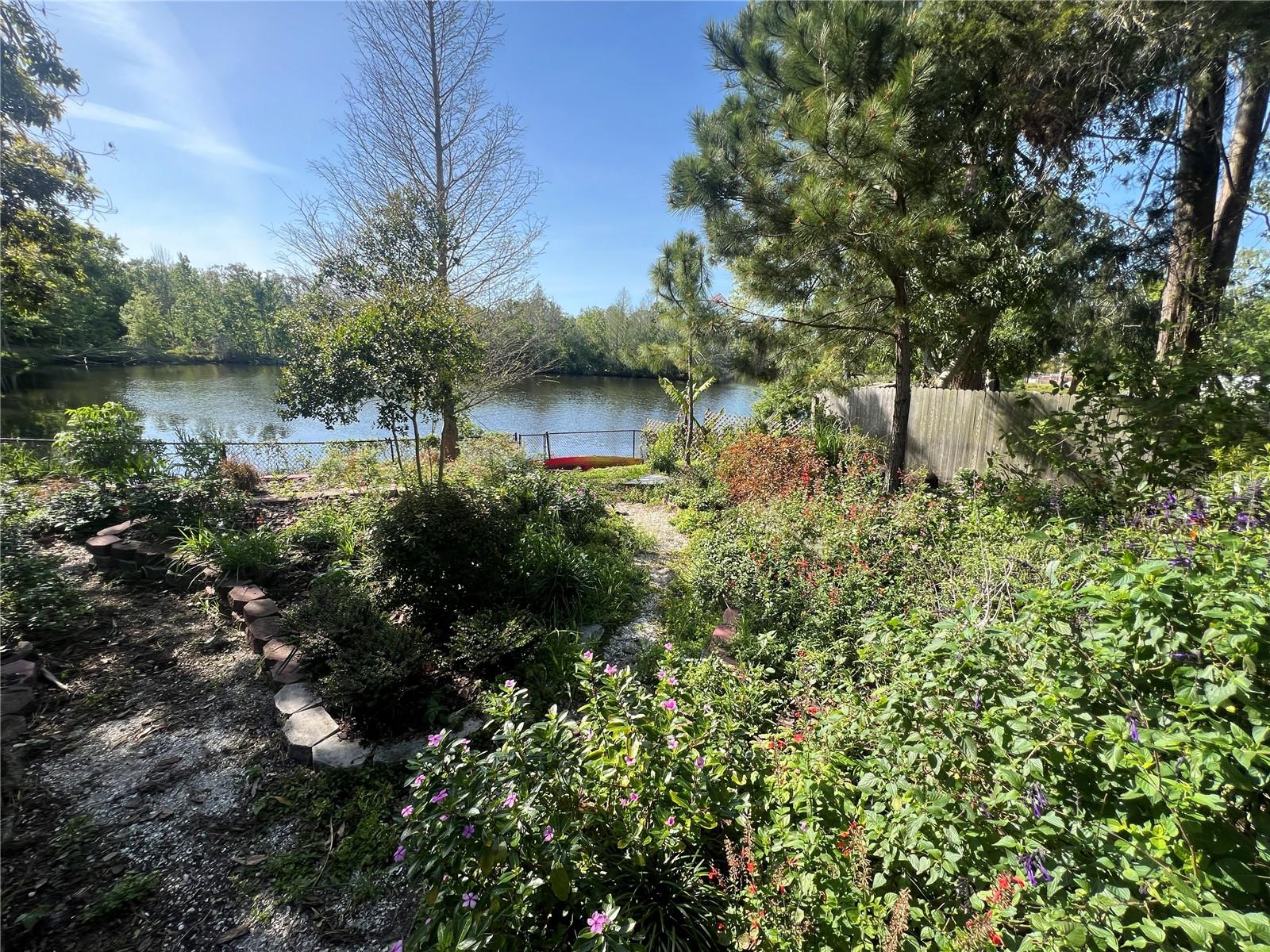 They say LOCATION, LOCATION, LOCATION for a reason and this home is it! This RARELY AVAILABLE area backs up to not only the amazing Hammock Park but also Lake Sue Mar. This WATERFRONT Home (X and AE Flood Zone- absolutely no hurricane damage) is a heart stopping quintessential Florida 3/2/1 in the Golf Cart Zone in adorable Dunedin. Anchored by stunning and sturdy Saltillo Tile this home is Freshly Painted inside and out, has a beautifully Updated Kitchen complete with a huge island that blends seamlessly into the cozy family room. The bathrooms need updating. The Roof is only six years old, the AC was updated in '23 and the only one year old water heater should last for years. This spectacular location has a backyard oasis including a rare well, for outdoor watering, features a new $4K Pump. A Huge enclosed patio ($30K) has doors on either side that leads to your fabulous outdoor shower, lovely shelled paths that wind through the natural gardens down to the water. Your own private gazebo provides the perfect spot for your morning coffee while taking in all of the peaceful Flora and Fauna that both the lake and Hammock Park provide. A NATURE LOVER'S PARADISE. There is a nice shed for additional storage. The seller wants you to know that the backyard seems to have its own little ecosystem and feels significantly cooler than the front of the home. Beautiful raised beds filled with tomatoes, peppers, cilantro, Rosemary, Dill and so much more are ripe for the picking and on a drip system! (Raised beds can be removed if it's not your thing) This home is just two blocks to Highlander Park, Dunedin Community Center, Dunedin Fine Arts Center, Ball Fields, Pools, Pickle Ball Courts, Tennis Courts and all this fantastic park has to offer while Hammock Park entrance is just steps away from your front door. Eight minutes by Golf Cart to Delicious Downtown Dunedin. Peace, tranquility and value all add up to a beautiful life.