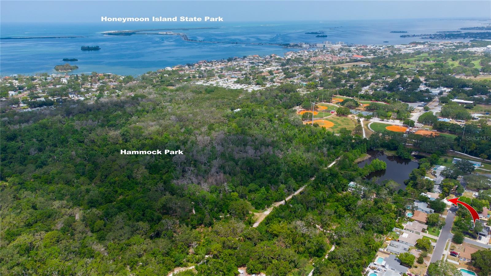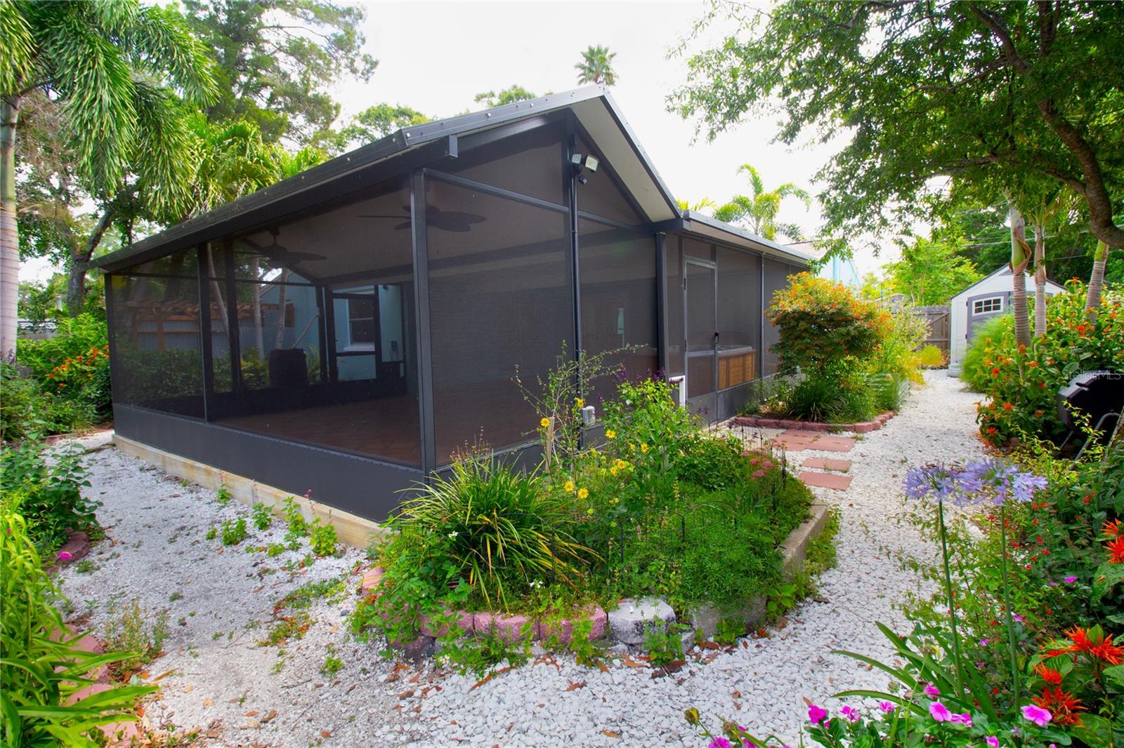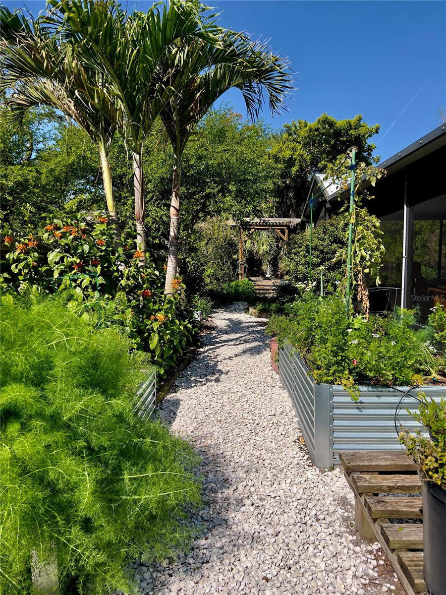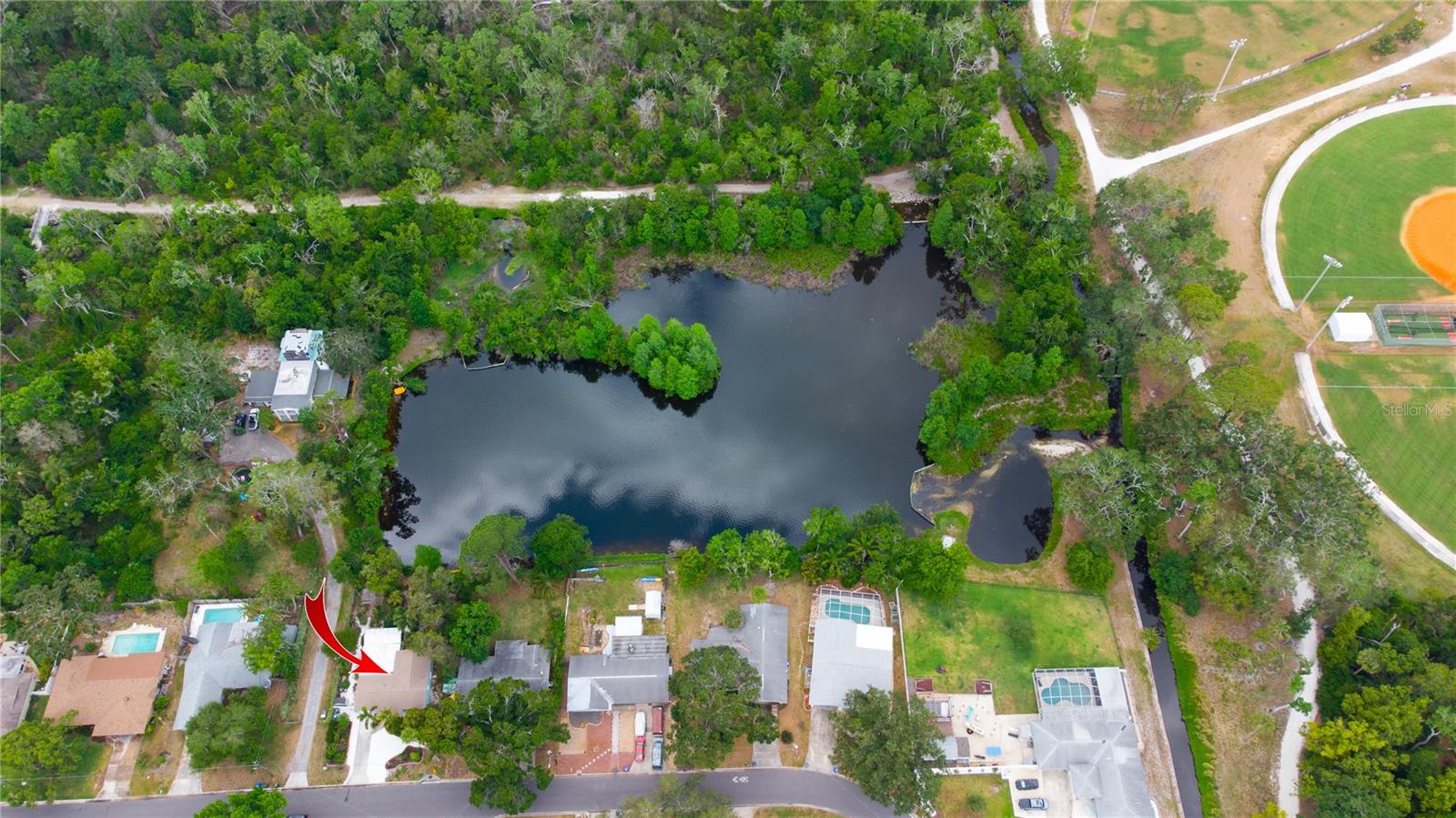 They say LOCATION, LOCATION, LOCATION for a reason and this home is it! This RARELY AVAILABLE area backs up to not only the amazing Hammock Park but also Lake Sue Mar. This WATERFRONT Home (X and AE Flood Zone- absolutely no hurricane damage) is a heart stopping quintessential Florida 3/2/1 in the Golf Cart Zone in adorable Dunedin. Anchored by stunning and sturdy Saltillo Tile this home is Freshly Painted inside and out, has a beautifully Updated Kitchen complete with a huge island that blends seamlessly into the cozy family room. The bathrooms need updating. The Roof is only six years old, the AC was updated in '23 and the only one year old water heater should last for years. This spectacular location has a backyard oasis including a rare well, for outdoor watering, features a new $4K Pump. A Huge enclosed patio ($30K) has doors on either side that leads to your fabulous outdoor shower, lovely shelled paths that wind through the natural gardens down to the water. Your own private gazebo provides the perfect spot for your morning coffee while taking in all of the peaceful Flora and Fauna that both the lake and Hammock Park provide. A NATURE LOVER'S PARADISE. There is a nice shed for additional storage. The seller wants you to know that the backyard seems to have its own little ecosystem and feels significantly cooler than the front of the home. Beautiful raised beds filled with tomatoes, peppers, cilantro, Rosemary, Dill and so much more are ripe for the picking and on a drip system! (Raised beds can be removed if it's not your thing) This home is just two blocks to Highlander Park, Dunedin Community Center, Dunedin Fine Arts Center, Ball Fields, Pools, Pickle Ball Courts, Tennis Courts and all this fantastic park has to offer while Hammock Park entrance is just steps away from your front door. Eight minutes by Golf Cart to Delicious Downtown Dunedin. Peace, tranquility and value all add up to a beautiful life.