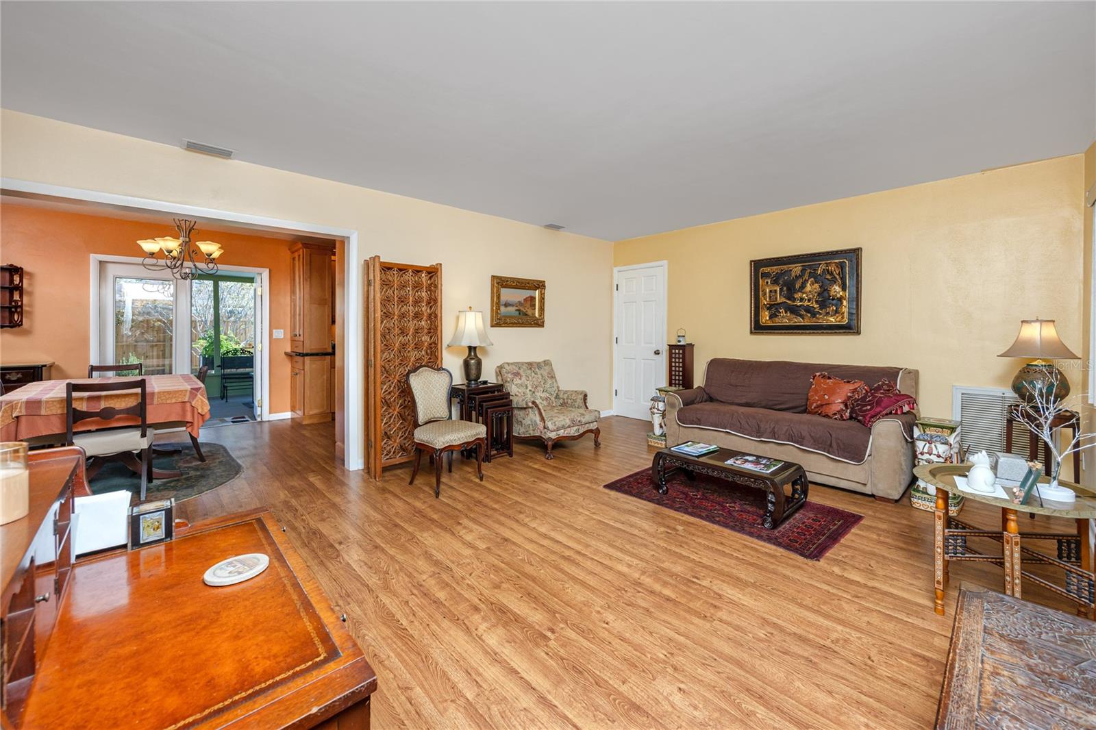 Charming Mid-Century Modern Bungalow in Enchanting Dunedin! Nestled just moments from the heart of downtown Dunedin, this delightful 2-bedroom, 2-bath cottage is a true gem. Step inside and immediately feel at home as the warm, rich laminate flooring flows seamlessly throughout—no carpet, just easy-care tile and laminate, perfect for pet lovers and those who appreciate a sleek, modern touch. Designed with the gourmet chef in mind, the kitchen is a masterpiece of style and function. Gorgeous maple cabinetry and gleaming granite countertops set the stage for culinary creativity, while two elegant glass-front cabinets are the perfect place to showcase your finest dishware. A picturesque garden-view window above the sink brings in natural light and a tranquil glimpse of nature, making meal prep a delight. Ample storage solutions, including pull-out shelving and deep drawers, ensure effortless organization. The spacious second bedroom boasts two closets, including a walk-in—a rare find! The guest bathroom, beautifully remodeled, is bathed in light, offering a fresh, inviting atmosphere. The primary suite features a convenient wall closet and an en-suite bath with a walk-in shower, perfect for a private retreat. Practicality meets convenience with garage access directly from the home—ideal for gardeners and DIY enthusiasts who want to freshen up before stepping inside. The thoughtfully designed landscaping embraces Florida-friendly elements, with attractive rock features that enhance curb appeal while conserving water. A strategically placed shade tree ensures a level walkway with no sidewalk disruptions—a subtle yet invaluable detail. Step into the backyard oasis, where vibrant blooms and lush greenery emerge each spring with minimal maintenance required. Recent updates add peace of mind: a new electrical panel (2006) and a modern AC unit (2019) keep the home running smoothly. And let’s talk about location—this home is a dream for those who love Dunedin’s charm! Just a short stroll to downtown, you’ll enjoy an eclectic mix of boutique shops, award-winning restaurants, a bustling marina, scenic parks, and cultural hubs like the Dunedin Fine Arts Center. Outdoor enthusiasts will love easy access to The Pinellas Trail and Nature’s Food Patch Grocery, while year-round events make every weekend feel like a getaway. Don’t miss the opportunity to call this captivating bungalow home! Seller to put on NEW ROOF AT CLOSING. Call today for your showing.