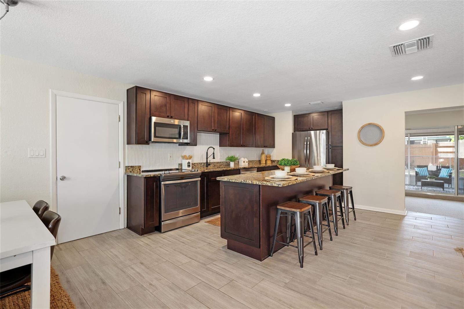 Discover 1047 Robmar Road—a beautifully remodeled 3-bedroom, 2-bathroom, 1,755-square-foot home in one of Dunedin’s most sought-after neighborhoods. Perfectly positioned just a quick golf cart ride to Downtown Dunedin, this home places you moments from local breweries, waterfront dining, artisan shops, and a vibrant calendar of community events. Live the Dunedin lifestyle in this stylish gem just minutes from everything! Nature lovers and active buyers will appreciate the unbeatable proximity to Hammock Park, the Pinellas Trail, Highlander Pool, the Dunedin Fine Arts Center, and the Dunedin Community Center—all just a short trail walk or bike ride away. Whether you’re exploring scenic trails, enjoying a local festival, or catching a sunset downtown, this location delivers the ultimate in convenience and lifestyle. Step inside to discover a spacious split-bedroom open floor plan that has been thoughtfully updated throughout. The heart of the home is the designer kitchen, which features a large central island perfect for gathering, rich wood cabinetry, granite countertops, a complete stainless steel appliance package, and ample storage. It opens to a bright and inviting living and dining area, creating an ideal layout for entertaining or relaxing with family. Your private sanctuary awaits in the primary suite, featuring a generous walk-in closet and a chic, renovated ensuite with a double vanity and step-in shower. On the opposite side, two additional bedrooms offer flexibility for guests, family, or hobbies. The dedicated office boasts new carpet and a generous work area, making every remote work session effortless and stress-free. This flexible space could also serve as a den or children's playroom. Step outside to your personal retreat—an oversized, fully fenced backyard perfect for pets, play, or future plans. Enjoy Florida living year-round from the screened-in lanai, ideal for morning coffee or evening gatherings. With an inviting front porch and newly refreshed landscaping, every detail of this home exudes curb appeal and warm, welcoming charm. Additional highlights include an oversized one-car garage with plenty of space for storage or a workshop. Every inch of this property has been lovingly maintained and upgraded, offering move-in-ready ease with style and functionality. Whether you’re searching for your forever home, a second home near the coast, or a smart investment in one of Tampa Bay’s most beloved towns, 1047 Robmar Rd delivers location, charm, and modern living all in one package. Not in a flood zone and didn’t have any damage from the storms! Schedule your showing today because this home won't last long!