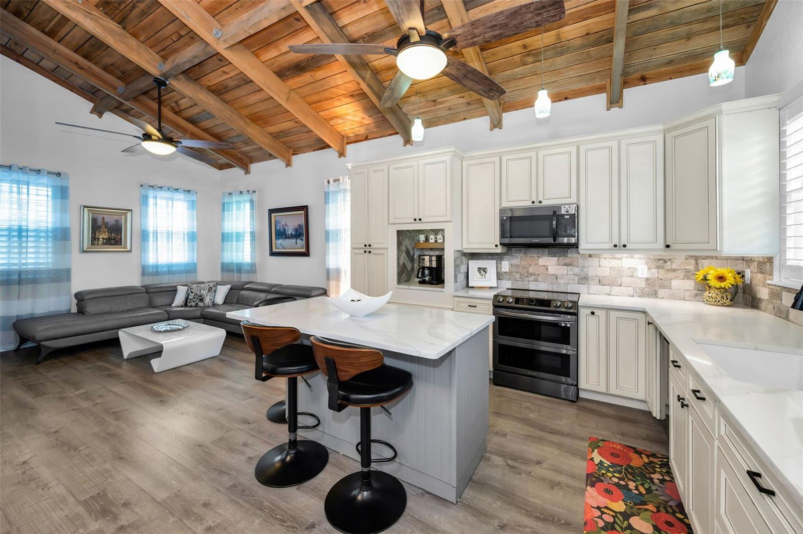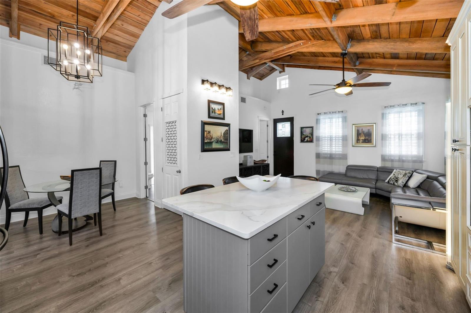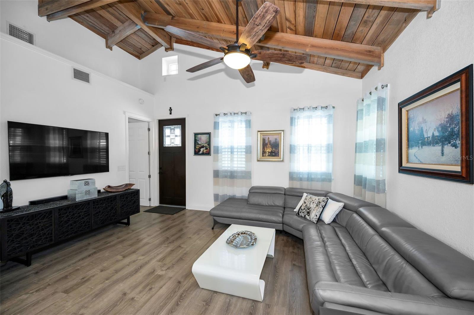 $119K Price Reduction Since Aug 8th! Seller has invested over $100K since 2022 into this one-of-a-kind 2-bedroom, 2-bath home, making it one of the NEWER and UPGRADED properties in Dunedin. Built in 2015, this newer-construction gem blends coastal charm, craftsman detail, and low-maintenance living—all in a highly walkable location less than a mile to Downtown Dunedin, the Gulf, and the TD Ballpark. Located on one of Dunedin’s most charming streets, it offers the perfect balance of quiet neighborhood living and proximity to the action. Step inside to soaring VAULTED ceilings, LUXURY VINYL PLANK flooring, PLANTATION SHUTTERS & energy-efficient 8-foot doors and windows, creating a space that feels open, elegant, and bright. The kitchen features QUARTZ countertops, a NATURAL STONE backsplash, STAINLESS STEEL appliances (all 2022) including a DOUBLE OVEN oven, soft-close cabinetry with roll-outs, and a lazy Susan—the perfect mix of form and function. Both bathrooms were FULLY REMODELED 2022 with high-end finishes, and the primary suite includes a CUSTOM CLOSET SYSTEM system and direct access to the backyard. Additional UPGRADES include an inside laundry room with washer/dryer, water softener, METAL ROOF, outdoor shower, POWERED STORAGE SHED, 10x20 paver patio, RV parking with hookup, a wide 3-car driveway, and professional landscaping featuring a striking Bismarck palm. Located in a high-and-dry zone, there’s no flood insurance required. Whether you're downsizing, purchasing a second home, or searching for a stylish seasonal escape, this home offers the freedom of low-maintenance LUXURY without sacrificing location or quality. Just a short GOLF CART RIDE to the SUNSETS views along Victoria Drive, the TORONTO BLUE JAYS spring training games, or the award-winning restaurants, breweries, parks, and boutiques of historic Downtown Dunedin—this home is your key to the Florida lifestyle. With its unbeatable LOCATION, QUALITY CONSTRUCTION, and thoughtful design, this RARE OPPORTUNITY won’t last. Own a piece of Dunedin’s charm and enjoy more of what matters—SUNSETS, SIMPLICITY AND STYLE. Don't forget to check out the social media reel and 3D floorplan: https://properties.homefx.com/videos/01962493-0bf7-72d0-8249-846afbc66ada