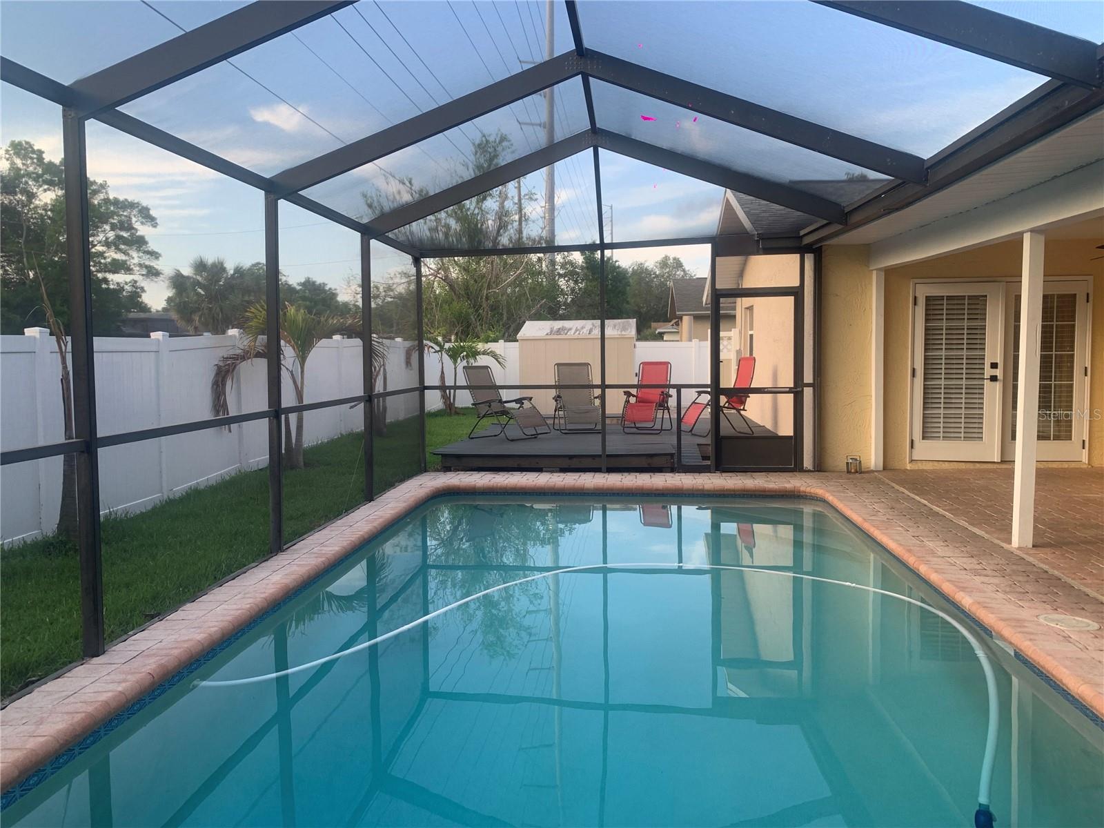 BEAUTIFUL DUNEDIN 4 bed/2 bath Home with PRIVATE SALTWATER POOL sitting High and Dry in a NO FLOOD ZONE (yet only 15 minutes to the sparkling waters of Honeymoon Island's beaches and mere minutes to Downtown Dunedin) on a large 1/4-acre lot in the highly desirable Golf Cart Friendly BRAE MOOR ESTATES and located on a Cul-De-Sac! A RARE find in this community, it has a FRESHLY PAINTED INTERIOR 2025 with BRAND NEW KITCHEN CABINETS 2025, a 2020 Roof, HVAC 2021, new Garage Door 2020, New Duct Work throughout 2021 and FULLY PAID FOR SOLAR PANELS! Average electric bills can run as low as 60 to 100 a month. An Oversized 2 Car Garage includes plenty of storage room for all your needs. The chef's KITCHEN has been updated with Granite Countertops, Stainless Steel Appliances plus an extra-large Island/Breakfast Bar as well as HUGE Pantry Closets. Open Concept Dining Area adjacent to the kitchen fits a big table for more formal dining. The adjacent Living Room has room for a large sectional and FRENCH DOORS leading out to the pool. The spacious PRIMARY BEDROOM also has French Doors to the patio/pool area and a large walk-in closet with en-suite bath. Mature TROPICAL LANDSCAPING, fire pit and lounging spots abound both inside the Screened Pool/Porch Enclosure and on either side with vinyl fencing. An Irrigation System keeps the grass lush year-round. This gorgeous home has an Indoor Laundry Room, too. The 4th bedroom can be used as a bonus/media room, den or office if preferred and also has FRENCH DOORS leading out to the Gorgeous Pool Area. Enjoy all the amenities you've been looking for in a DUNEDIN DREAM HOME.