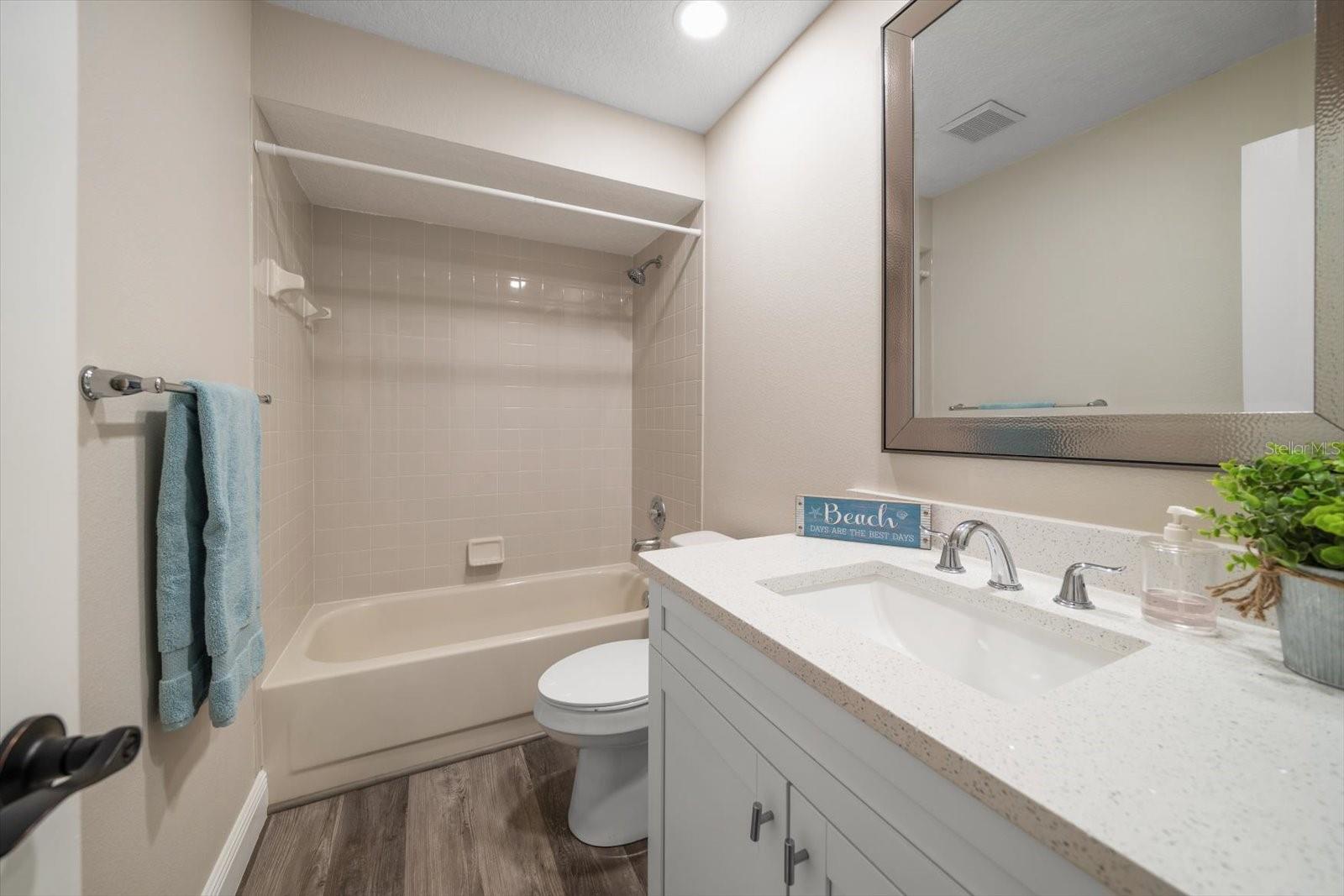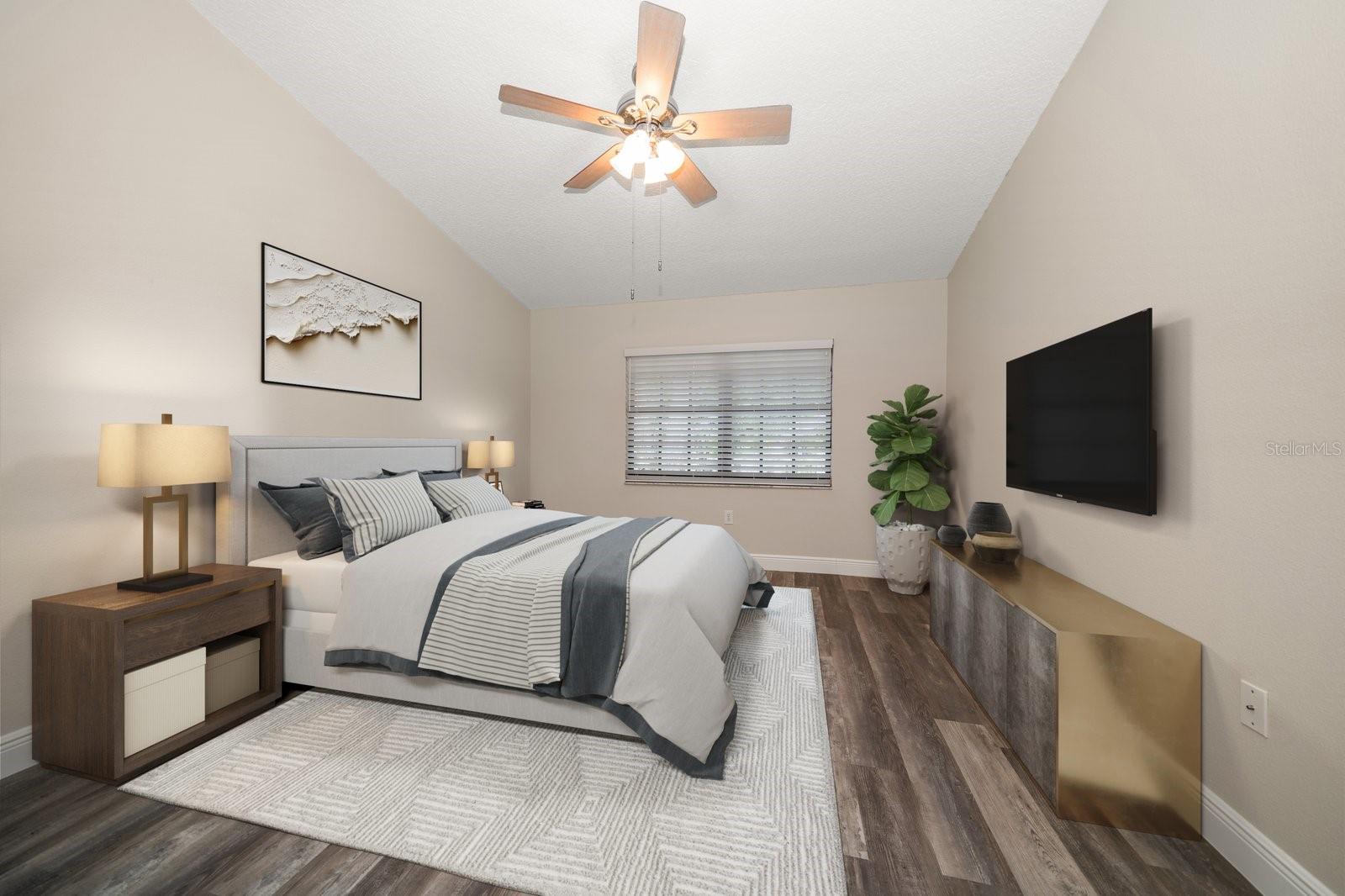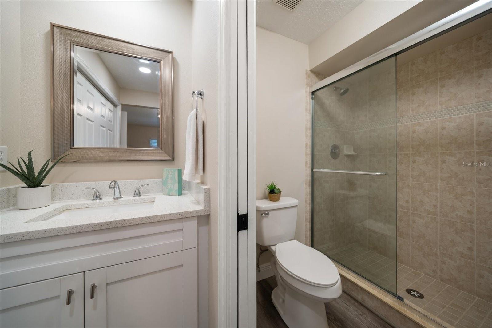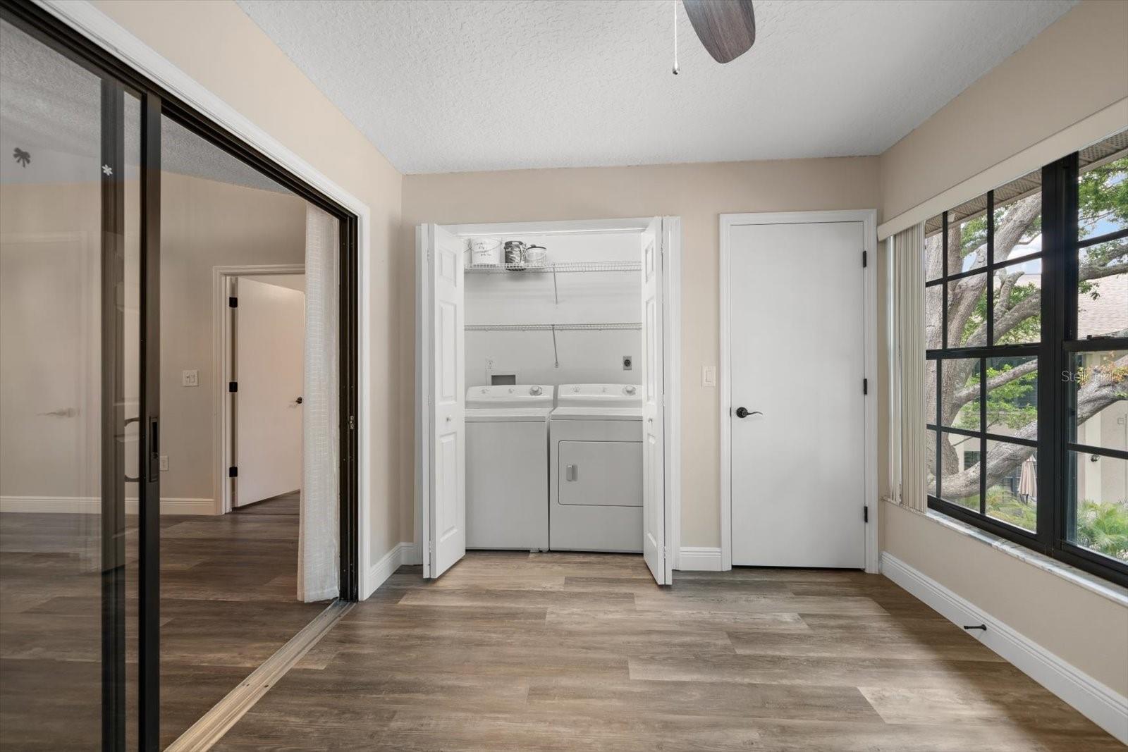 One or more photo(s) has been virtually staged. Completely Remodeled with NEW A/C & NEW HOT WATER TANK! At 63 feet above sea level, this condo is NOT IN A FLOOD ZONE. Nestled within the serene community of Forest Park Condos in highly sought after Dunedin, this pristine, completely updated condo offers the perfect blend of luxury, comfort, and convenience. A meticulously maintained unit, this stunning condo boasts 2 bedrooms, and 2 baths, with assigned carport parking, soaring 12-foot vaulted ceilings, and an enclosed sunroom with tranquil and park-like lake views. Up the stairs to this 2nd floor unit you are met with a cozy space for outdoor seating on the front of the unit. Step inside, and you'll instantly fall in love with the open-concept design and high-end finishes throughout, you will immediately be drawn into the light filled space, the 12’ vaulted ceilings create an airy openness throughout the main living areas. Luxury vinyl plank flooring in every room sets a warm yet sophisticated tone. The sparkling clean, fully updated and open gourmet kitchen is both stylish and functional. Soft-close 42” cabinetry provides ample storage, while gleaming quartz countertops, glass tile backsplash, a coffee bar with large storage drawers, and a single-level breakfast bar invite casual conversations over morning coffee. All Frigidaire stainless-steel appliances 2021. An open concept the kitchen and dining space seamlessly connect to the living room, with sliding glass doors that open to the enclosed sunroom, and you’re greeted by a peaceful lake view and lush greenery—your private escape for morning coffee or evening relaxation. The sunroom includes a spacious and convenient laundry closet, and a big storage closet. Back inside, the primary suite is a sanctuary of its own. Positioned away from the main living areas for maximum privacy, it features vaulted ceilings and a window facing the lake, and 2 closets. The en suite bath is a dream, boasting a walk-in shower with glass doors, quartz countertops, soft close cabinetry, and a pocket door for privacy. A split plan, the second bedroom is at the front of the unit next to an updated hall bath with quartz counters, soft close cabinets and a tub/shower conveniently located for guests, a hall linen closet and pull down steps to access plentiful attic storage space. This unit has a NEW A/C unit, Comfortmaker, 2.5 TON, 15 SEER and NEW “State” brand WATER HEATER and also this unit comes with a TRANSFERRABLE HOME WARRANTY. From the elegant finishes to the well-planned layout, this gorgeous condo offers a perfect blend of luxury, comfort, and convenience. There is also a heated community pool, and updated clubhouse with a kitchenette and pool table. Close to shopping, dining, parks, malls, airports and located just 12 minutes from Honeymoon Island and the sparkling waters of the Gulf.