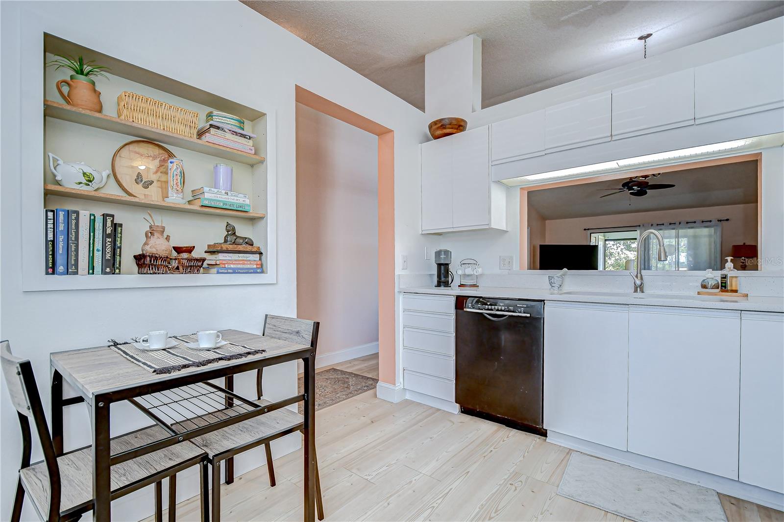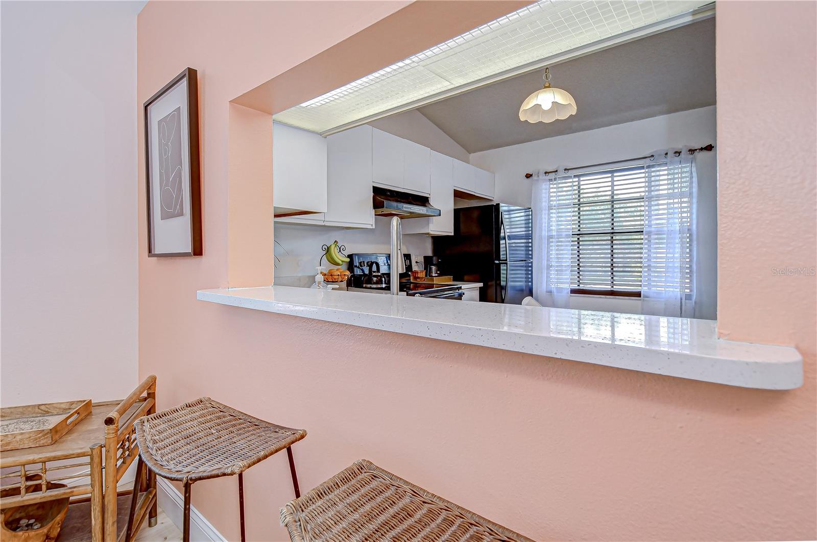 The artsy, coastal amazing town of Dunedin is calling you! This condo has such a great vibe! Welcome to this fabulous condo in Forest Park...where peaceful, easy living meets the vibrant energy of Dunedin! As soon as you drive into this tree lined community you'll feel right at home. This beautifully updated 2 bedroom/2 full bathroom condo offers a charming, airy vibe with a mixture of modern touches. It is an end unit on the top floor, which means vaulted ceilings and no neighbors above...and extra windows along the living and dining rooms that fill the space with natural light. Sip your morning coffee on the front patio or Step into the cozy screened-in Florida room—perfect for unwinding in the evening breeze and enjoying direct views of every beautiful sunset. The home features brand-new quartz countertops in the spacious kitchen, upgraded bathrooms, and a newer AC system just two years old for year-round comfort. Inside, you’ll find luxury vinyl plank flooring, a full size washer and dryer and a functional kitchen with a sweet eat-in nook. Inside, enjoy modern vinyl plank floors, a spacious kitchen with a cute eat-in nook, and a generous dining/living area perfect for entertaining or relaxing. Kitchen has pass through window/breakfast bar overlooking dining room and lots of cabinet and counter space. A covered carport is included with this unit, and the building is ideally located near the sparkling community pool and clubhouse—your go-to spot for sun-soaked afternoons and casual neighborhood gatherings or a game of billiards. Plus, you’re just minutes away from everything that makes Dunedin magical: downtown’s lively mix of breweries, restaurants, and festivals; the scenic Pinellas Trail; Honeymoon Island Beaches and Caladesi State Park; and even spring training games at TD Ballpark. Whether you're looking for your forever home, a sunny seasonal getaway, or a fresh start in one of Florida’s most beloved coastal towns, this condo is the perfect blend of style, comfort, and location. Schedule your showing today and discover Dunedin!
