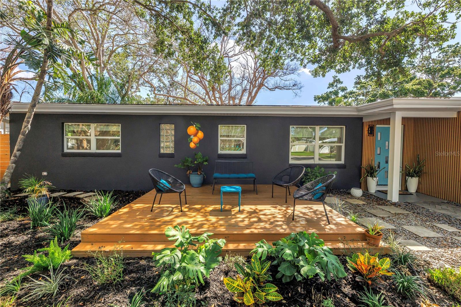 Price Reduction ! ** Seller offering covering cost of 1st year Flood Insurance** Fully Redone home was remodeled using high end finishes. Come see it for yourself. You won’t be disappointed. Elegant oversized 4-Bedroom, 3-Bathroom off 100 feet from Pinellas Trail in the sought after neighborhood of Dunedin Isles. This private and beautifully appointed Mid-Century home features over-sized 4-bedrooms, 3-bathroom that offers perfect balance of style, comfort, and Florida charm. Situated on a generous 12,000sq/ft lot with exceptional curb appeal, the property features mature landscaping and a striking oak tree that anchors the front yard with timeless beauty. From the moment you enter, you’ll be captivated by the home’s open layout, unique architectural character, and tranquil ambiance. Natural light floods the interior through updated windows, complemented by modern LED ceiling lighting throughout. With over 2,200 square feet of thoughtfully designed living space, the home includes four oversized bedrooms, with two of the bedrooms featuring luxurious en-suite bathrooms with spa-like, curb-less showers, double vanities, dual shower heads, and handheld sprayers. The open-concept living, dining, and kitchen areas provide a seamless flow—ideal for both everyday living and entertaining. The chef’s kitchen is equipped with quartz countertops, a spacious island, and brand-new, top-of-the-line stainless steel appliances. The living room features an elegant, custom-designed TV console wall with a contemporary built-in electric fireplace, creating a warm and inviting focal point. This space transitions seamlessly to the backyard oasis through dual sliding glass doors. Outdoors, you will find two stylish pergolas perfect for entertaining, a spacious 25' x 20' deck in the back and front of home, and an additional sliding door off the guest bedroom for easy access. The backyard offers ample room for a future pool or fire pit, along with a large storage shed for added convenience. Fully fenced with two gated entry points on opposite sides of the home—one wide enough to accommodate a golf cart—this private retreat is thoughtfully designed for both comfort and functionality. The home also features New electrical and plumbing systems, Level 4 smooth drywall on walls and ceilings, updated windows, new solid wood frosted doors and hardware, Luxury waterproof plank flooring, Stainless Steel appliances, newly redone kitchen with Quartz countertops and backsplash, along with a newly installed HVAC system—providing peace of mind and energy efficiency for years to come. Located just off the Pinellas Trail, this home offers convenient access to Dunedin’s vibrant downtown, renowned for its restaurants, shops, breweries, and year-round events. Enjoy the ease of a golf cart-friendly community with nearby beaches, marinas, golf courses, and Major League Baseball Spring Training facilities. This exceptional property is a rare opportunity to enjoy refined Florida living in one of the area’s most desirable neighborhoods.