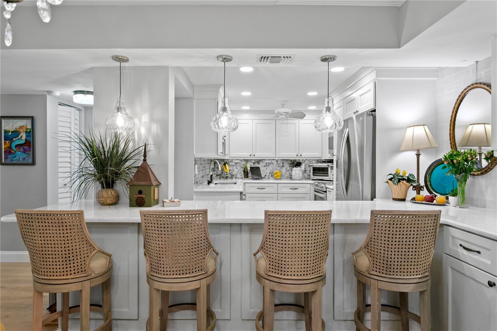 Back on market due to no fault of the home. Don’t miss this opportunity! This Dunedin waterfront beauty is available again! The home has already passed inspections and is ready for a smooth, quick close. RARE TOP-FLOOR RESIDENCE WITH UNBELIEVABLE DIRECT WATERVIEWS IN DUNEDIN WATERFRONT COMMUNITY. Discover this one-of-a-kind, fully remodeled residence offering sweeping, unobstructed views of the Gulf and Intracoastal Waterway from every room. This unique home is all about coastal living at its finest, with 240 sq ft of wraparound balcony space outfitted with remote-control SunSetter blinds, heaters, and fans . . . perfect for sunrise coffee, sunset cocktails, dolphin watching, and year-round entertaining. Inside, the open-concept floor plan is anchored by an L-shaped kitchen featuring custom wood cabinetry, a 12-foot quartz breakfast bar, LG stainless steel appliances, and a quartz dry bar with a built-in wine fridge. Recessed lighting and luxury vinyl plank flooring create a cohesive and modern aesthetic throughout. . . The king-size primary suite offers direct balcony access, a walk-in closet, and an en-suite bath. The secondary bedroom includes a built-in Murphy bed, making it ideal as a guest room or home office—both bedrooms have water views and balcony access. . . Located in a secure, elevated stilt building, the residence offers ample storage, including a bike room, private storage at your assigned underground parking space (which is right by the elevator), and shared storage on your floor. . . RESORT-STYLE AMENITIES INCLUDE: a private Beach and Waterfront Park with BBQ areas, a Heated Pool with a shower, Kayak Storage, Tennis and Pickleball courts, Two Clubhouses one with full kitchen, a Fitness Center, Billiards, Ping Pong, Bocce Ball, Shuffleboard and a Library. In an unbeatable location across from the Pinellas Trail and near the Dunedin Causeway, with easy access to Honeymoon Island, Caladesi Island, Dunedin Golf Course, and the vibrant downtown Dunedin area of boutiques, restaurants and breweries. . . BUILDING IMPROVEMENTS INCLUDE: New Elevator - New Roof - Structurally Updated Balconies - Breakaway Garage Walls - Hallway Carpeting (in progress). ALL ASSESSMENTS ARE PAID, providing peace of mind and long-term value. Dunedin just ranked #1 on Travel + Leisure's 'Most Livable' Place to Retire in the U.S. and One of the Best Small Towns to Live In with a walkable downtown full of quaint shops and restaurants, our scenic parks, and easy access to beautiful Honeymoon Island, Dunedin is a true example of coastal living done right.