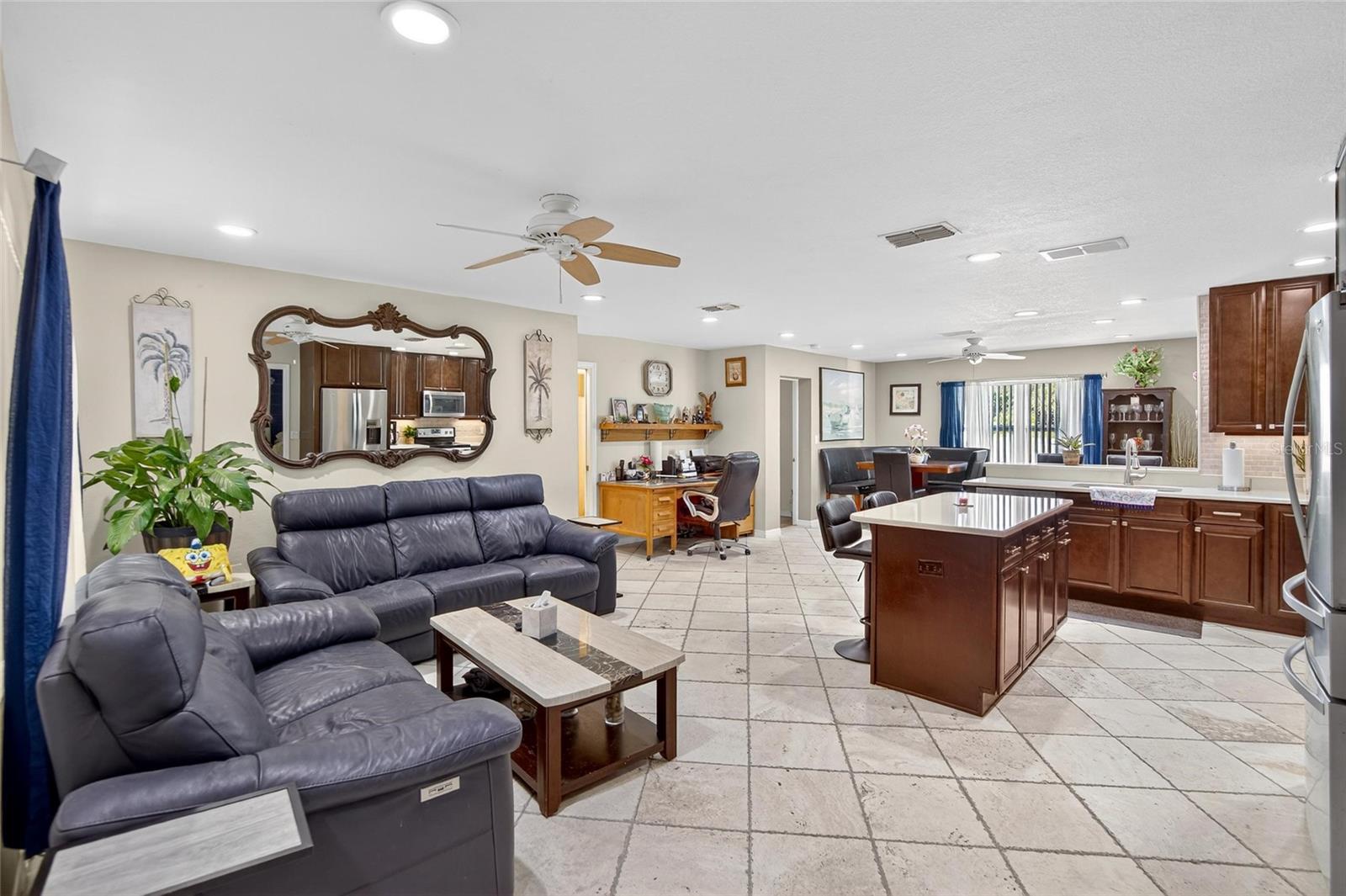 LAKEFRONT OASISW/POOL & REPARIAN RIGHTS – STEPS TO DUNEDIN BEACHES! NOT IN A FLOOD ZONE Discover your lakeside oasis at 1436 Windmoor Drive in sought-after Dunedin! This solid 3-bedroom, 2-bathroom lakefront home offers expansive views of Scot’s Lake and a fantastic location just a short bike ride from vibrant downtown Dunedin and award-winning beaches like Honeymoon Island, Caladesi Island, and Clearwater Beach. Step inside this move-in ready home and find a comfortable, functional layout ready for your life. The kitchen features chic wood cabinets and durable quartz countertops, complemented by fairly new appliances, offering a great starting point. The open floor plan seamlessly connects the kitchen, dining, and family room. Enjoy privacy with a split-bedroom layout that places the primary suite on one side of the home, separate from the two additional bedrooms. Outdoor living is exceptional! Relax by the sparkling pool in your low-maintenance backyard while soaking in serene lake views. The versatile screened in Florida room (not included in the home's 1,977 sq ft) provides a wonderful bonus space for year-round enjoyment. Embrace waterfront adventures with riparian rights to Scot’s Lake, and enjoy peace of mind knowing the property is not in a flood zone. This is your opportunity: Live comfortably now in this well-situated home, or easily remodel and adapt it to your dream vision. Live the coastal lifestyle every day at 1436 Windmoor Drive!