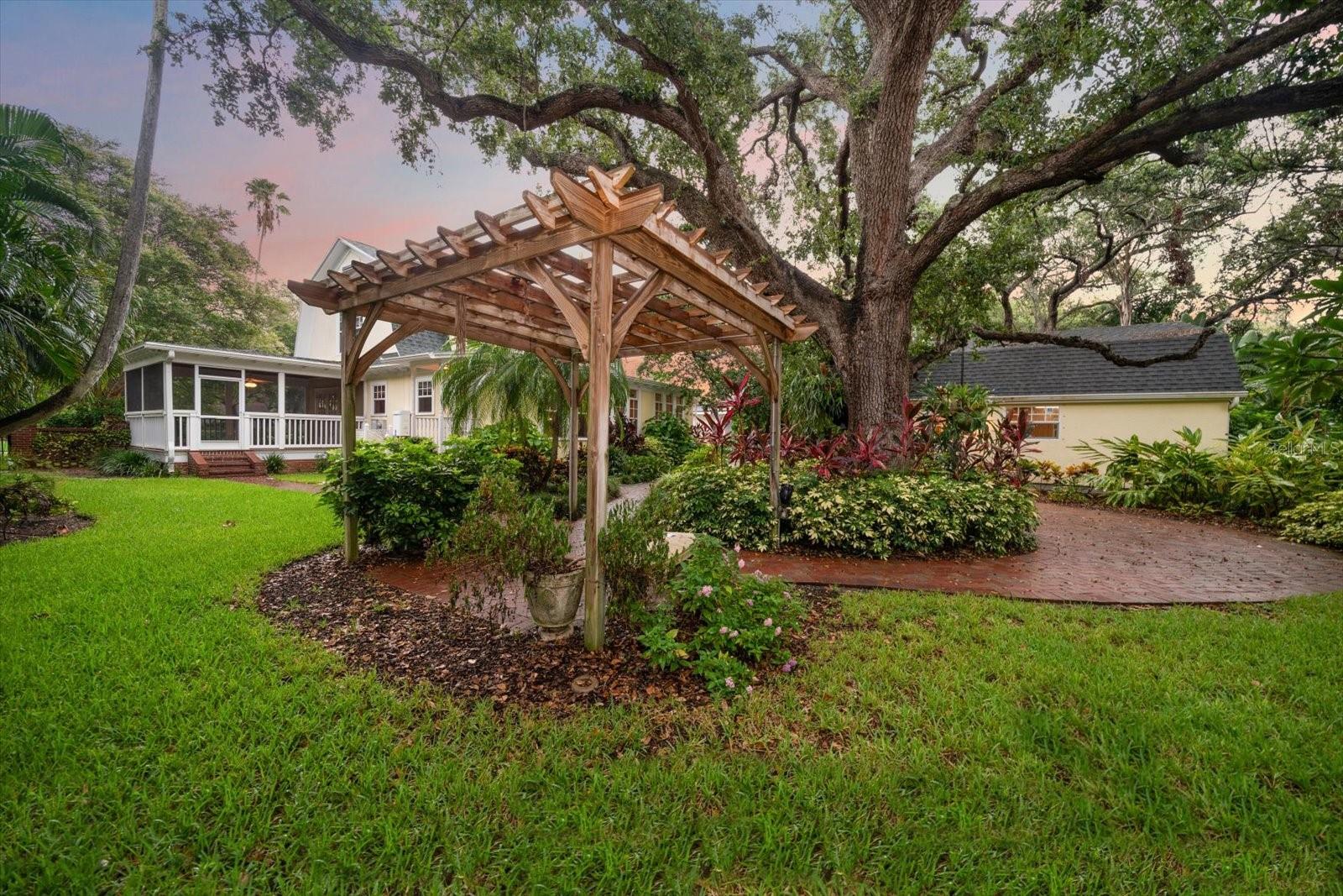 Charming 1926 Dunedin Gem – Easy golf cart ride to Main Street & Edgewater Drive Park. Located less than a mile from vibrant Downtown Dunedin, and only a block and a half from scenic Edgewater Drive Park, this beautifully preserved 1926 two-story home blends historic charm with modern convenience. Meticulously maintained by the same owner for over 50 years, the home features original architectural details and character throughout, complemented by a tastefully updated kitchen. With 3 bedrooms and a dedicated office space—complete with its own private entrance—this home offers both comfort and flexibility. The spacious screened porch off the dining room is perfect for casual entertaining or relaxing with a good book. Set on a lush, oversized lot, the property is a gardener’s paradise with winding brick pathways, mature trees, and a canopy of greenery. A detached oversized 2-car garage, built in 2019, offers ample storage and workspace. Additional features include natural gas for the hot water heater and an unbeatable location in one of Dunedin’s most desirable neighborhoods. Don’t miss the opportunity to own a piece of Dunedin history just moments from the waterfront, dining, and shopping!