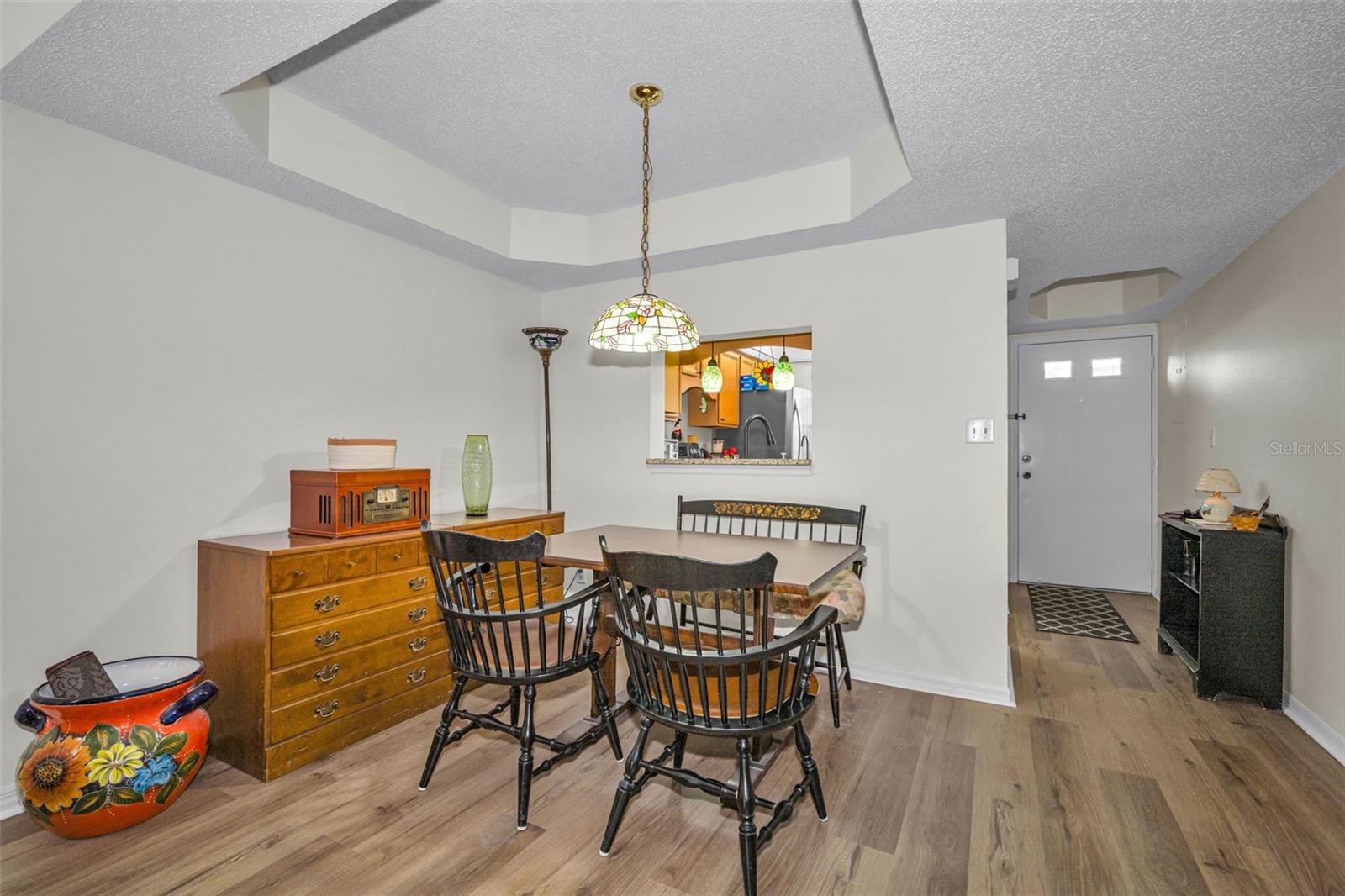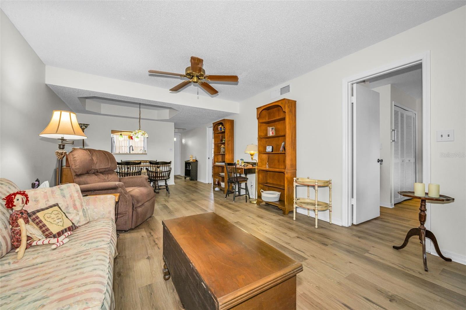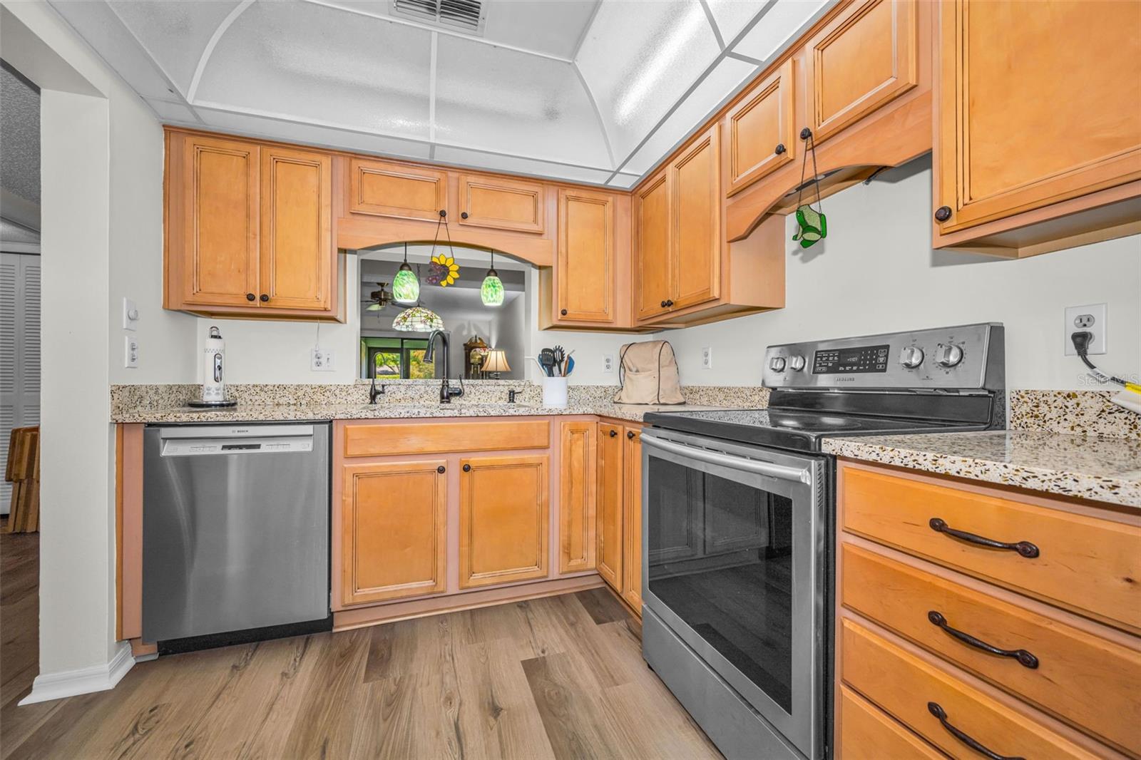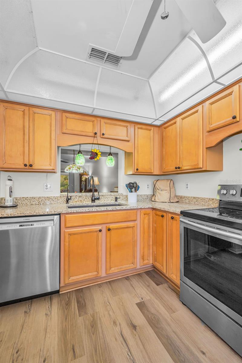 Freshly painted. all neutral creamy white! and all NEW flooring just installed !!! No carpet anywhere and all the same flooring throughout! And then the seller is even offering 5k towards buyers closing costs at closing! Located in quaint desirable Dunedin with it's fun Main St that features local restaurants, breweries, and shops! Even the Pinellas Trail goes right through downtown, which is a biking, walking trail that goes through the county. And a short drive to beautiful Dunedin Causeway and Honeymoon Park, all the stores, banks, medical you need close by, too! You can walk 2 blocks to Walmart Market, CVS and Dollar General stores. Ground floor home and covered parking at your doorstep. A quick walk to pool and clubhouse. Beautiful pond view from enclosed Lania that adds an additional 80 plus sq ft to home. Updated kitchen with a terrazzo counter! Split bedrooms and primary bedroom has an en suite full bath and not 1 but 2 closets! Community is cat friendly, High and dry and not in flood zone or evacuation zone. Washer and dryer stay, too! Monthly fee is staying 600. a month for 2026. No stairs to climb to get to your new home! Ground floor home with covered parking at your front door.