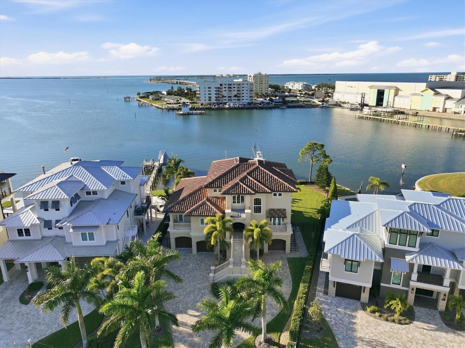 Perched on open water with sweeping, unobstructed views of the Gulf of Mexico, this elevated coastal residence offers a rare blend of luxury, privacy, and location. Ideally positioned with quick access to Honeymoon Island, Caladesi Island, and Hurricane Pass, the home is perfectly suited for boating and fishing enthusiasts seeking immediate access to world-class waters. The thoughtfully designed floor plan features three bedrooms and two-and-a-half baths, finished with elegant travertine marble and refined coastal details throughout. The chef’s kitchen is outfitted with premium Thermador Pro Series appliances and opens to light-filled living spaces that frame the ever-changing Gulf vistas. The primary suite occupies the entire third floor, creating a private retreat with truly spectacular water views. This serene space includes an adjacent sitting area warmed by a striking double-sided fireplace, ideal for quiet mornings or evenings overlooking the Gulf. The luxurious primary bath is beautifully designed with custom built-in features and panoramic water views, while the exceptionally large, well-organized closet offers abundant space for everything imaginable. Built for both comfort and peace of mind, the home is exceptionally well maintained and elevated, providing ample garage space for vehicles, storage, and watercraft. An elevator services all three floors, ensuring effortless access throughout the home. Boaters will love the oversized dock with water, electricity, and plenty of room for family and friends to hang out and enjoy the sunsets. A 10,000 lb boat lift, immediate access to a deep water channel, and close proximity to a marina make your days on the water even more convenient and fun. From sunrise to sunset, this remarkable residence delivers a refined coastal lifestyle defined by breathtaking views and unmatched privacy.
