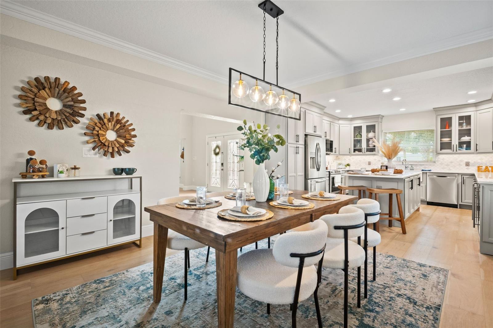 Welcome to 536 Baywood Drive North, a beautifully refreshed home in the heart of Dunedin where thoughtful upgrades meet timeless Florida charm! This residence has been extensively updated to offer comfort, style, and peace of mind. Gorgeous wood floors have been sanded and polished, complemented by new baseboards, trim, and interior doors throughout the downstairs. The kitchen has been completely elevated with new bottom cabinetry, appliances, backsplash tile, a wine cooler, and a dedicated drink refrigerator, creating a space that is both functional and perfect for entertaining. The primary retreat is upstairs, and boasts a large bathroom with a soaking tub and shower as well as a private balcony. The downstairs layout features a freshly carpeted second bedroom, an office with new wood flooring, and updated bathrooms with new vanities. Plantation blinds adorn all French doors and windows, adding elegance and privacy throughout the home. The laundry room has been transformed with custom cabinetry, a sink, granite countertops, a new washer and dryer, and a convenient wall-mounted ironing board. Behind the scenes, major improvements add lasting value, including new drywall from four feet up throughout, proper insulation in exterior walls, updated electrical outlets, plates, arc fault breakers, and a permitted hurricane-rated living room door. Additional upgrades include a new gas tankless water heater, new upstairs AC, and a striking new stair banister with decorative risers. Outdoor living shines with a refreshed pool system featuring a new pump and updated gas pool heater components, new transformers for landscape lighting, irrigation, and fountain, plus lush new sod in both the front and backyard with added landscaping along the east side of the home. Enjoy your view from the Tiki hut or take out a boat, kayak, or jet ski, The two boat lifts have a 4,000 capacity each. Primed and painted throughout much of the interior, this Dunedin home is move-in ready and thoughtfully improved from top to bottom. Ideally located near downtown Dunedin, award-winning beaches including Honeymoon Island, and the Pinellas Trail, this property offers the perfect blend of location, lifestyle, and modern upgrades.