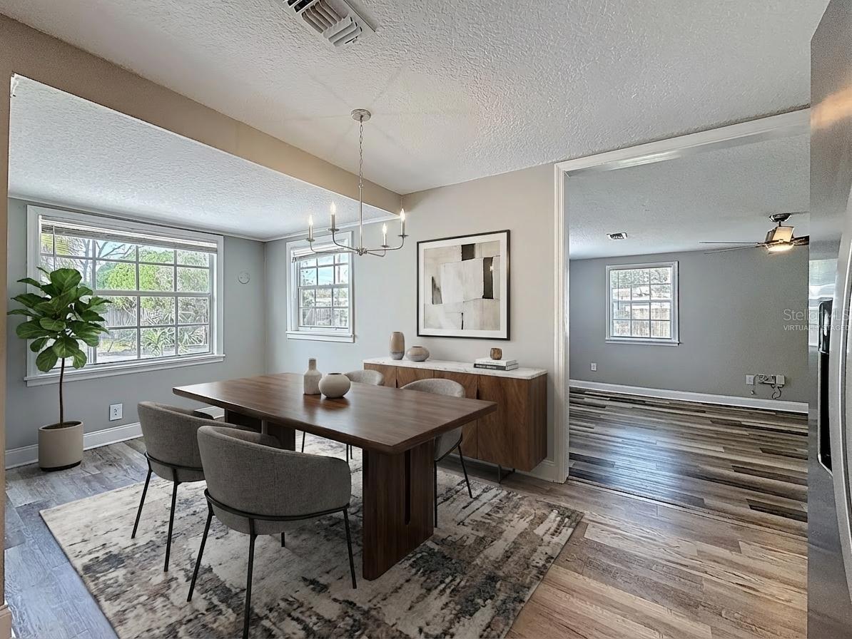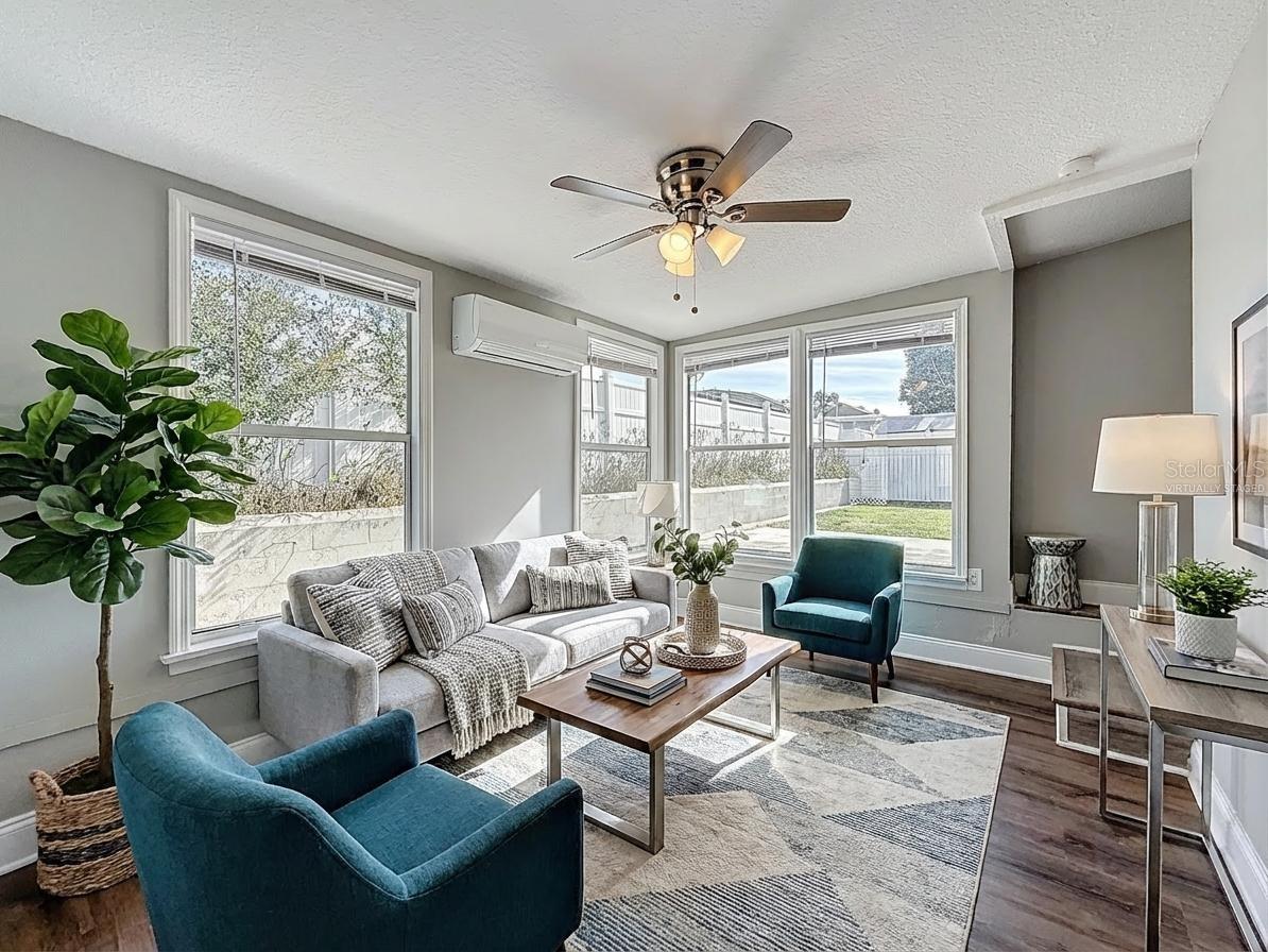 One or more photo(s) has been virtually staged. $35,000 PRICE REDUCTION! Discover the perfect blend of comfort, style, and prime location minutes from the Gulf of America and NOT in a flood zone at 1125 Michigan Dr N, Dunedin, FL 34698—a charming one-story, 2-bedroom, 2-full-bathroom home with a dedicated office, ideal for remote work or a cozy den. This well-designed residence boasts an inviting floor plan featuring a spacious living room, a separate formal dining room, and a relaxing rear Florida room that seamlessly extends your living space outdoors. The updated kitchen shines with elegant marble counters and modern stainless steel appliances, while both bathrooms have been refreshed for contemporary appeal. Wood-look laminate flooring flows throughout, offering durability and easy maintenance. Step outside to enjoy the expansive oversized fenced lot, providing plenty of privacy and room to play, entertain, or garden, complete with a spacious shed for ample storage. Nestled in the heart of delightful Dunedin, this home offers unbeatable proximity to the vibrant downtown area—just a short stroll or bike ride away—where you'll find eclectic boutiques, artisan shops, acclaimed craft breweries (including Florida's first microbrewery), and a lively scene of independent eateries. Outdoor enthusiasts will love the nearby Fred Marquis Pinellas Trail, a scenic 45-mile paved path perfect for biking, walking, or jogging. Within minutes, reach world-class natural escapes like Honeymoon Island State Park (just a quick drive west via the Dunedin Causeway), featuring pristine white-sand beaches, nature trails through virgin slash pine forests, and pet-friendly areas. Adjacent Caladesi Island State Park offers even more secluded beaches and kayaking adventures. Clearwater Beach, renowned for its sugar-white sands and emerald waters, is only about 7 miles away, while the bustling city of Tampa—offering cultural attractions, dining, and entertainment—is roughly 20-25 miles east. With easy access to these destinations and more within a 20-mile radius, including waterfront parks and the Clearwater Marine Aquarium, this Dunedin gem delivers the ultimate Florida lifestyle of relaxed coastal living and endless nearby exploration. Peace of mind with 2022 roof and 206 AC.