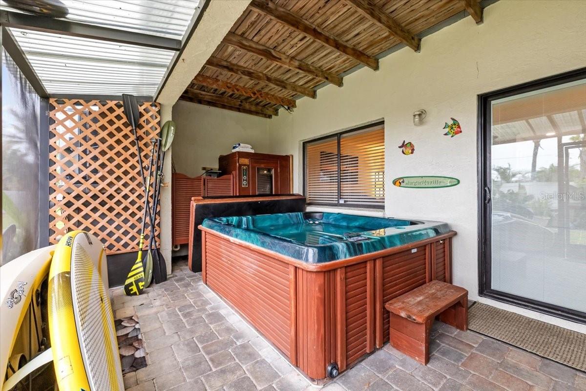 BRING YOUR BOAT! This spacious 3-bedroom, 2-bathroom townhome is located in the desirable Curlew Landings waterfront community, just minutes from the Dunedin Causeway. The home features a ground-floor bonus/flex room that opens to an enclosed porch with a hot tub and sauna, creating a perfect space for relaxation. Enjoy three rear porches and stunning Gulf sunset views from the third-story patio. The home is move-in ready and thoughtfully designed for comfort and versatility. Upon entry, a bright foyer leads to the downstairs bonus room—ideal for guests, a home office, or a movie/media room. The main living level offers an open-concept layout with a spacious kitchen, breakfast nook, dining area, and the primary bedroom with ensuite bathroom, and 2 large closets. The third floor includes two generously sized guest bedrooms, a guest bathroom, and access to a west-facing balcony. Residents of Curlew Landings enjoy access to a heated pool, spa, and tennis courts, along with convenient proximity to the Pinellas Trail, Dunedin Golf Club, and Honeymoon Island State Park. This property comes with a 30 foot, deeded boat slip that can be seen from the unit includes a separate annual fee of $989. The ground floor, 15'x21' bonus room is not included in the square foot calculation as it is not insurable.