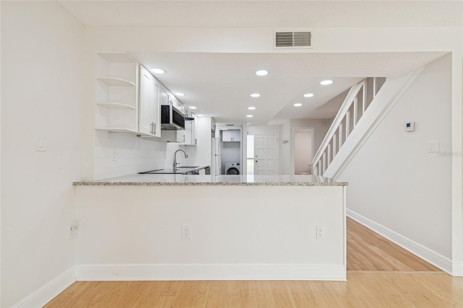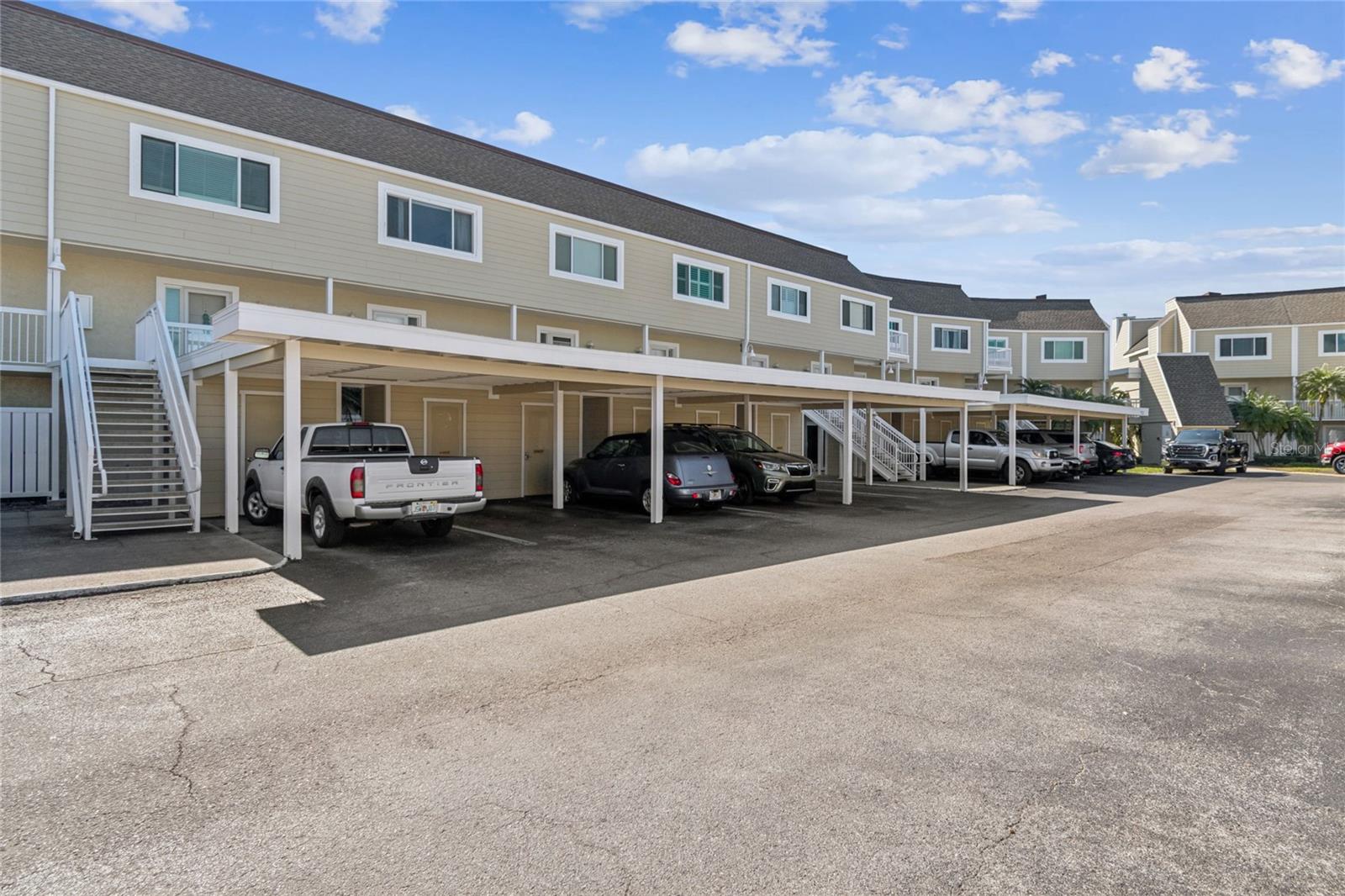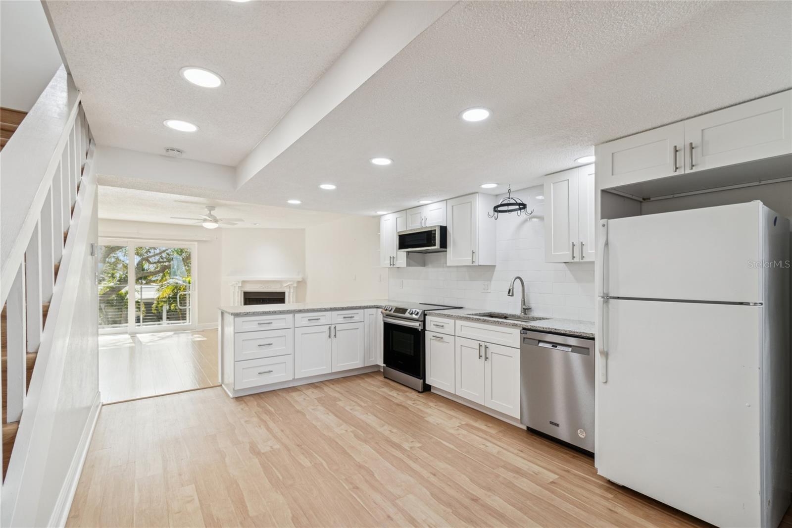Location, Location, Location!!! Your carefree, maintenance free lifestyle awaits with unbeatable waterfront living in fabulous Dunedin… Discover your slice of paradise in this immaculate, move-in ready, second-story condo, accessible via elevator, offering you a spacious 2 bedroom, and 2.5 baths as well as a covered carport space… just under 1,300 sq. ft. of pampered living. Enter through the storm door to the main living area featuring a desirable open concept layout and boasting luxury vinyl flooring. Gorgeous, fully remodeled kitchen flaunts white shaker-style, soft close cabinetry, a lazy-susan cabinet, pot hanger, granite counter, large undermount ss sink, designer tile backsplash, SS dishwasher, Café style ceran top range, built in microwave and refrigerator. Laundry area is located just off the kitchen, and the sellers are generously including the washer and dryer with the sale of the home. Kitchen overlooks to great room that is centered by a cozy wood burning fireplace and looks out through impact sliding glass doors to a fabulously canal view. Take in the serenity of the water on the new balcony with cable railing and decking to first floor! For guests’ convenience the main floor also features a half bath with a posh cultured marble countered single vanity. Both bedrooms are located on the second floor and feature their own ensuite. Ideal split bedroom plan for privacy. The primary bedroom features full wall closet, ceiling fan and fully remodeled ensuite boasting a large single vanity with undermount sink, full walk-in shower with floor to ceiling tile, niche, and glass door. The home offers a true double primary with the second bedroom. It has a gorgeous ensuite bath with a single undermount sink and tub/shower combination with designer tilework. Plenty of storage with upper closets, main floor under the staircase storage, as well as an additional storage closet at the carport. Additional notable updates include water heater (2 yrs old), washer/dryer (2 yrs old), AC 2020, Electrical panel (2022), Impact windows and sliding glass door. This lovely condo is just steps from the refreshing community pool. Condo fee includes grounds and building maintenance, exterior insurance, pool, sewer, water and trash. Pet friendly community! The ultimate Florida lifestyle near sought after downtown Dunedin with its charming vibe and endless opportunities… restaurants, entertainment, breweries, shopping, festivals, Dunedin Golf Club, Pinellas Trail. Near to medical, easy access to airports and of course the famed Gulf beaches are your backyard playground! Your tropical paradise is waiting!