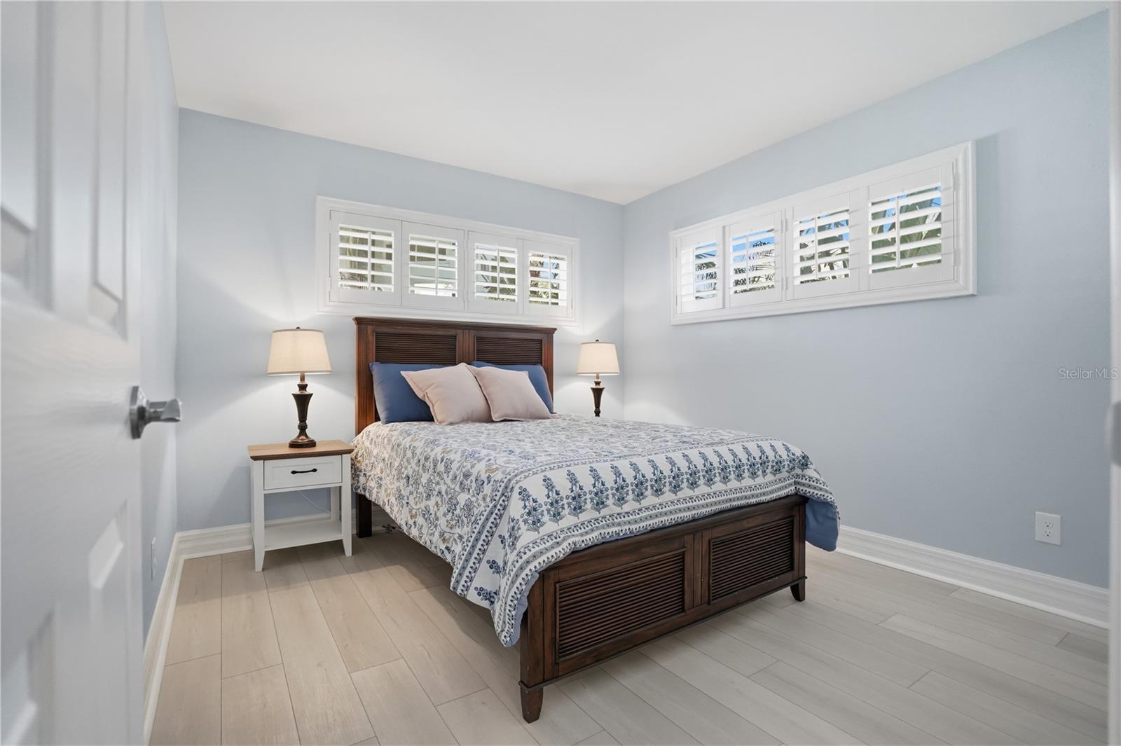 Completely renovated first floor corner unit in the boutique waterfront community of Concord Arms. This coastal ready 2 bed/1 bath condo features a brand new 2025 kitchen with shaker cabinets, quartz countertops, and stainless steel appliances. The bathroom has been fully updated as well. Additional improvements include porcelain tile, luxury vinyl flooring, crown molding, fresh interior paint, and updated windows. Enjoy a spacious screened porch with peaceful views of the pool, garden, and water. Pets are welcome, there are no age restrictions, and rentals are allowed with a 90 day minimum. The monthly HOA fee of $852 covers water, sewer, garbage, basic cable, and exterior maintenance. Concord Arms is a charming 24 unit, two story building ideally located just a bike ride from the Dunedin Causeway, award winning Honeymoon Island and Caladesi Island State Park's, the Dunedin Golf & Country Club, and Historic Downtown Dunedin. This walk friendly coastal city is known for its Scottish heritage, vibrant dining and shopping and a “Bagpipe Culture". Designated as both a Certified Green City and a Trail Town offering 50 mile's of the Pinellas County Trail—perfect for walking, biking, skating, and jogging. Being sold "Furnished".
