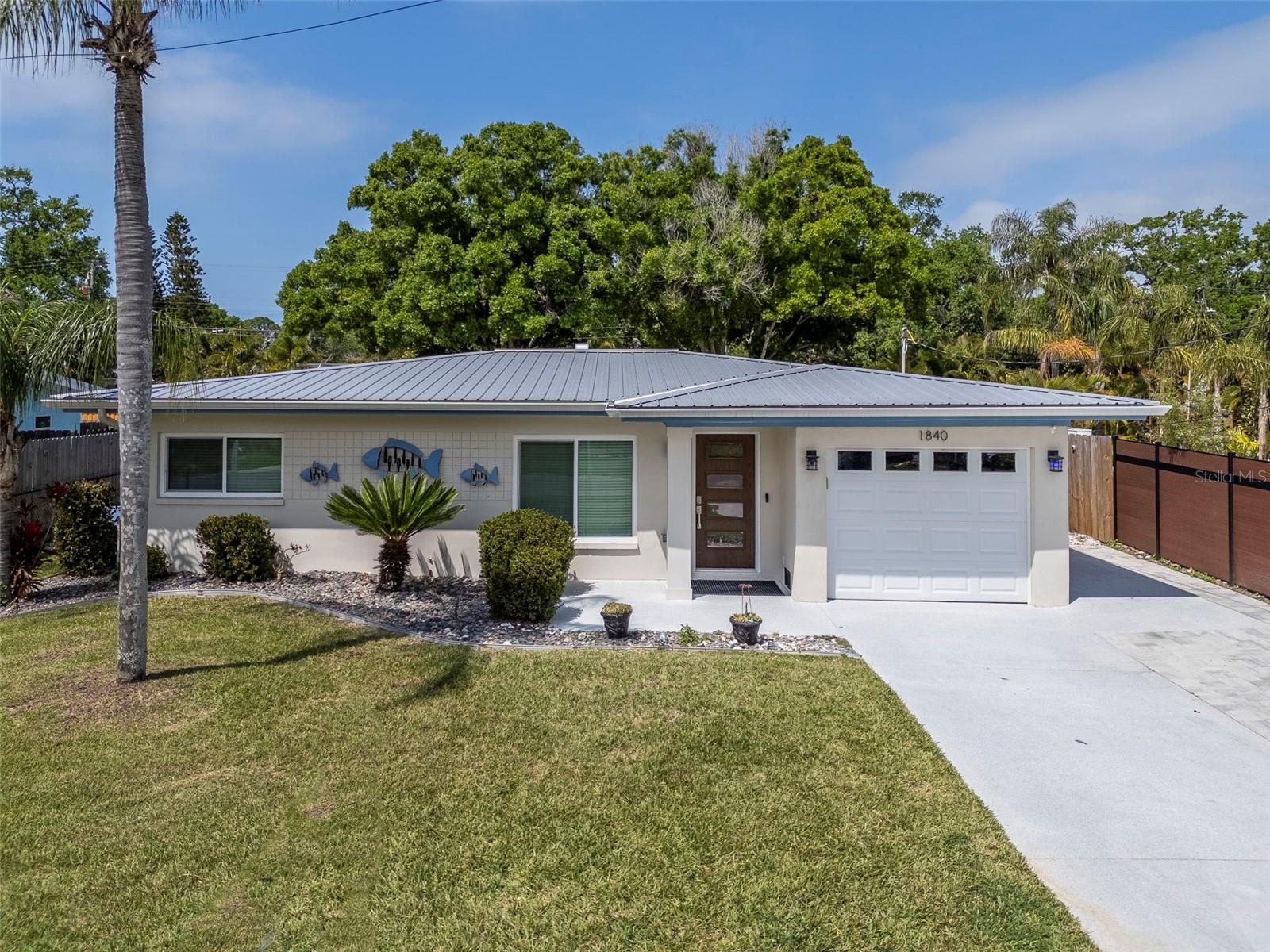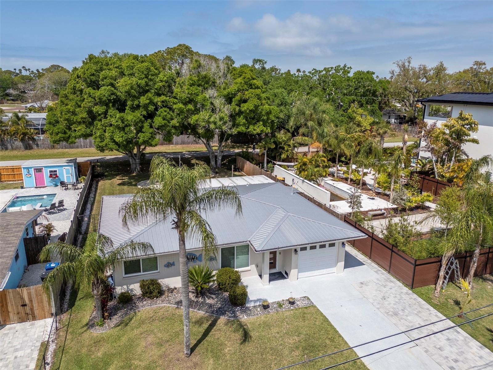 Rare Dunedin opportunity — beautifully updated 3-bedroom, 2-bath, 1-car garage home backing directly to the Pinellas Trail and located within the city’s golf cart zone just 1.5 miles from vibrant Downtown Dunedin. Bike the Pinellas Trail from your backyard, hop in your golf cart for dinner downtown, or enjoy Dunedin’s waterfront parks, breweries, restaurants, and year-round community events just minutes away. The owner has invested significant time and care into thoughtfully updating the home with a focus on quality, durability, and long-term value. The property has been carefully improved with attention to detail. Major upgrades include a newer metal roof, new soffits and gutters, hurricane impact windows installed in 2022, updated electrical, new lighting, freshly painted and both bathrooms completely renovated. The kitchen has been completely refreshed with new cabinetry, quartz countertops, new appliances including a Bosch dishwasher, and updated finishes, creating a bright and functional space for cooking and entertaining. The home also features water-resistant flooring throughout with tile and concrete surfaces for durability and easy maintenance. Additional improvements include replacement of the original Orangeburg plumbing and permitted improvements including the roof and enclosed back porch roof. The AC compressor and electrical panel have been relocated to a higher elevation, providing added protection and peace of mind. Step outside to a fully fenced backyard that backs directly to the Pinellas Trail, creating a perfect space to relax or entertain. The yard features low-maintenance landscaping with rock beds and barriers, a brick paver fire pit area, and double driveway parking in addition to the one-car garage. The driveway and garage surfaces have also been freshly sealed. The spacious backyard offers plenty of room to add a pool in the future if desired. The enclosed back porch adds additional living space and features a mini-split system providing both heating and cooling, allowing the area to be enjoyed year-round. A professionally painted mural on the exterior porch reflects the artistic character and charm of Dunedin, creating a unique and inviting space. Beautiful mature oak trees have been professionally trimmed and are in excellent condition, providing shade and character to the property. With direct trail access and close proximity to Downtown Dunedin, Honeymoon Island, and Caladesi Island, this home offers the perfect blend of outdoor lifestyle, convenience, and modern updates.