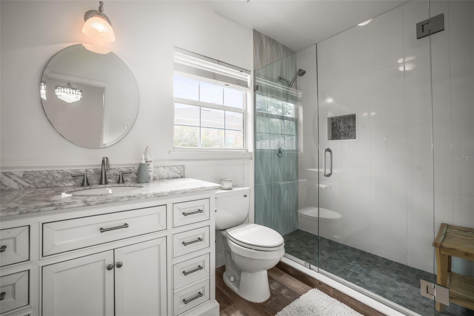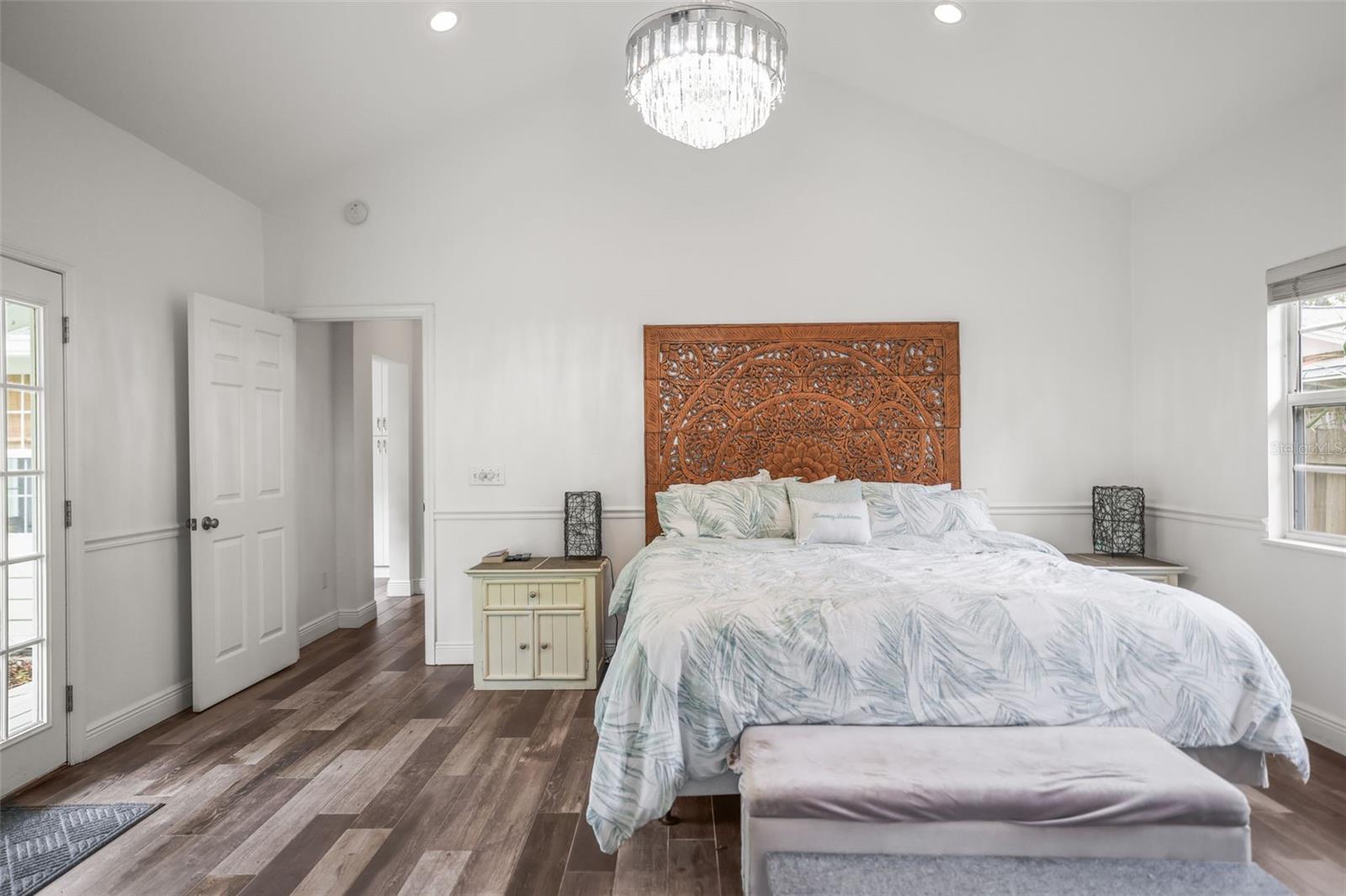 Lovingly cared for and thoughtfully enhanced over the past 30+ years, this enchanting 1940s concrete block residence beautifully blends timeless character with curated modern touches. Sunlight pours effortlessly through every space, creating a warm, inviting flow that instantly makes you feel at home. Step into the great room, where original architectural details tell a story and offer the perfect setting for gathering, entertaining, and everyday living. The front portion of the home features two bedrooms and a stunning retro-chic bathroom full of personality and charm. The heart of the home opens to a spacious eat-in kitchen with stone countertops, a breakfast bar, closet pantry, and French doors that lead to an expansive deck—perfect for hosting under the stars. Beyond, a thoughtfully designed addition offers two additional bedrooms, including a breathtaking primary suite with soaring cathedral ceilings, a walk-in closet, private en-suite, and its own French doors opening to the deck. This space lives beautifully as a private retreat or ideal in-law suite. Out back, your own private escape awaits. A fully insulated, powered she-shed—perfect as a home office, studio, or creative hideaway—sits within a lush, storybook backyard. Towering oak trees provide shade while birdsong fills the air, evoking the charm of old Florida living. An outdoor shower, utility sink, and kayak storage add to the effortless coastal lifestyle. Stroll down the historic brick streets and immerse yourself in everything Dunedin has to offer—award-winning restaurants, local breweries, art galleries, lively festivals, and breathtaking sunsets along the marina. Hop on your bike and be on the Pinellas Trail in minutes, or take a short ride to some of Florida’s most beautiful beaches and state parks. This is the kind of home that feels rare… the kind you don’t just visit, but experience. Welcome to your own piece of magical Dunedin living.