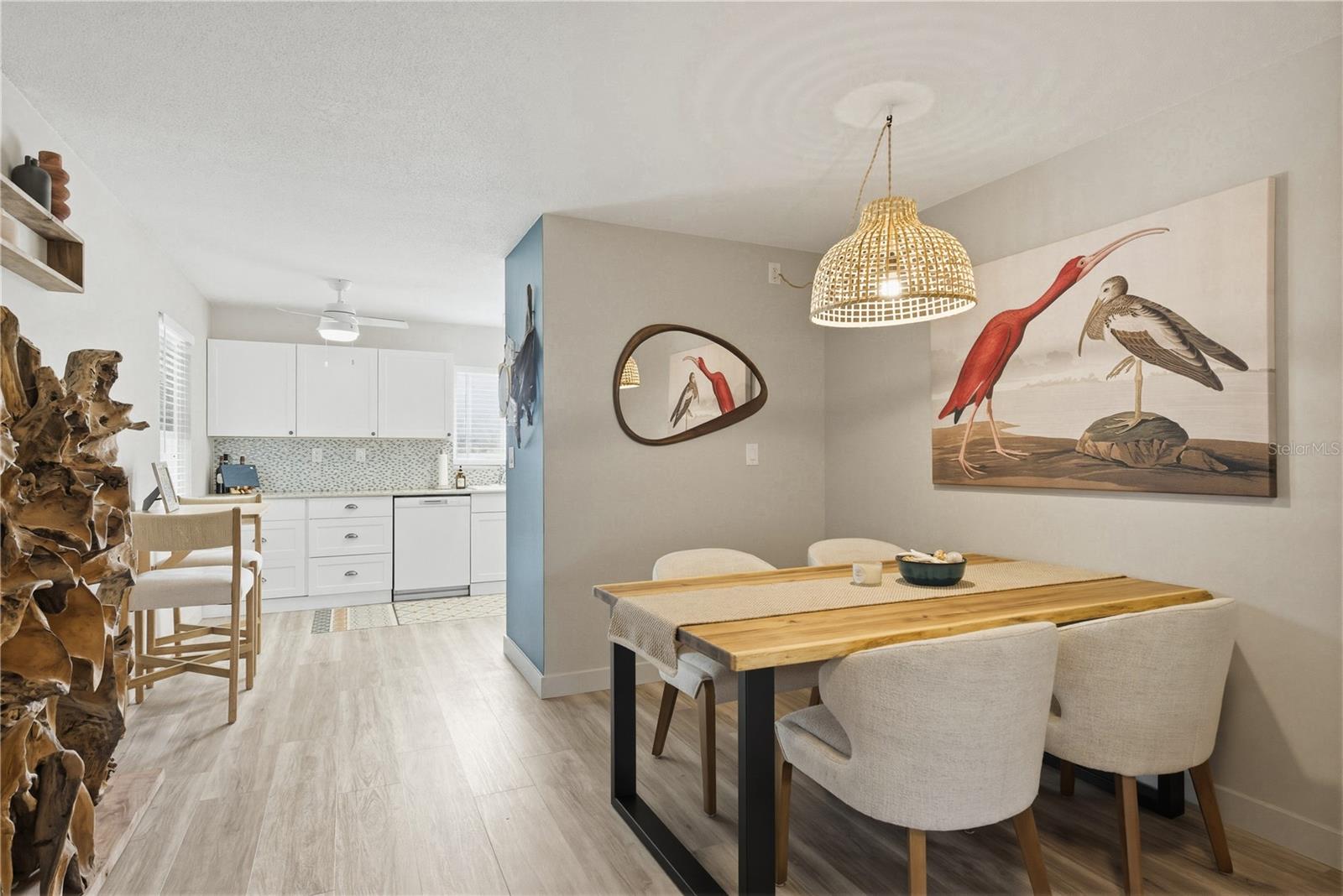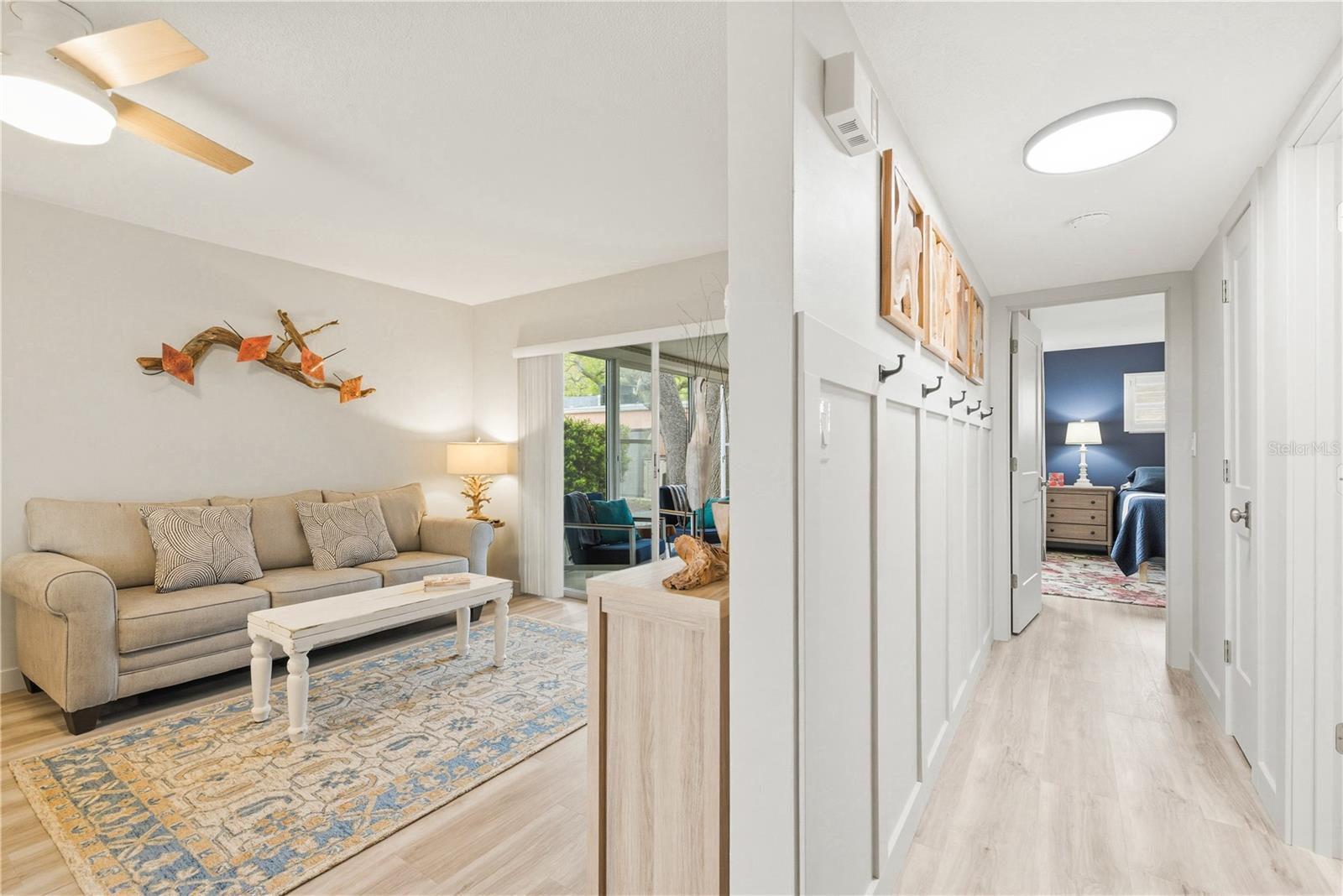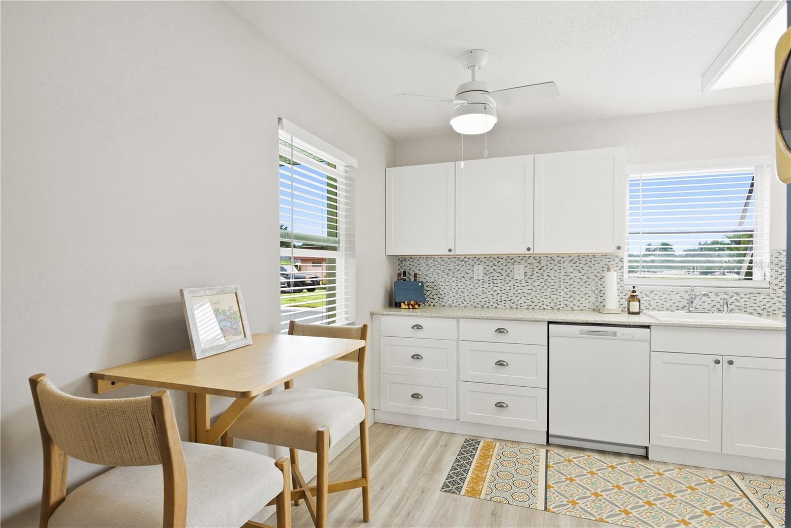 Welcome to easy, maintenance free living in the desirable 55+ community of Sky Loch Villas, just minutes from the charm, waterfront parks, and vibrant dining scene of Downtown Dunedin. This beautifully updated 1-bedroom, 1-bath villa offers a seamless blend of comfort, style, and functionality perfect for enjoying the Florida lifestyle. From the moment you arrive, you’ll appreciate the inviting setting and refreshed landscaping that enhance the home’s curb appeal. Inside, the thoughtfully designed layout features luxury vinyl plank flooring throughout, all new interior paint, and updated doors and millwork that create a cohesive, modern look. The living and dining areas flow effortlessly into the updated kitchen with solid surface countertops, offering both style and practicality for everyday living. The spacious Florida room adds an additional square feet of versatile living space (not included in the heated square footage), complete with a custom accent wall and electric fireplace an inviting space to relax or entertain year-round. The bathroom has been tastefully updated with a dual-sink vanity and contemporary finishes, while additional improvements such as a new garbage disposal, new closet doors, updated French drain, and a dedicated golf cart pad add both convenience and value. A brand new roof (2025) provides peace of mind for years to come. Residents of Sky Loch Villas enjoy a quiet, well-maintained community with a low monthly HOA fee of $330, which includes cable, internet, water, and trash making for truly effortless living. Ideally located near the Intracoastal Waterway, Honeymoon Island State Park, the Pinellas Trail, and some of the area’s best beaches, this home offers the perfect balance of relaxation and accessibility. Whether you're looking for a seasonal retreat or a full-time residence, this move-in ready villa is an exceptional opportunity to enjoy everything Dunedin has.
