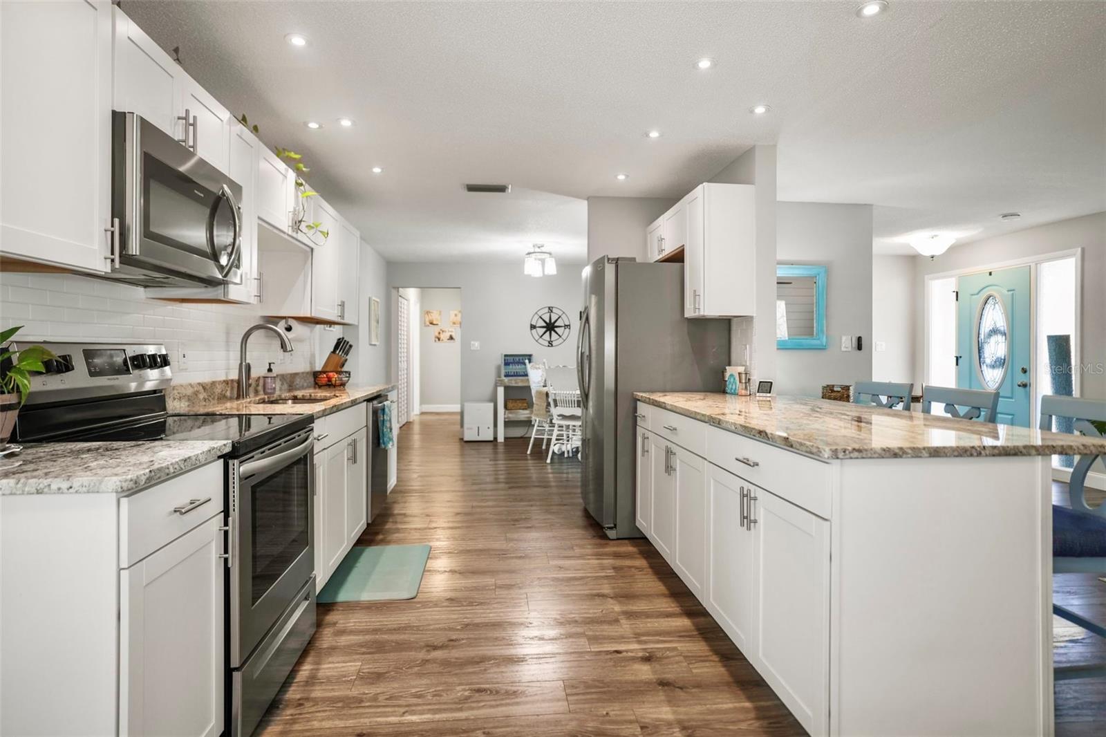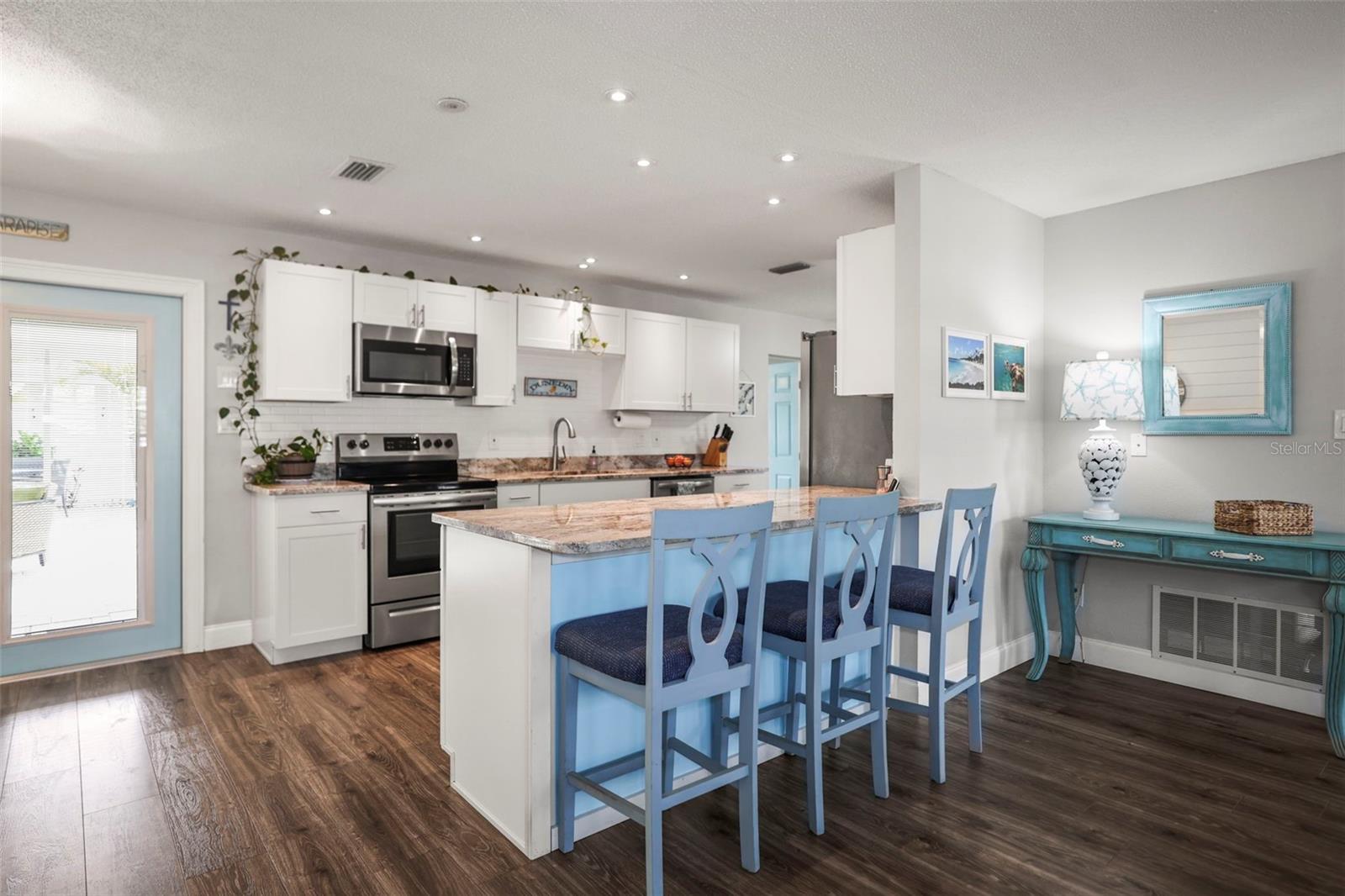 Step into your own private Dunedin oasis—where indoor comfort meets resort-style outdoor living. From the moment you arrive, this home welcomes you with its bright, open layout and effortless flow to an incredible backyard retreat. This 3-bedroom, 2 full bath home with a 2-car garage and indoor laundry room offers the perfect blend of functionality and style—and it’s located in a non-flood zone, giving you added peace of mind. The spacious open floor plan is filled with natural light and centered around a beautifully updated kitchen featuring granite countertops, stainless steel appliances, and modern cabinetry—perfect for entertaining or everyday living. Out back is where this home truly shines. Enjoy a brand-new pool, expansive covered lanai, and fully fenced yard designed for relaxing, hosting, and embracing Florida living year-round. The outdoor space feels like a true extension of the home. Curb appeal is enhanced with Bahama-style hurricane shutters (2023), adding both coastal charm and storm protection. Additional updates include a new A/C (2024), 2018 shingle roof, double-pane windows, plantation shutters, updated bathrooms, new lighting and ceiling fans, interior doors, custom front door, added attic insulation, newer flooring, updated electrical panel, wind-rated garage door, garage door opener, and a 66-gallon solar-assisted water heater. The oversized garage offers a workbench and plenty of storage, and the home also includes a preventative subterranean termite warranty. Located on a quiet street just minutes from Downtown Dunedin, where you can hop on your golf cart to enjoy top-rated restaurants, breweries, festivals, and waterfront sunsets. Walking distance to the Pinellas trail and just a short drive or bike ride to world-famous beaches and parks. This is the Dunedin lifestyle you’ve been waiting for—move-in ready and made for living.
