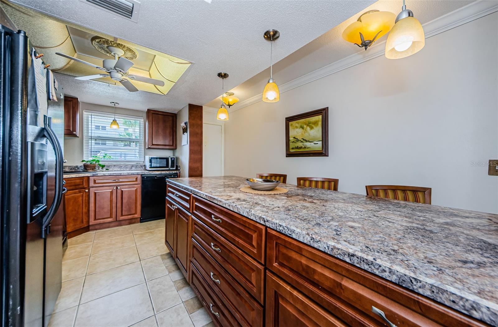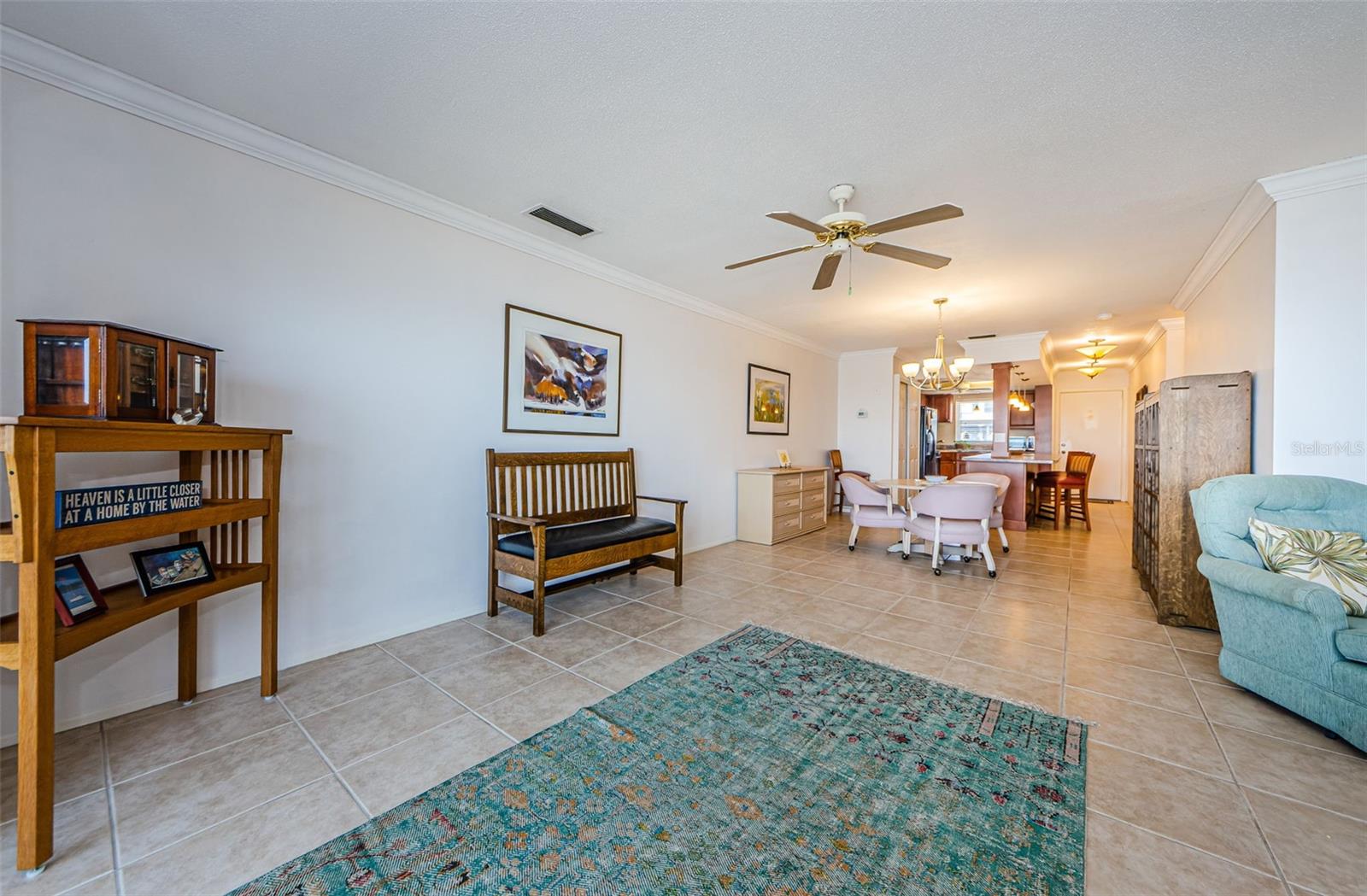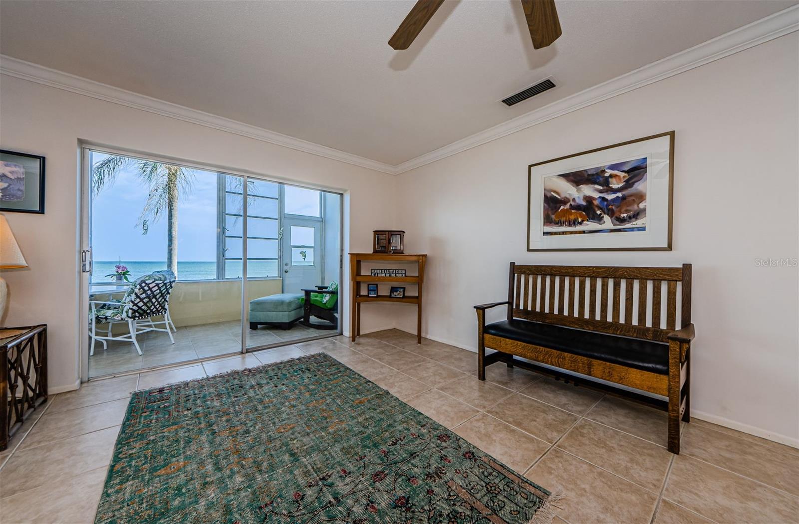 ***PRICE ADJUSTMENT***SPECTACULAR WATER VIEWS from this large 1st floor 1 bed 1 bath FURNISHED home! Enter this unit and the 1st thing you will see is the water! The open updated kitchen has beautiful soft close cabinets. L shaped living room has potential to portion off for 2nd bedroom or study. Electric panel installed 2023. Your next step is into the bright sunroom which opens directly to the outside. There you can watch the dolphins as they swim by, or just sit and enjoy peace and quiet with the background music of waves lapping against the seawall. Breathtaking sunsets night after night are part of the island life here. Enjoy the beach and collect shells at Honeymoon Island State Park. Take a dip in the warm, heated pool every day of the year where the spectacular views will make you forget about the rest of the world, even for just a little bit! Across the street is the Pinellas Bike Trail which extends for miles and miles. Head over to Honeymoon Island State Park and explore the beach shoreline; navigate the woods and admire the flora and the wildlife, including ospreys and eagles. Browse shops and cafes in quaint downtown Dunedin, 2 miles away. All this and more awaits you. Kitchen and living areas are tiled in a neutral tone. Bedroom has newer carpeting. Small vanity area separates bedroom from walk-in closet. Updated bathroom has tub/shower. Gas appliances. (Gas is included in HOA) Ceiling fans throughout; Private covered parking space included directly across from your door; Many community activities and gatherings for your participation. Tennis, pickleball, shuffleboard, horseshoes, bocce; Heated pool comfortable year-around; Private fishing pier, car wash area, and air pump. gas grills, fire pit, picnic area; Dunoon Building is scheduled to add new roof. Assessment has been paid by seller. Dunoon has completed its Milestone Inspection Report and has passed without issue. 55+ no-pet community. Fees include water, cable, 2 DVRs and internet, garbage and recycling, building maintenance and insurance, landscaping and use of all community facilities; Amenities include: Clubhouse with fitness center, sauna and steam rooms, billiards, card room all with gorgeous views of the Gulf of Mexico and/or St. Joseph Sound and the mainland beyond. Located on Dunedin Causeway and easy access to Pinellas Trail – bicycle for miles safely and unimpeded; Commercial kayak/surfboard and sailboat rentals available right on the causeway; Honeymoon Island State Park and Caladesi Island Ferry (ranked one of the most beautiful beaches in the U.S), are steps away from your Island Paradise. Close by are restaurants, supermarkets, banks, various shops and boutiques, salons, and medical facilities. DON'T LET THIS ONE GET AWAY...This idyllic spot will make you very excited to call it HOME!!! Furnished with exception of Large Vizio TV, Sea Gull painting and green area rug in LR, 2 wooden shelves in Dr and wood bench.
