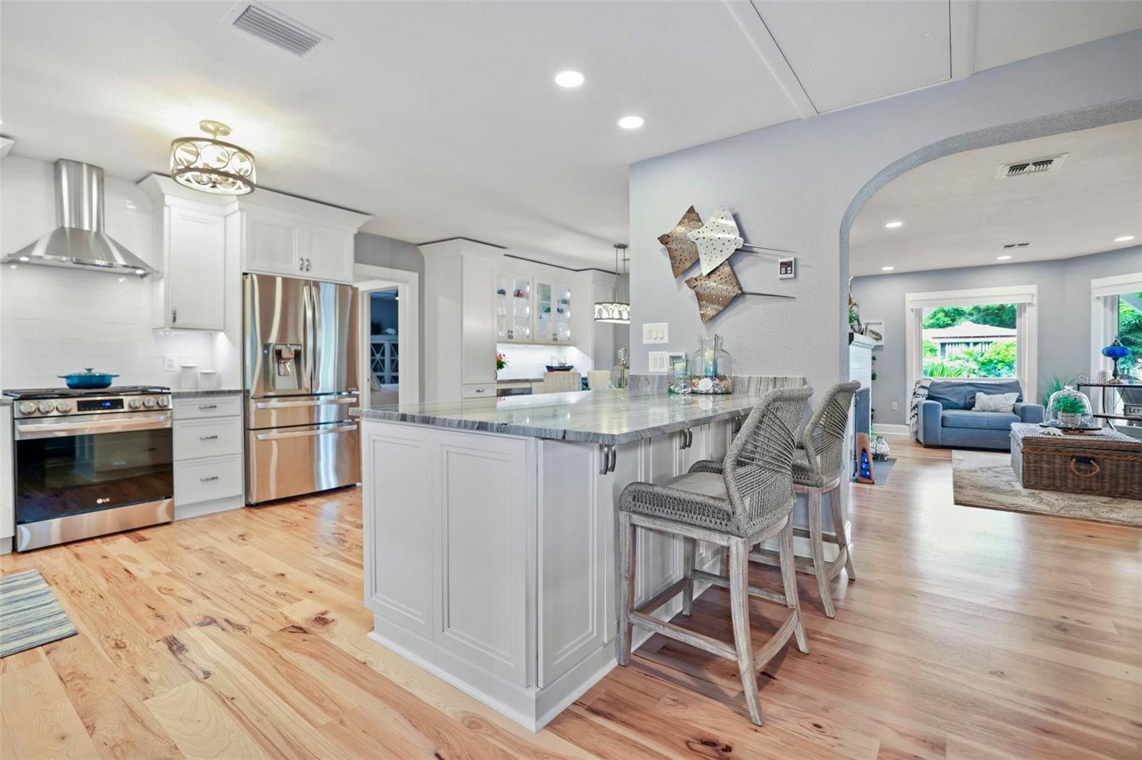 Experience the ultimate in coastal luxury at 201 Florida Ave., where every detail has been curated for those who seek the best in Dunedin living. From the moment you arrive, you'll be captivated by the stunning water views and the meticulously landscaped surroundings that set the tone for this exceptional home. With a striking metal roof and an unbeatable front-row seat to breathtaking sunsets, this residence exudes elegance and sophistication. Also this home has a BRAND NEW A/C system! Installed in September 2024!! Step inside this light-filled 3-bedroom, 2-bath haven, where natural light pours through expansive windows and glass doors, seamlessly blending indoor and outdoor living with beautiful plantation shutters complimenting the space. The open-concept design features neutral tones and rich wood floors, creating a warm and inviting atmosphere that’s both modern and timeless. The heart of the home, the kitchen, is a chef’s dream—completely remodeled with sleek white shaker cabinets, granite countertops, high-end stainless steel appliances, and a chic breakfast bar perfect for casual dining. Retreat to the luxurious primary suite, a true sanctuary with its vaulted wood ceilings and spa-like ensuite bathroom, offering a tranquil escape from the everyday. The guest bedrooms are equally inviting, adjacent to an updated hall bath with a walk-in shower that overlooks a private interior courtyard. Whether you’re entertaining or unwinding, you’ll find endless options in this home’s multiple outdoor spaces. Relax on the charming front porch, enjoy the screened-in patio, or soak in the new hot tub on the serene back patio. And with an enormous attic providing additional storage, every need is met with style and convenience. Located just a block from the water and a short golf cart ride from all that Dunedin has to offer—sparkling beaches, vibrant shopping and dining, downtown events, and more—this home is not just a place to live, but a gateway to the ultimate Florida lifestyle.