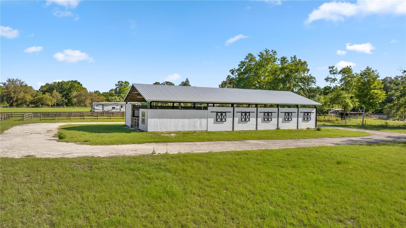 LESS THAN 20 MINUTES FROM THE WORLD EQUESTRIAN CENTER AND HITS. Welcome to the Horse Capital of the World! It doesn't get much better than this! Quiet road, large country properties, and quiet living. Exceptional 10-Acre Horse Property in Florida – Turnkey Equestrian Dream! Welcome to your slice of equestrian paradise! This beautifully developed 10-acre horse property is perfectly set up for serious horse lovers, trainers, or anyone seeking a peaceful country lifestyle with top-tier amenities. At the heart of the property sits a brand new 12-stall center aisle barn, thoughtfully designed with 12’ x 12’ stalls, each equipped with lighting and individual irrigation. The 16-foot-wide center aisle allows for easy movement, while the spacious 12’ x 24’ tack room offers ample storage for all your gear. The barn is fully powered with electric throughout, making daily routines efficient and effortless. Surrounding the barn are six irrigated 40’ x 90’ paddocks, perfect for turnout or individual grazing. Behind the barn, you’ll find a large 100’ x 200’ irrigated paddock, ideal for training, riding, or group turnout. The barn is encircled by a wide limestone driveway, designed with trailers in mind for smooth and easy access. Thinking about building your dream home? The front field is prepped and ready for development, zoned A1 to allow site-built or manufactured homes. While you build, enjoy living on-site with 30 & 50 amp RV hookups! This property also includes a powerful 3 HP well with two 119-gallon holding tanks, ensuring ample water supply for horses, irrigation, and daily needs. Underground electric with 200-amp service provides reliable and clean power across the property. Access is convenient and secure, with a paved entrance leading to a 16’ gate, followed by a limestone drive and a second 16’ gate offering added privacy and functionality. With its lush pastures, thoughtful layout, and stunning surroundings, this is a one-of-a-kind piece of land is made for horses and the enthusiasts who love them.