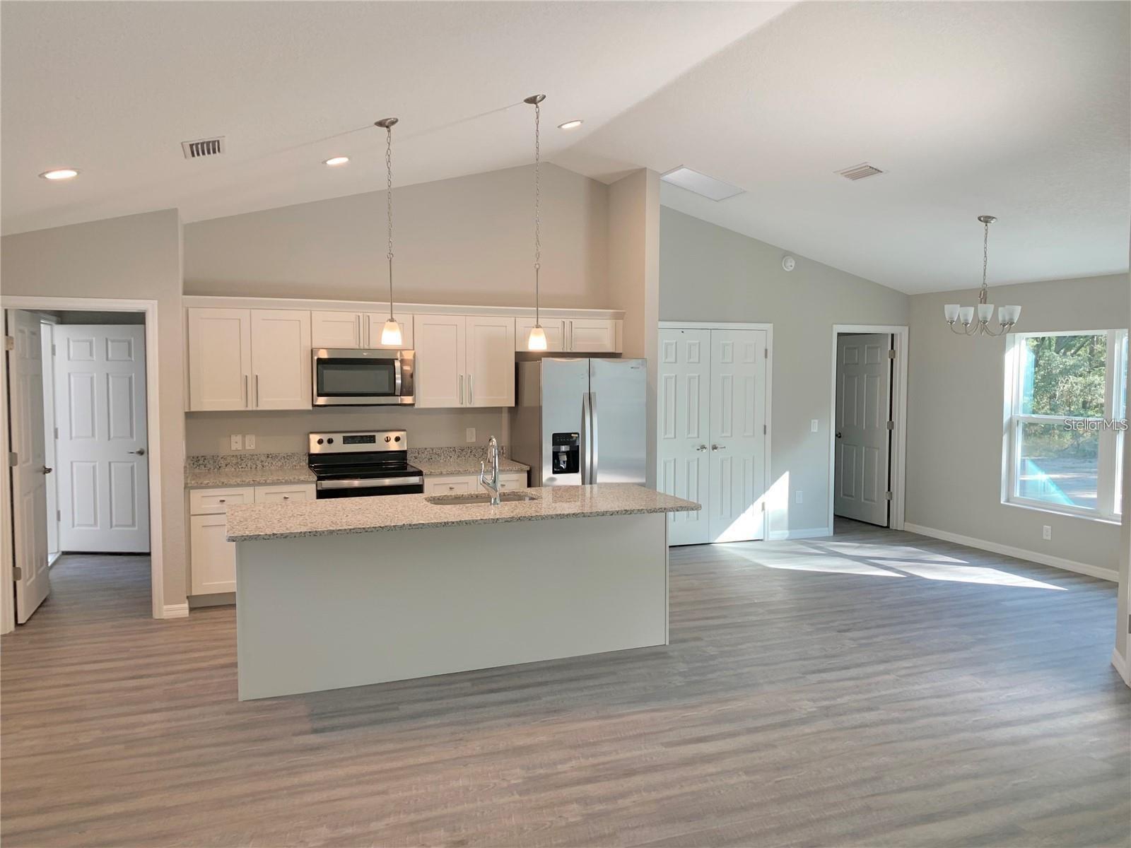 "NEW BUILD" in RAINBOW ACRES! This popular 2024 "Parker" Alamo model sits on an oversized lot (.95 acres) and features three bedrooms / two bathrooms PLUS A DEN, and an open concept, split floor-plan. Light and bright throughout, the interior is finished with stainless steel appliances, solid stone countertops in the kitchen/bathrooms, and luxury vinyl flooring throughout. Located just a few short minutes from the beautiful Rainbow Springs, where you can enjoy fishing, boating, camping and so much more. Home is near completion. This is the one of the only Parker models currently available for quick occupancy. Floor-plan, interior and exterior colors, finishes, and garage orientation may vary for actual home. Information is deemed correct, but no guarantee made- dimension listed are approximate.
