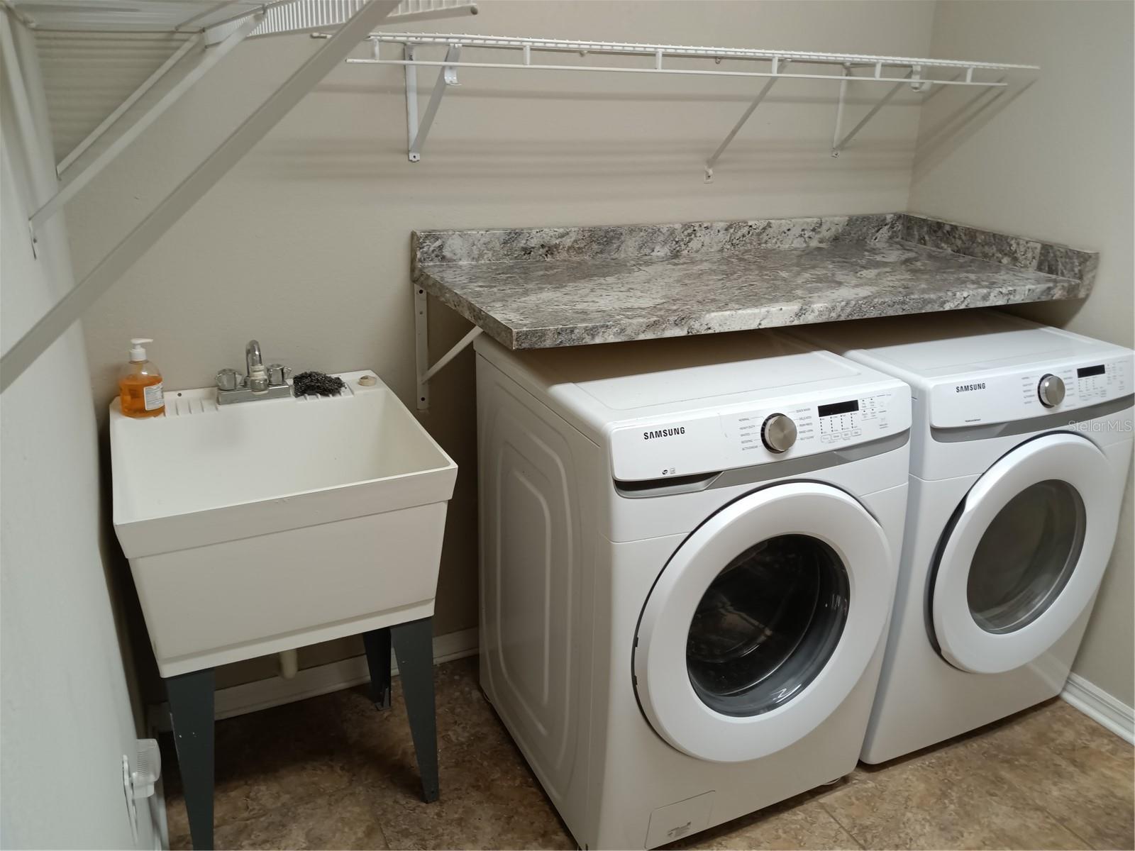 Large 2 bedroom 2 bath home. Located in the very desirable 55+ community of Spruce Creek Preserve. This home sits on a spacious corner lot, with newer landscaping with rocks and grass. The Air Conditioning was replaced in 2020 and the roof was replaced in 2021. This homes exterior has recently been repainted and the kitchen has new appliances also, to include new washer and dryer in the laundry room. The bathrooms have vinyl tile floors with new light fixtures. The master bath also has new shower doors as well as new toilet. The main rooms have laminate flooring. This house stands alone with decorative drive and sidewalks to the front door and the rear screen room.