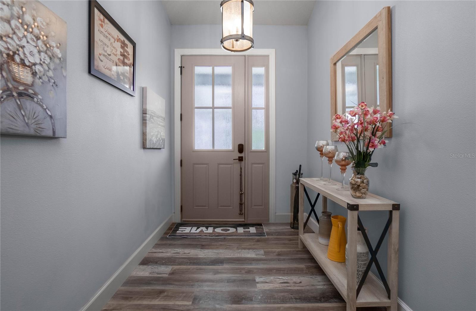Don't miss this opportunity! Located in the gated community of River Oaks East on a 1.14 acre corner lot, this 3/2/2, 2068 Sq Ft (3889 Sq. Ft. Total) Smart Home completed in June 2023 offers a blend of modern amenities and rustic charm. Connected via breezeway is room for your RV, boat and all your toys with a 45' X 20' RV garage with 30 and 50 amp surge protected service. The low annual HOA fee of $600, includes a community dock on the Withlacoochee River within walking distance. The interior upgrades include features like luxury vinyl plank flooring, vaulted ceilings, crown molding, 5-inch baseboards, upgraded ceiling fans, Antique Brass fixtures, dimmer switches throughout and custom, remote control window coverings over the double pane windows. Gourmet kitchen with granite countertops, a 13 Ft. island, stone backsplash, black stainless Wi-Fi appliances. The attention to detail continues with oversized closets, a tray ceiling in the Primary Suite, and granite counters, bowl pump sinks, custom tiled showers, and a free-standing tub. The home includes a water filtration system, 4 ½ Ton HVAC unit, 50 gallon water heater, termite bond, covered screened rear porch, rain gutters, and sprinkler system.