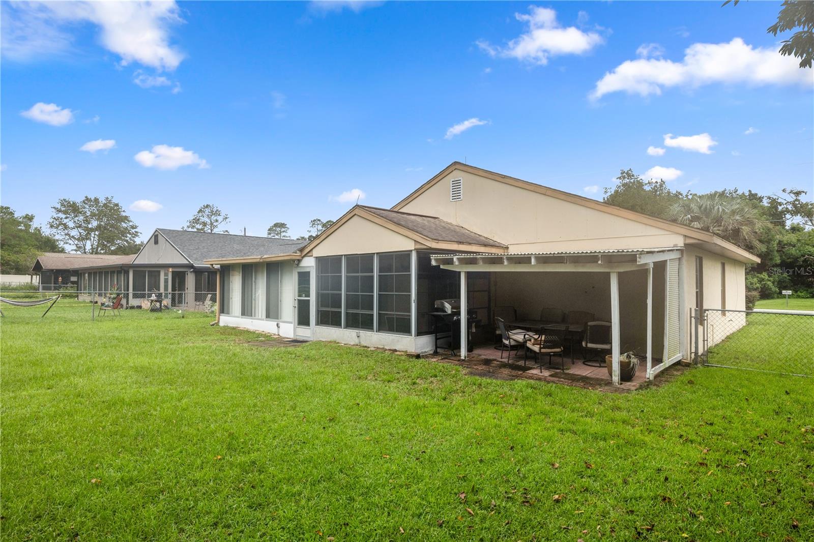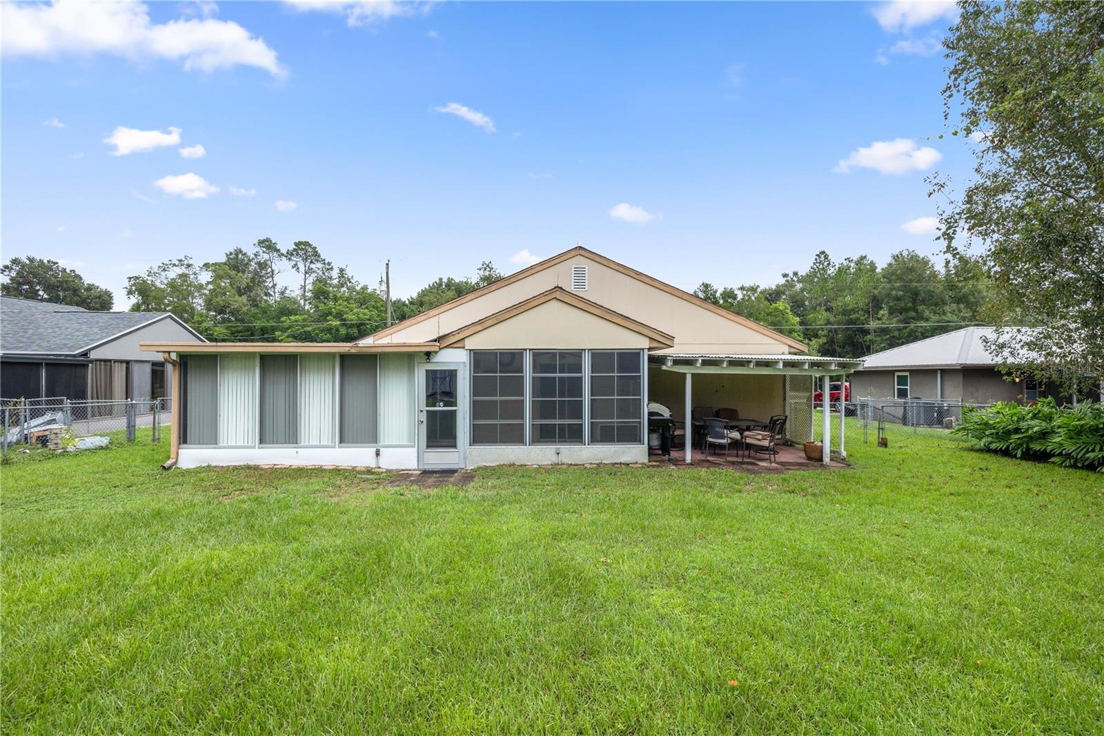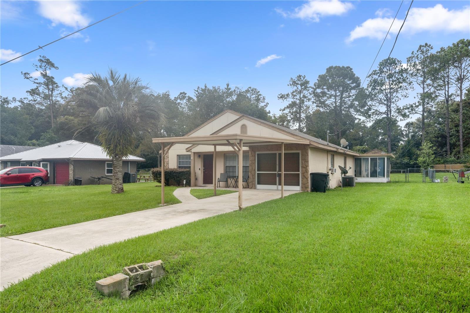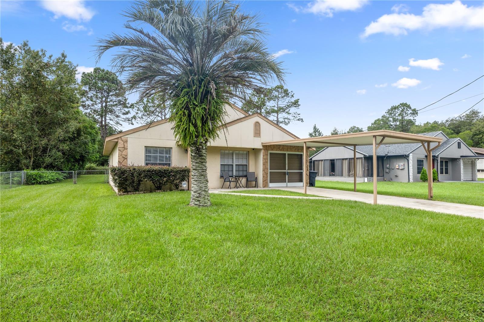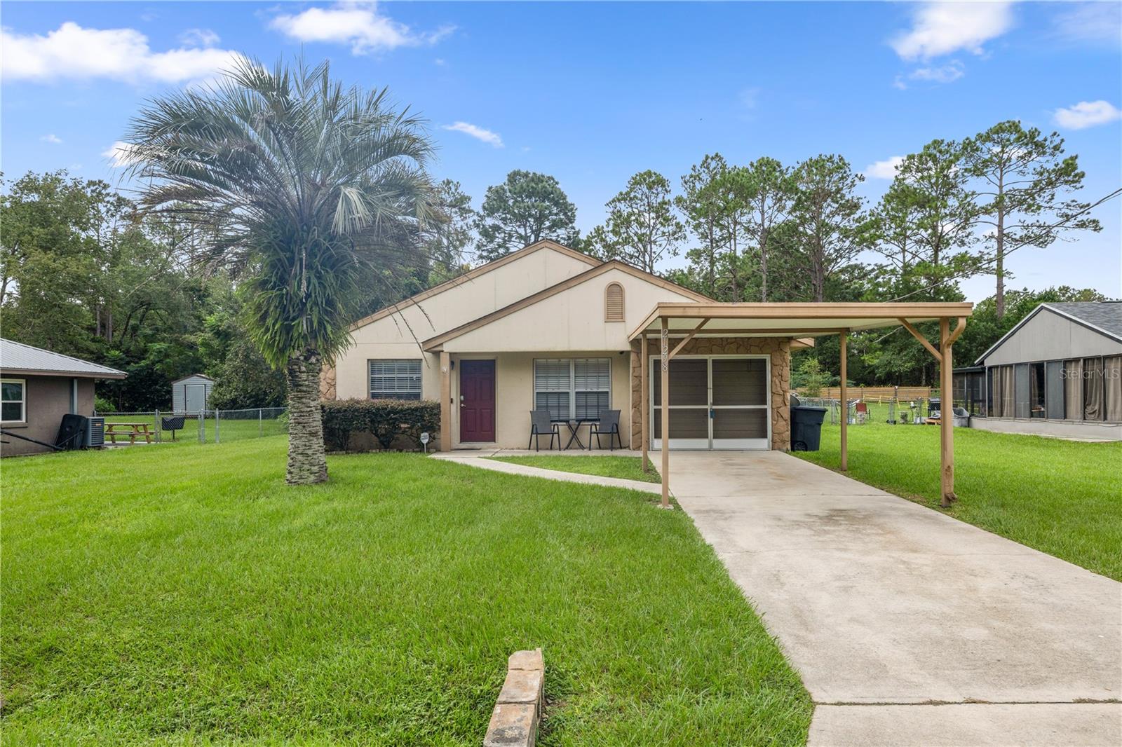 Charming and cozy, this 3 bedroom, 2 bath, with flex room cottage style home in Rainbow Lake Estates is perfect for those who enjoy any outdoor activities. Located less than 5 miles for the stunning Rainbow River, it offers easy access for kayaking, fishing, and bike paths, while also being close to shopping and conveniences. Currently operating as a successful Airbnb, this home is ideal as a vacation retreat, retirement haven, or a family residence. This move-in-ready home features an open floor plan with vaulted ceilings, creating a spacious and airy feel. The fully fenced backyard includes a large storage shed, perfect for outdoor gear, and the enclosed lanai and open covered patio provide wonderful spaces for relaxing or entertaining. Two of the bedrooms offer direct access to the enclosed lanai for seamless indoor-outdoor flow. The interior boasts beautiful modern tile in the main living areas and wet spaces, while plush carpet provides comfort in the bedrooms. The kitchen is a highlight with its updated appliances, elegant white cabinetry, and stylish backsplash. The flex space is currently being used as a bedroom, but could easily be used as a game room, playroom, or easily converted back to a garage. Offered fully turnkey, this home is ready for its next owner to enjoy!