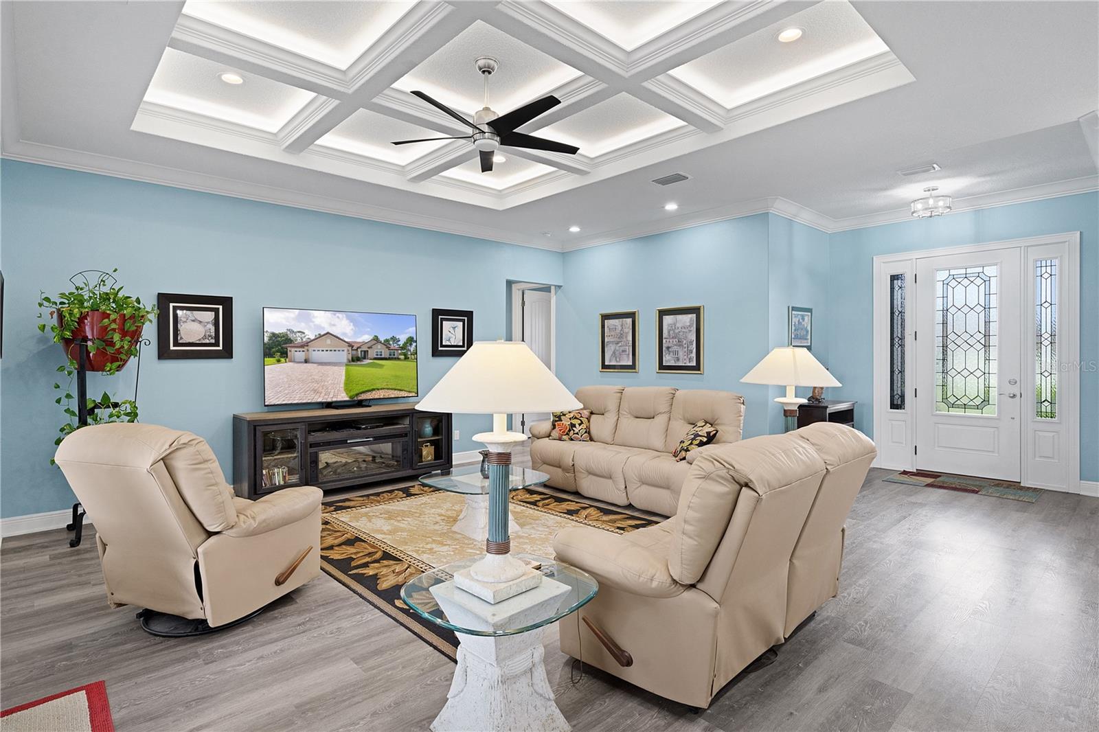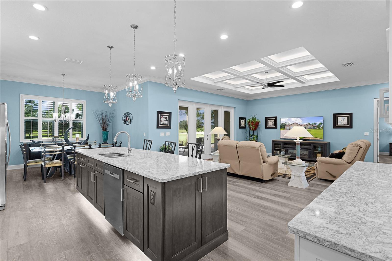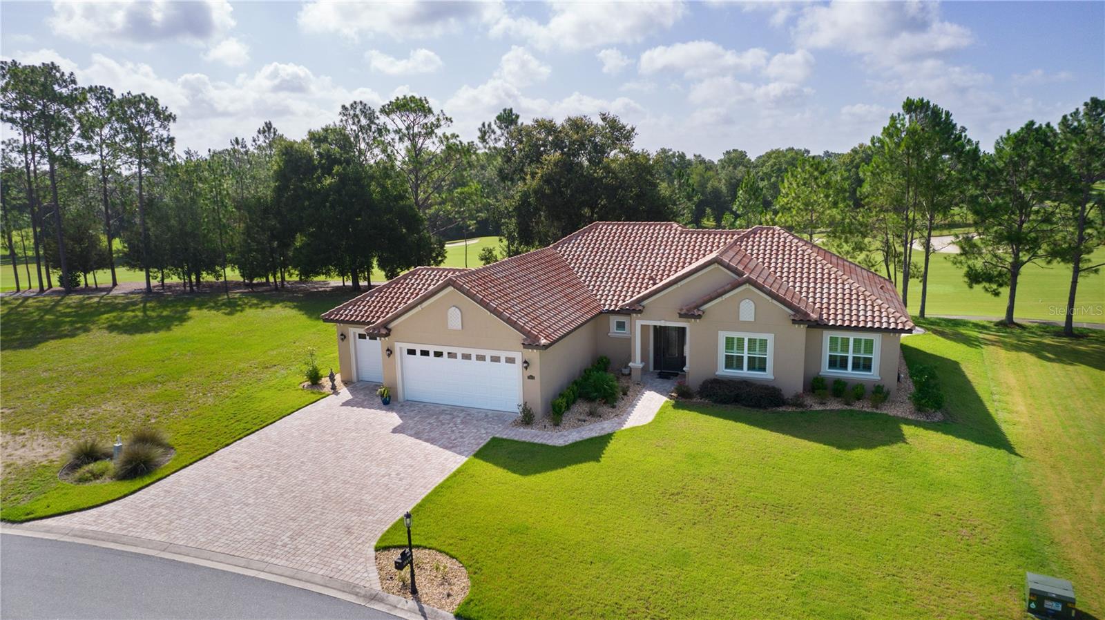 **GOLF FRONTAGE CUSTOM HOME** Welcome to the Gated Community of Juliette Falls. The Stunning 2023 Designer “Deluxe Ruby” home, built by Crouch Homes LLC is located on the 1st FAIRWAY. This beautiful home features 4 bedrooms and 2.5 bathrooms, 3-Car Garage spanning 2,392 square feet, Golfer Enthusiast will want this VIEW OF THE GOLF COURSE, enjoy a cup of coffee or a glass of wine while enjoying the golfers at the first green. The 15x18 COVERED LANAI and the Designer PAVER PATIO full length of rear of home are great places to entertain. Upon entering the home, you will be captivated by the airy OPEN FLOORPLAN, PLANTATION SHUTTERS, highlighted by a spacious 20' x 22' Living room adorned with impressive 10-foot COFFERED CEILINGS featuring track Lighting. The Kitchen boasts custom Cabinetry with Soft-Close doors, Under-Cabinet Lighting with under-Crown Molding, QUARTZ Countertops, a stylish TILE Backsplash, STAINLESS STEEL Appliances, a BUILT IN OVEN and Microwave, a cozy coffee bar, and a well-appointed dining room. The Primary Suite, measuring 19' x 15', offers TRAY CEILING, DUAL WALK IN CLOSETS, En-Suite Bathroom with DUAL VANITIES with under-cabinet lighting, GRANTITE COUNTER, a luxurious TILED WALK-IN SHOWER. and Private Water Closet. The Guest bedrooms provide generous proportions and sufficient closet space. The Guest Bathroom also includes Custom Cabinets with under-cabinet lighting, GRANITE Countertops, and TILED WALK-ON SHOWER. For added convenience, the Laundry Room measures 10' x 14' and includes a built-in sink and extra counter space for laundry organization and added PANTRY STORAGE. The half bathroom features Custom Cabinetry with under-cabinet lighting and GRANITE counters. No home would be complete without a PAVER DRIVEWAY with a 3-CAR GARAGE, which showcases beautiful EPOXY Floors, ELECTRIC CAR CHARGER and ample space for vehicles and recreational equipment. The Attic is equipped with Pull-Down Stairs and is fully decked for additional storage. This home is loaded with upgrades, including LAMINATE FLOORING throughout the main living areas, 6" CROWN MOLDING, an upgraded front door, recessed LED Lighting, and 8-foot tall Interior Doors. The local Pro-Shop has golf apparel, golf clubs, golf balls, shoes, bags, and golf-themed gift items. Juliette Falls Bar & Restaurant has wide variety of delicious options daily and 1st Friday Evenings. Stop at the Driving Range and visit the Blue Bar, also known as the "19th hole" after your round and cool off with for an ice cold beer! Juliette Falls is Located just 15 miles from Ocala and the renowned World Equestrian Center, you can discover the charm of Dunnellon—a town rich in history, culture, and natural beauty. Experience the breathtaking scenery of Rainbow Springs State Park, where you can float down the world-famous Rainbow River. Golfer Enthusiast Dream Location.