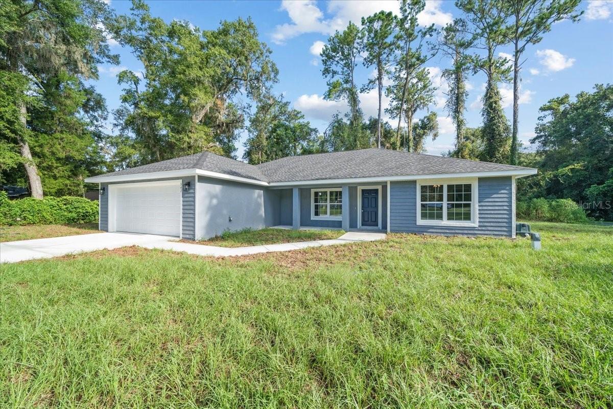 Introducing an exquisite newly constructed three-bedroom, two-bath home. This residence is designed to impress, featuring cathedral ceilings in the living room that enhance the sense of space and openness. The seamless open floor plan connects to a beautiful kitchen, complete with a large island, premium granite countertops, and stainless steel appliances. The home has LVP flooring throughout, ensuring both elegance and durability. Additional conveniences include an indoor laundry room and an 8x16 covered lanai, great for hosting gatherings or enjoying peaceful moments outdoors. The master suite is a sanctuary of luxury, offering a tray ceiling, a generously sized walk-in closet, and a master bath equipped with double sinks and a walk-in shower. Every element of this home has been meticulously crafted to provide unparalleled comfort, style, and functionality. Seize the opportunity to own this exceptional property. Located in Citrus Springs on a corner lot. Short drive to many local waterways and Crystal River. Your dream home awaits.