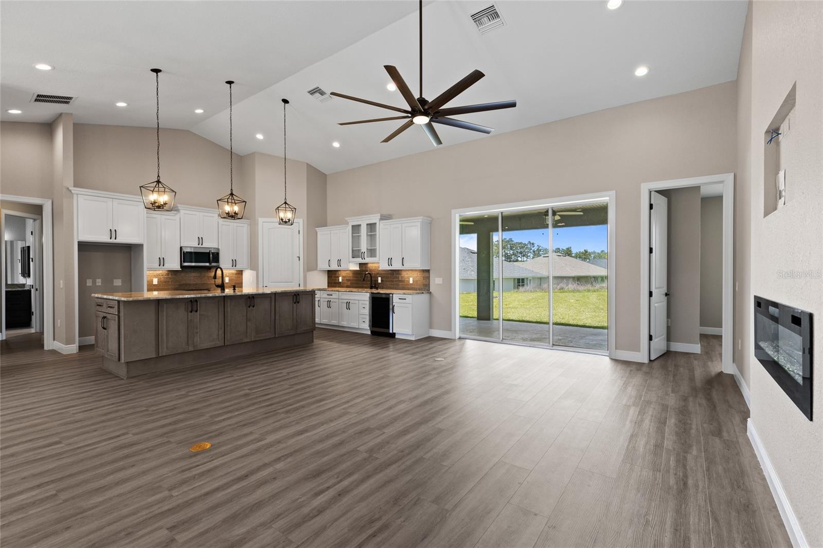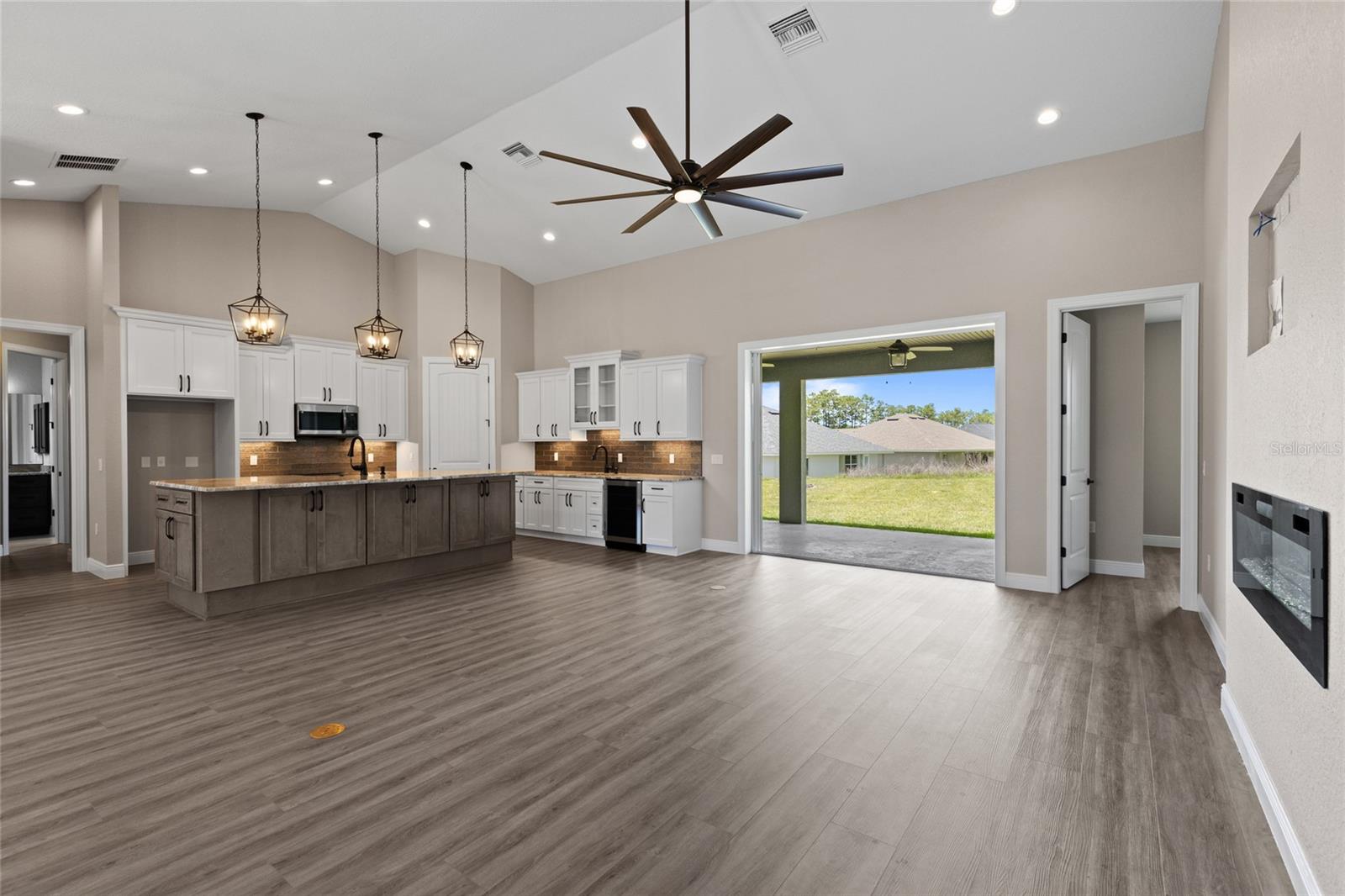 Welcome to a gorgeous custom built 4/3 home in Juliette Falls - a gated championship golf course community voted The Best of Florida Golf courses in 2025! 3.9% Owner financing available*!! Step through beautiful rain-glass double entry doors into a massive common area with soaring vaulted ceilings, LVP flooring throughout, a modern linear fireplace, and a three panel pocket sliding door. The upgraded chef’s kitchen features custom wood cabinetry, a walk in pantry, an huge elevated island with surround storage , and a full wet bar with beverage fridge. The split floor plan ensures privacy in the primary wing which boasts a spa like bathroom with two vanities, a full tile shower with two shower systems, two walk in closets, and a king sized bedroom with raised ceilings and a door leading to the covered lanai. Across the home, you’ll find 3 additional bedrooms, all with adjoining full bathrooms and step-in tile showers. The oversized laundry / mud room leads to the massive 3 car garage with an expansive paver driveway. The oversized lanai has plenty of space for entertaining, along with a Master Spa therapeutic tub, ready for your enjoyment! An irrigation well tends to the landscaping There are truly too many upgrades to list. Located in the heart of Dunnellon, Juliette Falls is home to a top-rated public golf course and a clubhouse with a full-service restaurant. The community is ideally situated near the crystal-clear waters of the Rainbow River and the Withlacoochee River, offering easy access to kayaking, fishing, boating, and paddleboarding. You're also just minutes from historic downtown Dunnellon, with charming shops, and convenient stores like Publix, Super Walmart, Aldi, Ace Hardware, Dollar Tree, along with many dining options. This prime Central Florida location places you within easy reach of the Gulf, Ocala’s renowned World Equestrian Center, Rainbow Springs, Cedar Key, Gainesville, and is about 20 minutes from Ocala and hospitals/healthcare, and just about two hours from both Tampa and Orlando. Whether you're into golfing, biking, hiking, camping, horseback riding, or simply enjoying the Florida sunshine, this home offers the ultimate lifestyle in one of the state's most beautiful settings. *Owner financing to 3.9% for 3 years with a balloon payment at the end of 3-year term for qualified buyers with a down payment, contact agent for details.