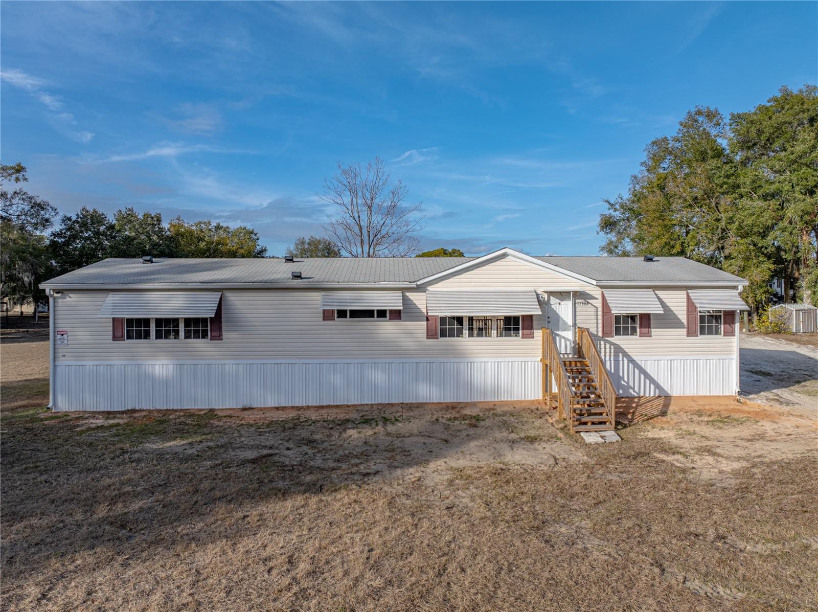 Discover your perfect retreat in Dunnellon, FL! This charming 3-bedroom, 2-bathroom mobile home sits on a beautiful, cleared one-acre lot of dry land near a serene lake with boat access and a deeded boat slip. Featuring a spacious open floor plan, the home offers a bright and airy living area, a well-appointed kitchen, and a master suite with a relaxing garden tub and a walk-in shower. Enjoy peace of mind with brand-new tie-downs, well, and septic system. With plenty of space for outdoor activities and easy access to fishing, boating, and nature, this property is perfect for those seeking a peaceful lifestyle surrounded by natural beauty!