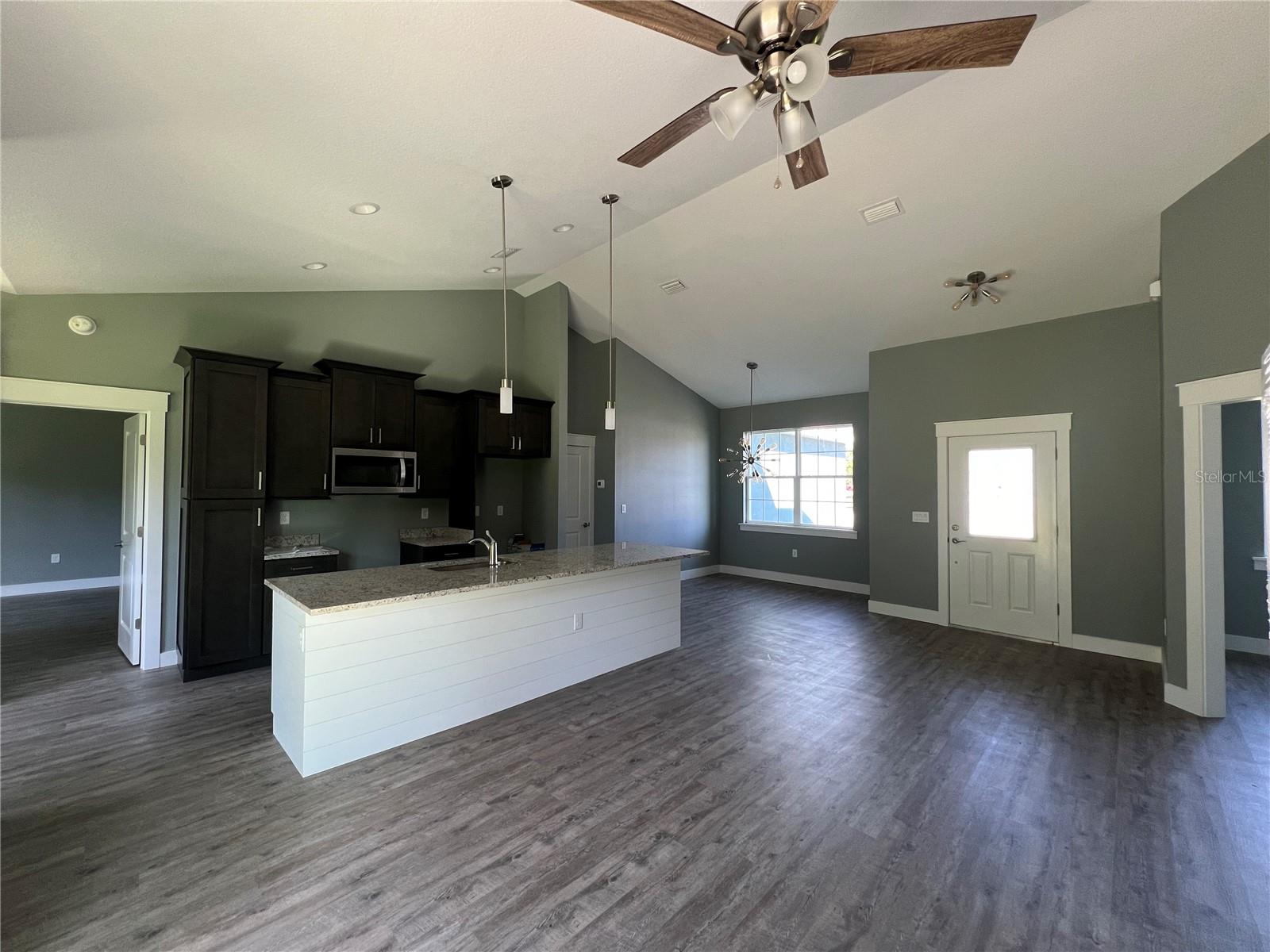 Experience the allure of Juliette Falls Golf Course Community, renowned for its Par 72 championship golf course. Beyond the gates, discover a realm of luxury homes and meticulously maintained grounds. Nestled alongside the 18th hole, this recently constructed residence boasts captivating views of cascading waterfalls. The home comprises 3 bedrooms, 2 full bathrooms, and a 3-car garage. Throughout the interior, contemporary design elements prevail, including floor-to-ceiling tile in the bathrooms, upscale finishes, cathedral ceilings, ample natural light, and refined molding. The kitchen is a masterpiece with its high-end 42"cabinetry, Quartz countertops, tile backsplash, Farm Sink, and Whirlpool stainless-steel appliances. The expansive island is adorned with meticulously chosen stone countertops. The master bedroom exudes comfort and features a walk-in closet with custom shelving. The private en-suite bathroom offers double sinks with quartz tops, a spacious walk-in shower with floor-to-ceiling tiling, dual shower heads, and an oversized glass shower door. The split floorplan includes two additional generous bedrooms, complemented by a full guest bath in the hallway. The lavish laundry/mudroom is equipped with luxury tile, cabinetry, quartz countertops, a storage closet, and top-of-the-line washer and dryer. Step onto the back patio for a private retreat. The exterior showcases a tile roof, striking landscaping, a paver driveway, and golf course-specific protective window screens. Explore more at www.thesodogroup.com.