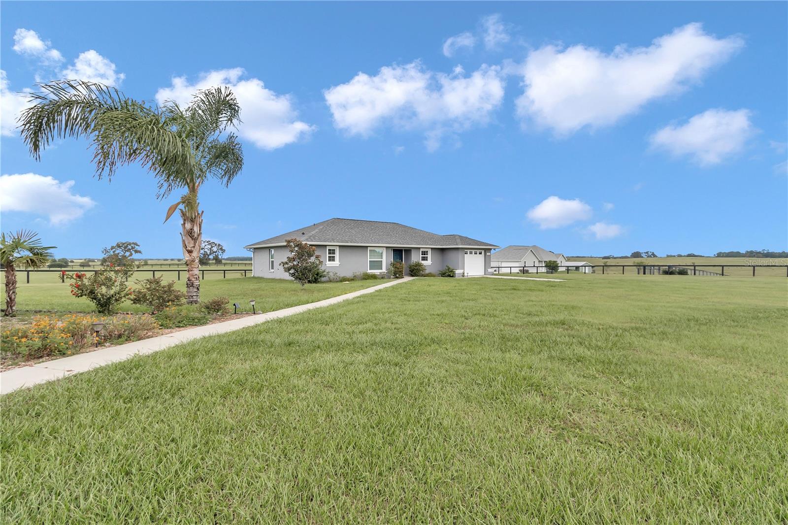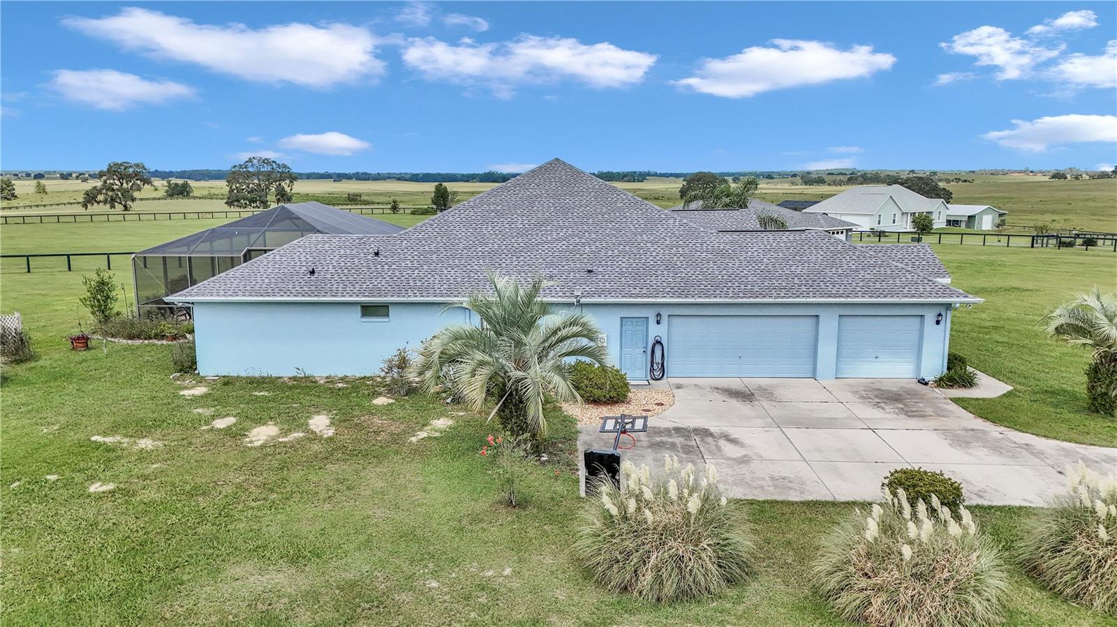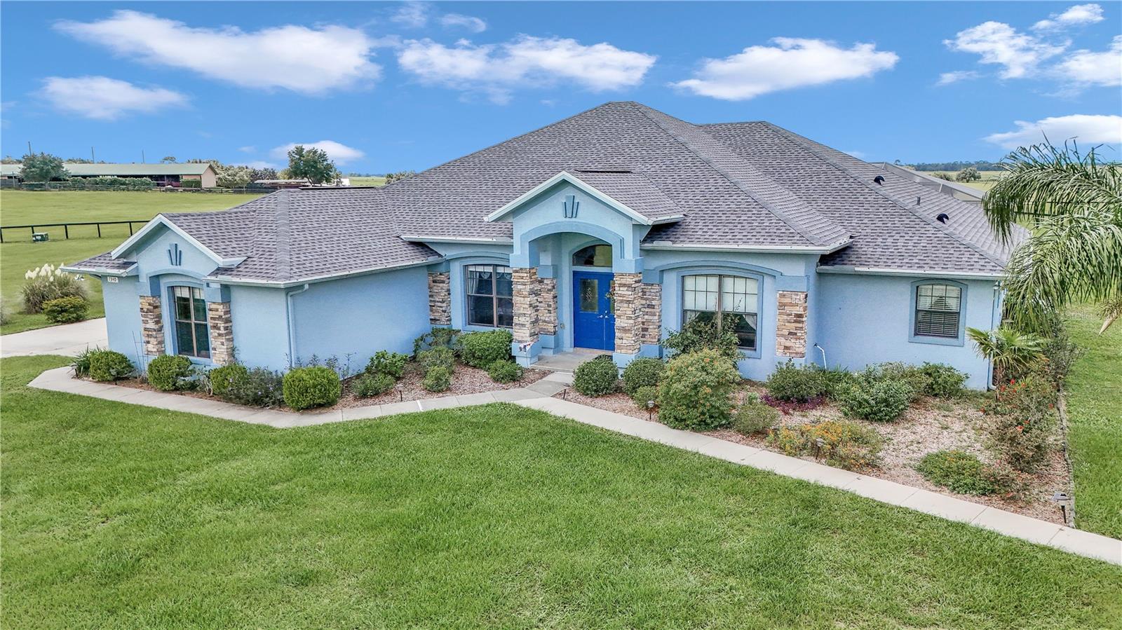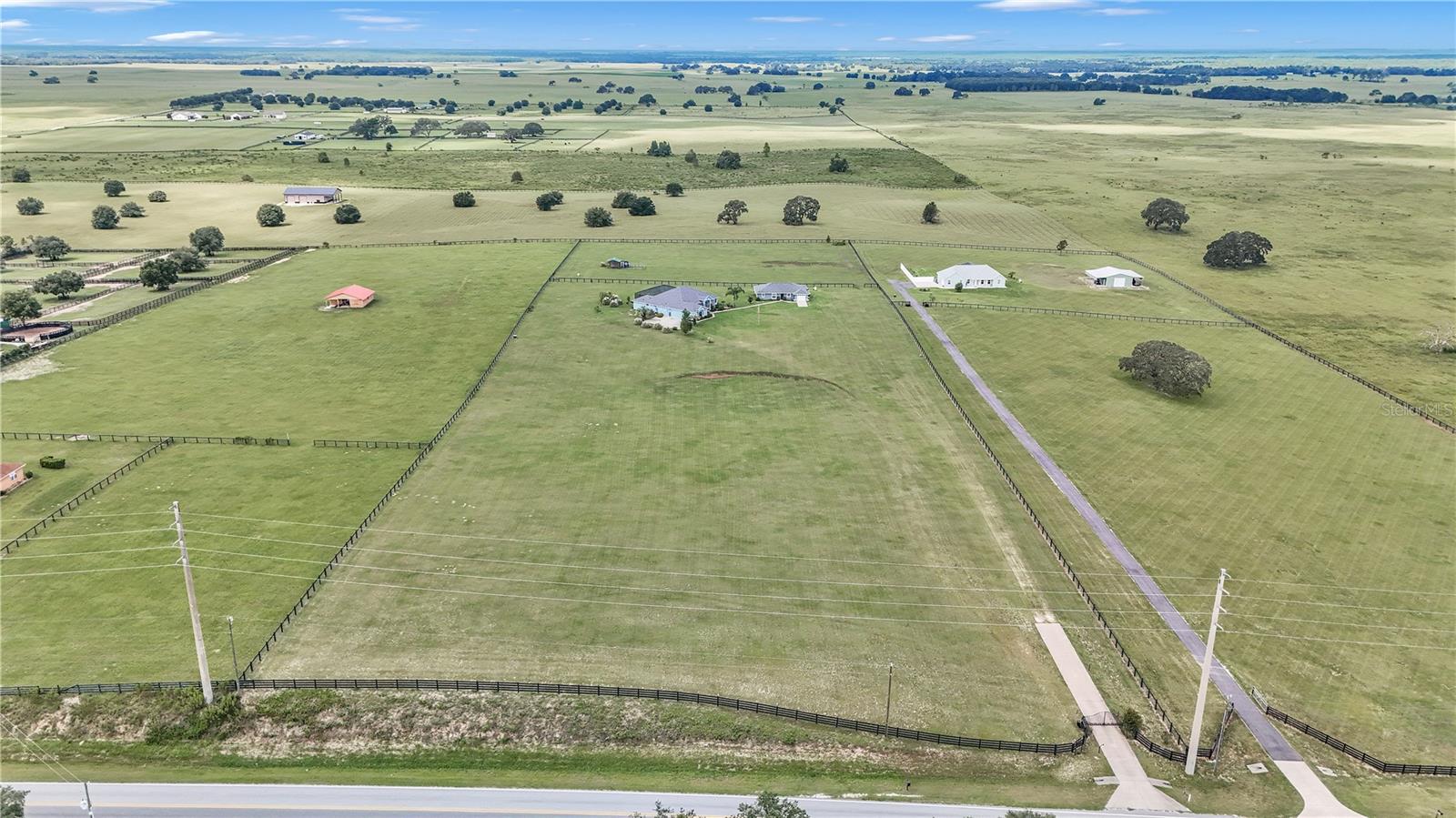 Picturesque, hilltop 10 acre gated property has 2 custom built homes. This 10 acre farm is ready for your custom barn, We’ve already having perimeter, no climb, top board fencing in place .If horses are not your thing, plenty of open space for building a large workshop, and room to roam! This immaculate property offers a large custom home screen in pool and guest home (2020) right next-door. The custom home has a three car garage, spacious open floor plan and overlooks all of property. Step inside to your foyer in the beauty of this spacious, open floor plan! This home has the custom upgrades, such as surroundsound, 10 foot ceilings, tray and crown molding. There is a central vacuum system as well. When you enter through the foyer to the right, you will find a used as an office not included in the four bedrooms in the rest of the home. Continue from the foyer to a large, inviting living room with views of the screened in pool! To the left, you have a gorgeous, formal dining room with tray ceilings just off the kitchen. The kitchen features, custom, oak, cabinetry, stainless steel appliances, an upgraded wine cooler for your convenience. There is an island as well for preparation and granite countertops throughout. Steps away from the kitchen is a seamless glass window overlooking the pool in this space is used as a second dining area or breakfast room. You will find the laundry room situated perfectly with washer and dryer and utility sink. The three secondary bedrooms are on the far left-hand side of the home. Two of the bedrooms share a bath, with a third bedroom, being an en suite with its own bathroom and the bedroom. This third bedroom has a double sliding leading out to the covered lanai. This is a split bedroom plan with the primary bedroom being on the far right back corner of this beautiful home. The primary bedroom features luxury vinyl plank, 2018, his in her closets, and a slide out to the covered lanai. The primary bedroom is oversized and can easily accommodate an additional area for a sitting room for great place for exercise equipment, overlooking the pool! The primary bath has large, soaking tub, tile, shower, and 42 inch double vanity. The pool was built in 2011. it is an extension of the lanai with custom patio and waterfall. Main home has 2023 new architectural roof! The pool is screened in and has a step up sundeck. Pavers were replaced in 2021. 2019 AC, 2006 hot water heater. Home has water softener and is on Well and Septic. The guest home was built in 2020 and is practically new. It offers two bedrooms and two bath at 1291 ft.² with a one car garage. The washer and dryer are located in the garage. Is an open floor plan with living room, dining area, and Kitchen with stainless steel appliances, and lighting and peninsula island with room for a few barstools. Leaning from the spacious open floor plan out the back sliding doors leads to screen in covered lanai. This area overlooks the fenced paddock with auto waterer, run in and chicken coop. The primary bedroom is spacious and has its own bathroom with walk-in tile shower with glass door and handicap bar. The second bedroom is equally as impressive with surround tile shower and glass door. This home is all 2020 luxury vinyl plank. Roof, AC and hot water heater all 2020.Current owner took care of all the details with their being 2 Wells and 2 Septics. This beautiful property is minutes from classic mile and about 15 minutes to the world equestrian center!