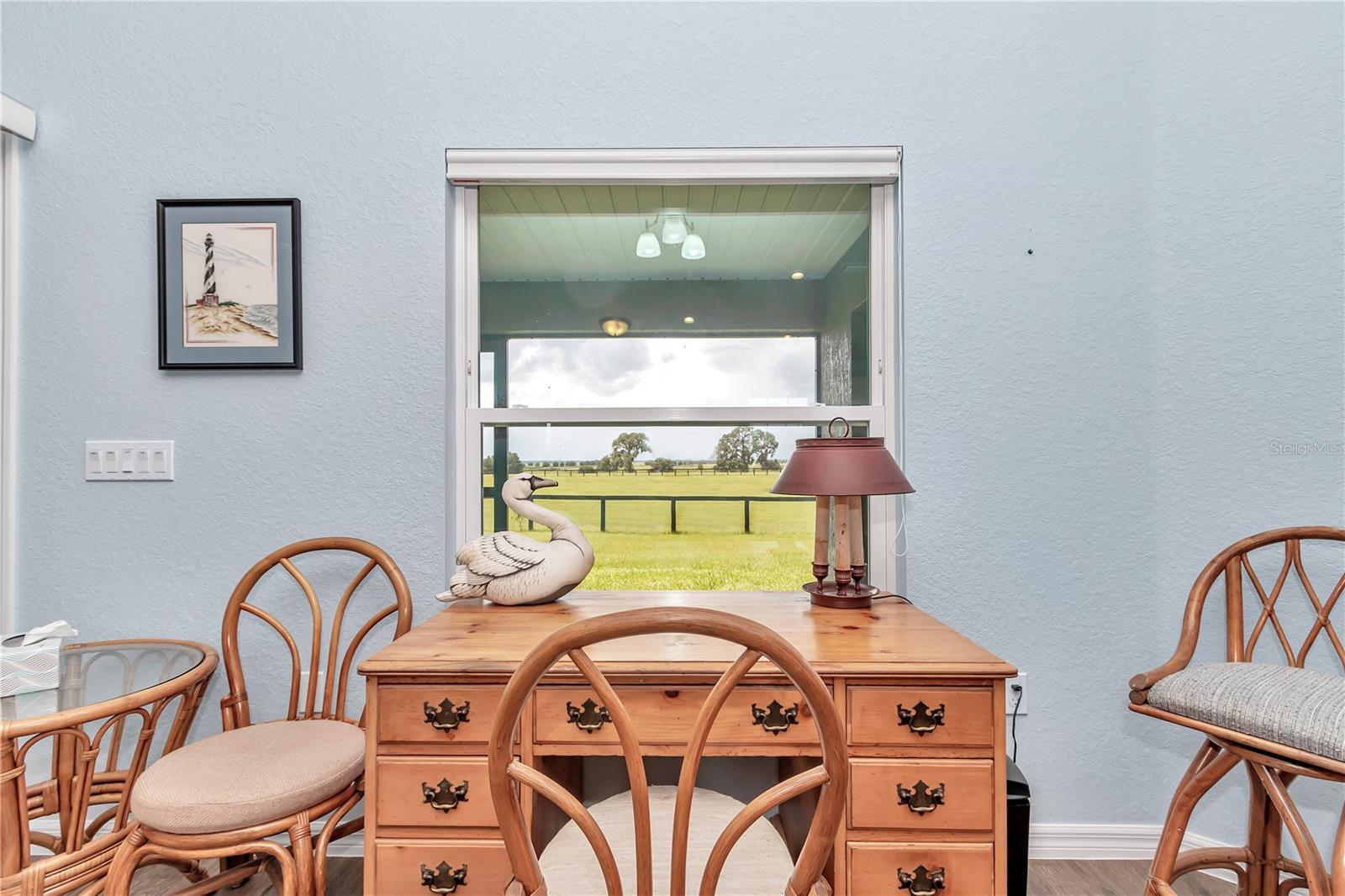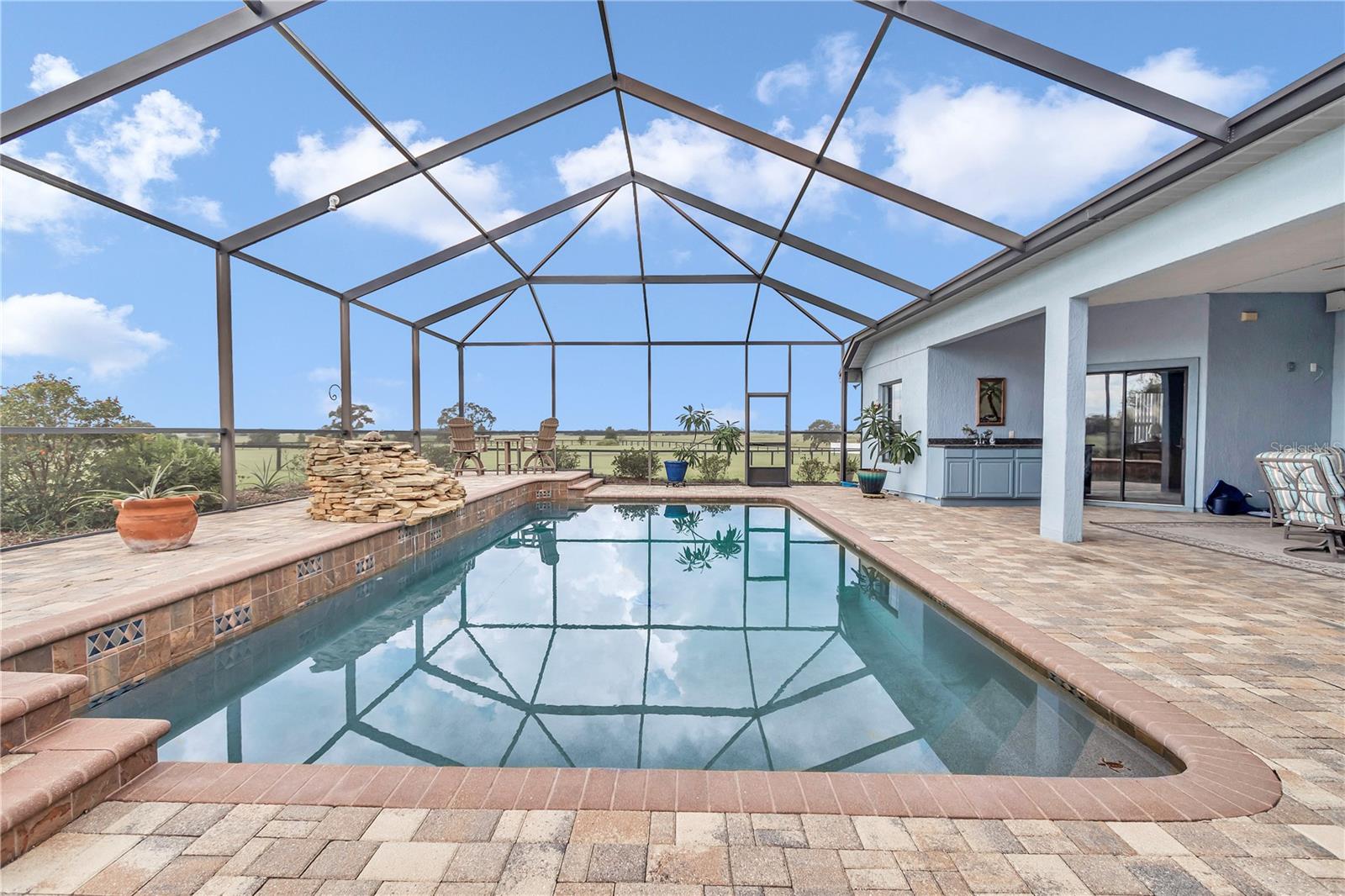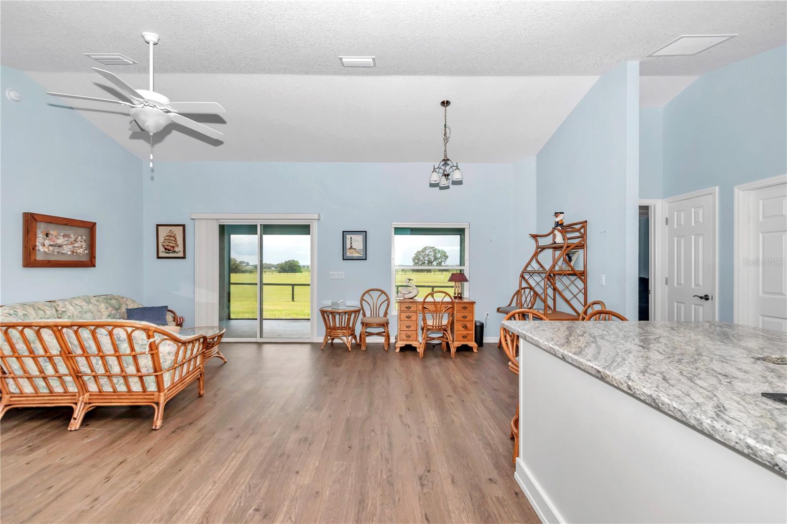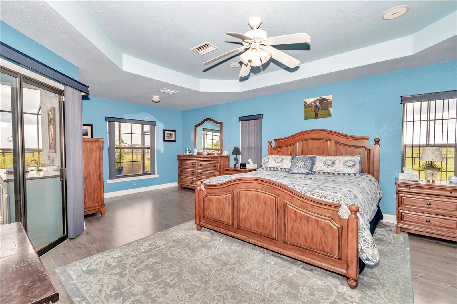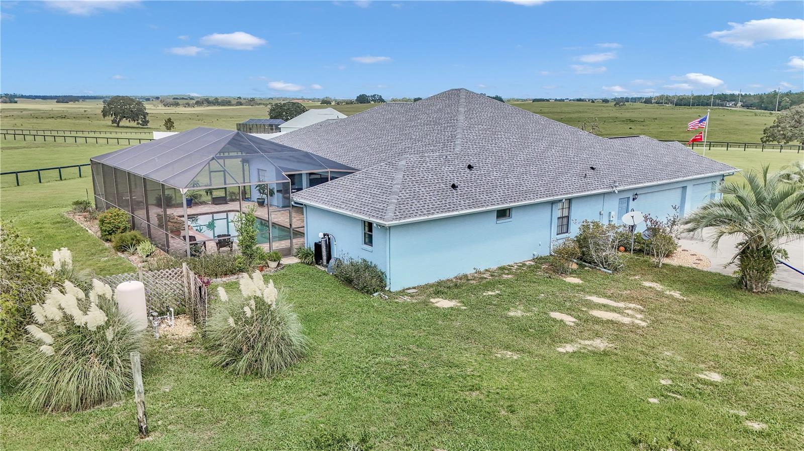 Picturesque, hilltop 10 acre gated property has 2 custom built homes. This 10 acre farm is ready for your custom barn, We’ve already having perimeter, no climb, top board fencing in place .If horses are not your thing, plenty of open space for building a large workshop, and room to roam! This immaculate property offers a large custom home screen in pool and guest home (2020) right next-door. The custom home has a three car garage, spacious open floor plan and overlooks all of property. Step inside to your foyer in the beauty of this spacious, open floor plan! This home has the custom upgrades, such as surroundsound, 10 foot ceilings, tray and crown molding. There is a central vacuum system as well. When you enter through the foyer to the right, you will find a used as an office not included in the four bedrooms in the rest of the home. Continue from the foyer to a large, inviting living room with views of the screened in pool! To the left, you have a gorgeous, formal dining room with tray ceilings just off the kitchen. The kitchen features, custom, oak, cabinetry, stainless steel appliances, an upgraded wine cooler for your convenience. There is an island as well for preparation and granite countertops throughout. Steps away from the kitchen is a seamless glass window overlooking the pool in this space is used as a second dining area or breakfast room. You will find the laundry room situated perfectly with washer and dryer and utility sink. The three secondary bedrooms are on the far left-hand side of the home. Two of the bedrooms share a bath, with a third bedroom, being an en suite with its own bathroom and the bedroom. This third bedroom has a double sliding leading out to the covered lanai. This is a split bedroom plan with the primary bedroom being on the far right back corner of this beautiful home. The primary bedroom features luxury vinyl plank, 2018, his in her closets, and a slide out to the covered lanai. The primary bedroom is oversized and can easily accommodate an additional area for a sitting room for great place for exercise equipment, overlooking the pool! The primary bath has large, soaking tub, tile, shower, and 42 inch double vanity. The pool was built in 2011. it is an extension of the lanai with custom patio and waterfall. Main home has 2023 new architectural roof! The pool is screened in and has a step up sundeck. Pavers were replaced in 2021. 2019 AC, 2006 hot water heater. Home has water softener and is on Well and Septic. The guest home was built in 2020 and is practically new. It offers two bedrooms and two bath at 1291 ft.² with a one car garage. The washer and dryer are located in the garage. Is an open floor plan with living room, dining area, and Kitchen with stainless steel appliances, and lighting and peninsula island with room for a few barstools. Leaning from the spacious open floor plan out the back sliding doors leads to screen in covered lanai. This area overlooks the fenced paddock with auto waterer, run in and chicken coop. The primary bedroom is spacious and has its own bathroom with walk-in tile shower with glass door and handicap bar. The second bedroom is equally as impressive with surround tile shower and glass door. This home is all 2020 luxury vinyl plank. Roof, AC and hot water heater all 2020.Current owner took care of all the details with their being 2 Wells and 2 Septics. This beautiful property is minutes from classic mile and about 15 minutes to the world equestrian center!