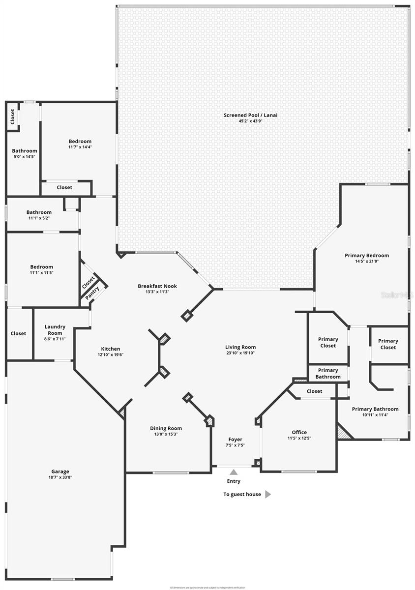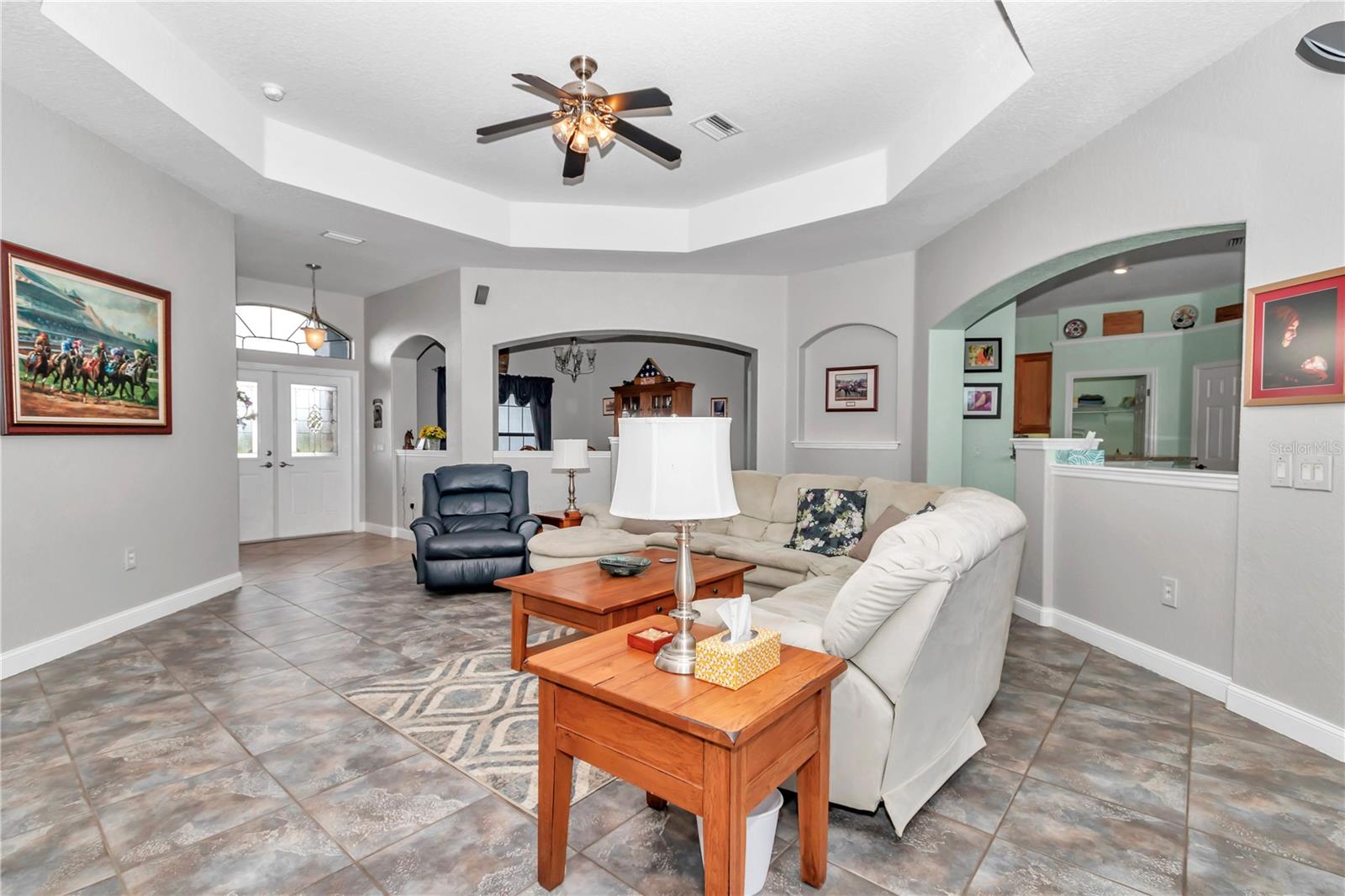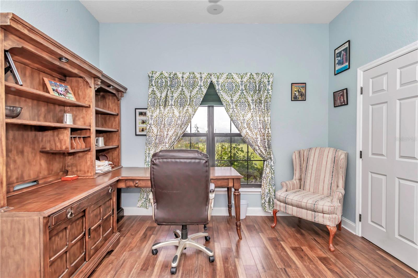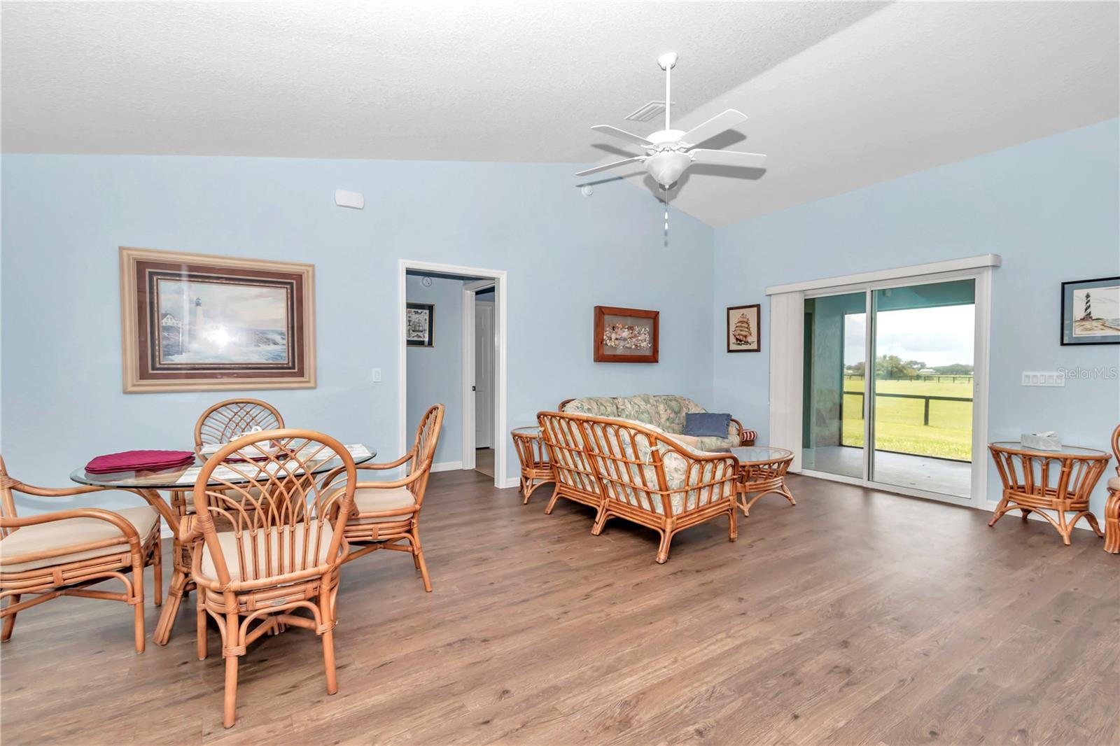 Picturesque, hilltop 10 acre gated property has 2 custom built homes. This 10 acre farm is ready for your custom barn, We’ve already having perimeter, no climb, top board fencing in place .If horses are not your thing, plenty of open space for building a large workshop, and room to roam! This immaculate property offers a large custom home screen in pool and guest home (2020) right next-door. The custom home has a three car garage, spacious open floor plan and overlooks all of property. Step inside to your foyer in the beauty of this spacious, open floor plan! This home has the custom upgrades, such as surroundsound, 10 foot ceilings, tray and crown molding. There is a central vacuum system as well. When you enter through the foyer to the right, you will find a used as an office not included in the four bedrooms in the rest of the home. Continue from the foyer to a large, inviting living room with views of the screened in pool! To the left, you have a gorgeous, formal dining room with tray ceilings just off the kitchen. The kitchen features, custom, oak, cabinetry, stainless steel appliances, an upgraded wine cooler for your convenience. There is an island as well for preparation and granite countertops throughout. Steps away from the kitchen is a seamless glass window overlooking the pool in this space is used as a second dining area or breakfast room. You will find the laundry room situated perfectly with washer and dryer and utility sink. The three secondary bedrooms are on the far left-hand side of the home. Two of the bedrooms share a bath, with a third bedroom, being an en suite with its own bathroom and the bedroom. This third bedroom has a double sliding leading out to the covered lanai. This is a split bedroom plan with the primary bedroom being on the far right back corner of this beautiful home. The primary bedroom features luxury vinyl plank, 2018, his in her closets, and a slide out to the covered lanai. The primary bedroom is oversized and can easily accommodate an additional area for a sitting room for great place for exercise equipment, overlooking the pool! The primary bath has large, soaking tub, tile, shower, and 42 inch double vanity. The pool was built in 2011. it is an extension of the lanai with custom patio and waterfall. Main home has 2023 new architectural roof! The pool is screened in and has a step up sundeck. Pavers were replaced in 2021. 2019 AC, 2006 hot water heater. Home has water softener and is on Well and Septic. The guest home was built in 2020 and is practically new. It offers two bedrooms and two bath at 1291 ft.² with a one car garage. The washer and dryer are located in the garage. Is an open floor plan with living room, dining area, and Kitchen with stainless steel appliances, and lighting and peninsula island with room for a few barstools. Leaning from the spacious open floor plan out the back sliding doors leads to screen in covered lanai. This area overlooks the fenced paddock with auto waterer, run in and chicken coop. The primary bedroom is spacious and has its own bathroom with walk-in tile shower with glass door and handicap bar. The second bedroom is equally as impressive with surround tile shower and glass door. This home is all 2020 luxury vinyl plank. Roof, AC and hot water heater all 2020.Current owner took care of all the details with their being 2 Wells and 2 Septics. This beautiful property is minutes from classic mile and about 15 minutes to the world equestrian center!