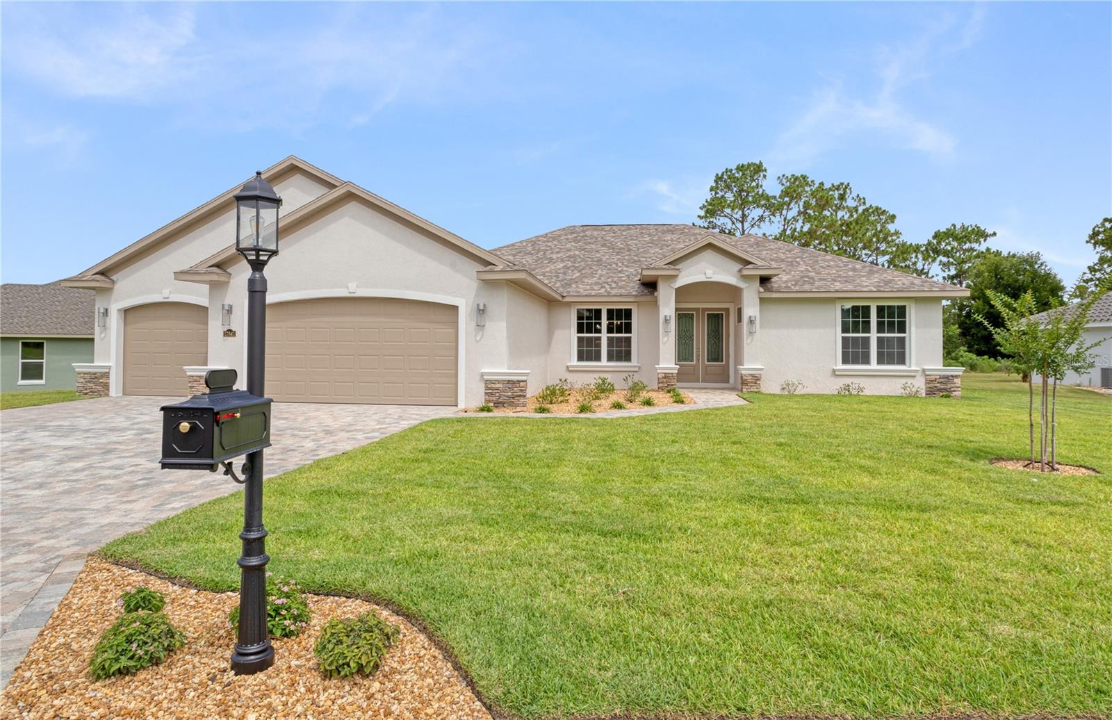 Motivated Seller Reduced Price Again! What is not to love? This is new custom built construction with a great floorplan in the championship par 72 golf course community, Juliette Falls. The newly constructed custom home has thoughtful, designer touches and upgrades throughout. Built with the homeowner in mind for comfort, flow, and convenience. The ceilings are tall with 8' doors. The double-door decorator front doors lead to a large Great Room with modern fireplace wall. It leads to the oversized lanai with a new Master Spa hot tub waiting for your enjoyment. The Master Suite has his/hers barn door entrance spacious closets, his/hers vanities, dual shower heads and niches. The kitchen is spacious with a huge, elevated island with surround storage cabinets. The large corner pantry with solid shelving and the wet-bar with sink and beverage fridge have plenty of space for family and entertaining. The countertops, tile, and backsplash are stunning. A whole house tankless hot water heater services the home, and the sprinkler system shares an irrigation well. The large paved driveway leads to an over-sized 3-car garage. A must see!