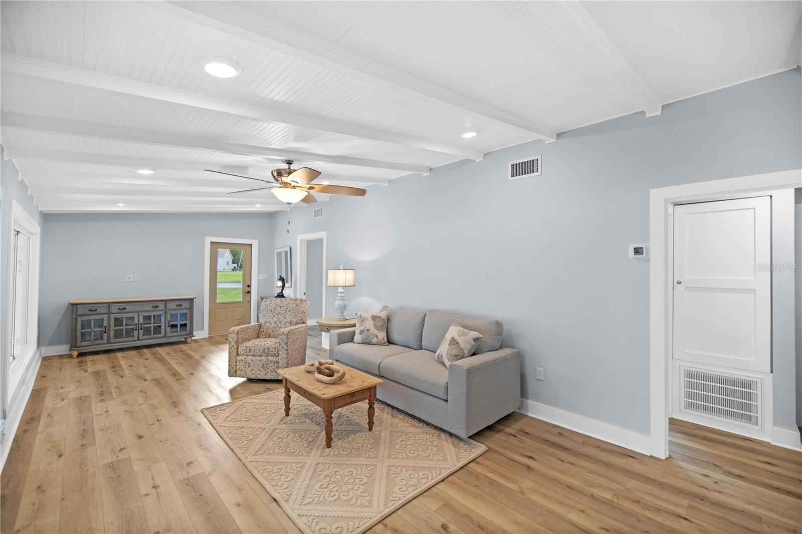 This unique waterfront property has expansive lawns, mature trees and a panoramic view of the river that will fill you with serenity and awe. This spacious move-in ready ranch has vaulted ceilings, simple clean lines, no stairs to traverse, sidewalks throughout the property and linear layout making it easier to go from space to space. A great choice for those ready to retire and age in place or for those who love a large yard and value time spent outdoors boating, fishing or kayaking. This is Prime Riverfront Property. 199.47 ft on the main channel of the Withlacoochee River, beginning of Lake Rousseau. 2.8 miles from Dunnellon. No Flooding (no flood insurance required). Deep water. Dock. Seawall. Main home is 1,768 sq ft. 2,316 ft. total. CB/wood structure with concrete slab foundation. Well and septic. Single car carport with metal roof and enclosed storage/work area. Large asphalt parking pad. Fenced. Landscaping. Quiet, dead-end street. Close to Goldendale boat ramp for convenient boat launching. Home renovated in 2022-2023. Porcelain tiled front porch. New metal roof with Low E radiant barrier. Board and Batten Hardie board siding. 3- ton Trane heat pump. Updated electric, plumbing, electrical panel box (2024). Utility/laundry room with custom wood cabinets, sink, hot water tank. Double pane, low E windows. LV plank flooring. Porcelain tile in bathrooms. His/her custom wood vanities in primary bath. Chef's kitchen, wood cabinets, Stainless Steel Appliances, subzero beverage center, dual fuel range, walk in pantry. Additional 600 sq ft CB building on river with water, electric and a septic tank permit. The view of the river from this home will ease your mind, soothe your soul and never cease to amaze you.