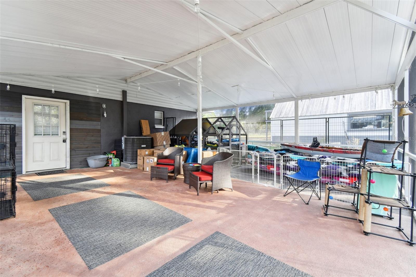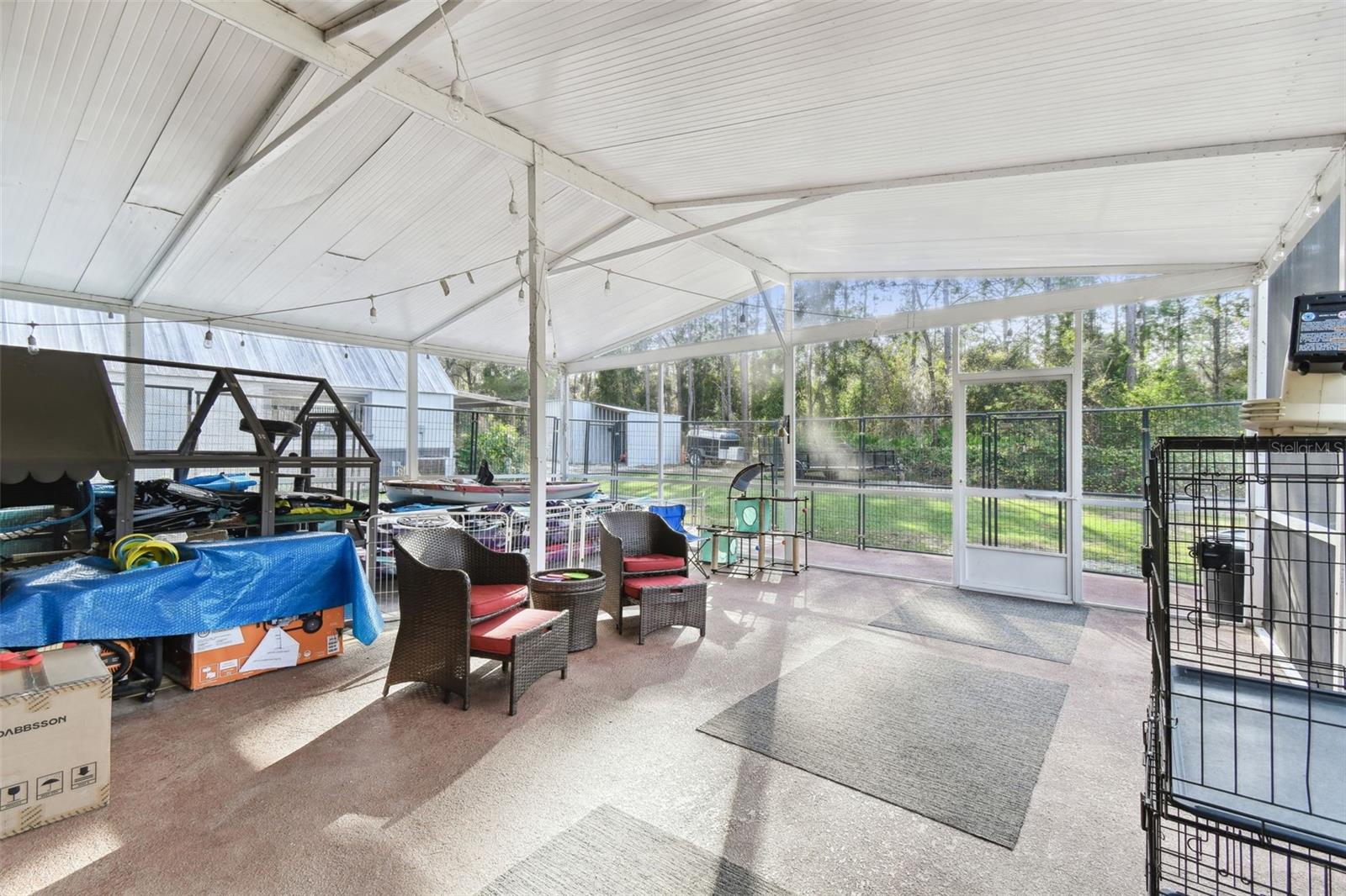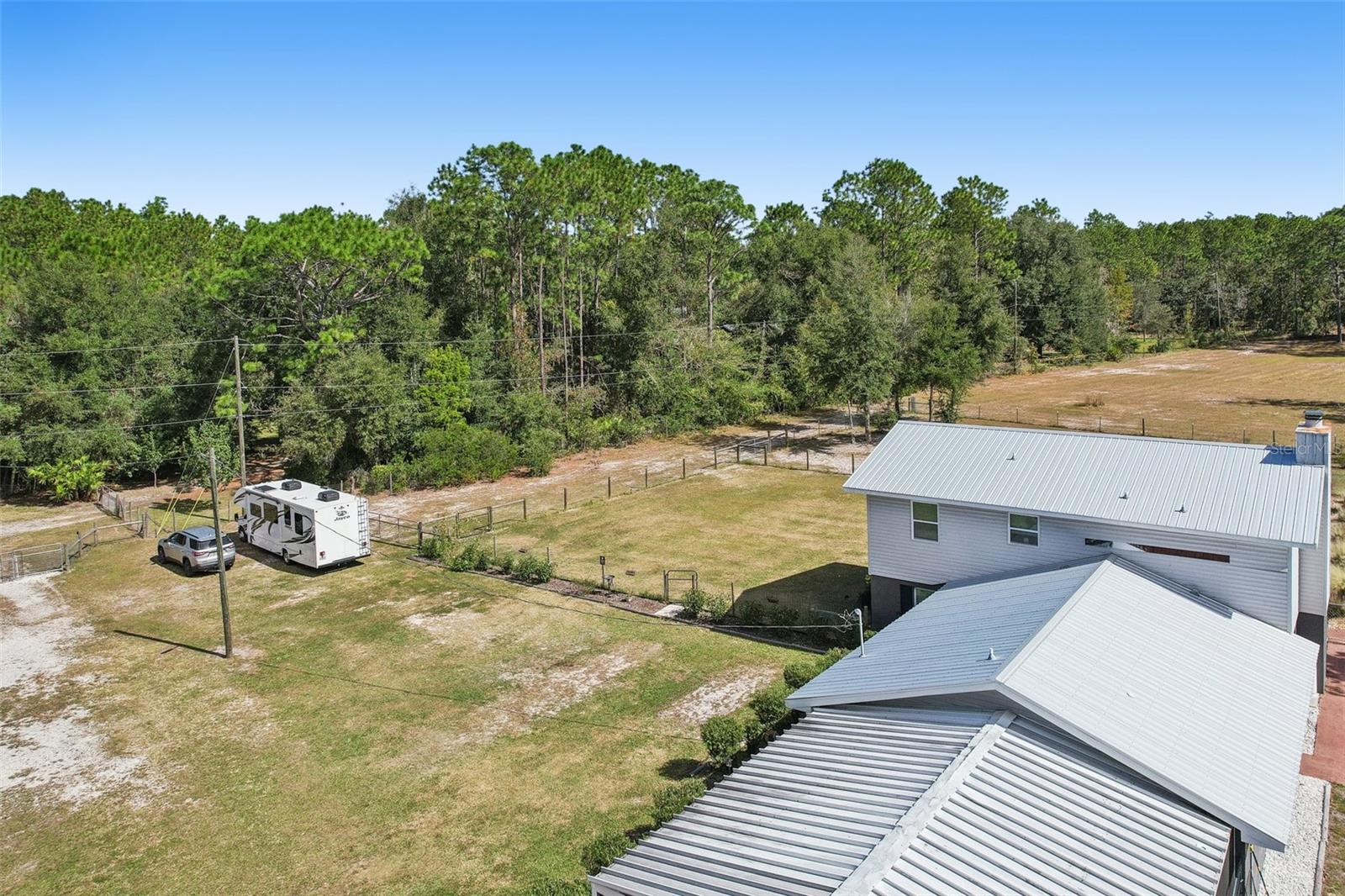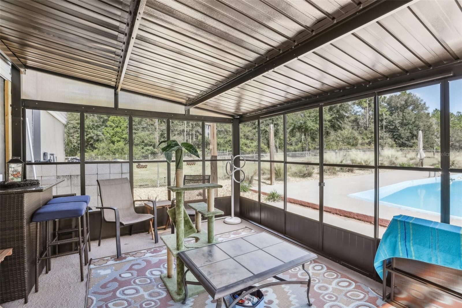 HIGH AND DRY - FLOOD ZONE X . This stunning 5-bedroom, 3.5-bathroom single-family residence provides 2,287 sq ft of spacious living on a remarkable 3.75-acre lot, which includes two separate parcels. The property is fully fenced and cross-fenced, providing ample opportunities for raising animals or enjoying the great outdoors. The home boasts with two master suites with ensuites. There's even the potential to build a guest home on the lot with the primary residence or construct a home on the adjacent parcel—endless possibilities await! Inside, you'll find elegant laminate flooring throughout the common areas, complemented by cozy carpet in the bedrooms for added comfort. The living room seamlessly connects to the formal dining room, creating an inviting flow for entertaining. The upgraded kitchen boasts modern stainless steel appliances, making meal prep a delight. Recent renovations include a metal roof, 14 replaced windows, a new HVAC system, and a refreshed kitchen. Step outside to your private lanai, where you can unwind while overlooking the expansive property and the sparkling in-ground pool, complete with recently replaced equipment (2022). Enjoy the fully screened-in sunroom that provides the perfect view of the pool and property. Additional features include a fully screened-in carport attached to the house, a 30x50 barn with lofted storage galore, and an outhouse that includes a lighted workshop/shed with electrical and a built-in workbench. For animal lovers, there’s a fully equipped chicken or animal house with lighting and electrical amenities. The acreage provides the potential to be split, zoned for a second parcel, or a mother-in-law suite, giving you endless possibilities! For those with an RV or other recreational needs, there are two 50 AMP RV hookups. The separate building on the property features HVAC and second-floor storage, while the well pump and pressure tank were replaced in 2022. The septic tank and field were also replaced in 2022, enhancing the home’s efficiency. High-speed internet provides you with the perfect opportunity to work from home, and you’re just minutes away from Dunnellon and Ocala for shopping, dining, and entertainment. This home combines comfort, style, and the perfect outdoor lifestyle!